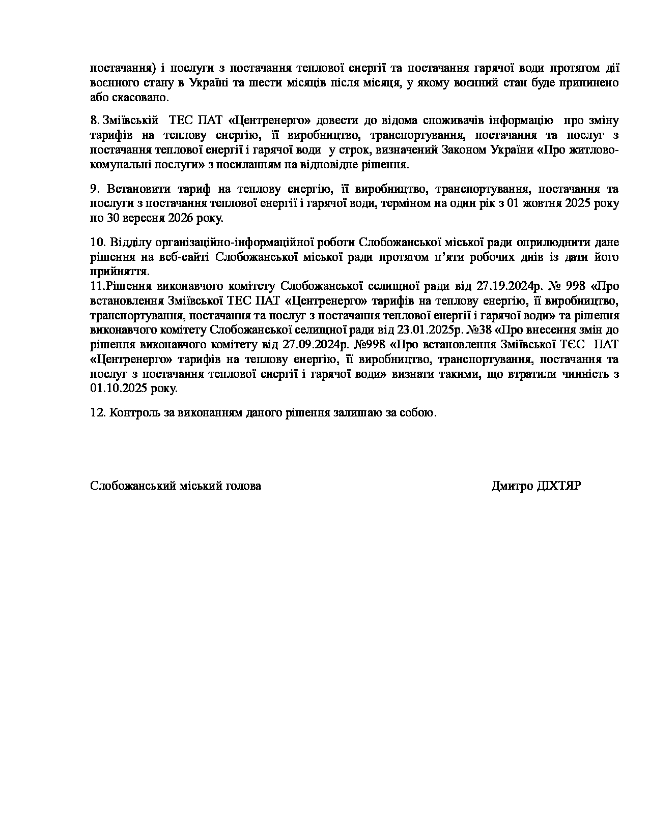 Рішення виконавчого комітету №628 Про погодження Зміївській ТЕС ПАТ «Центренерго» Річного плану виробництва теплової енергії на плановий 2026 рік.