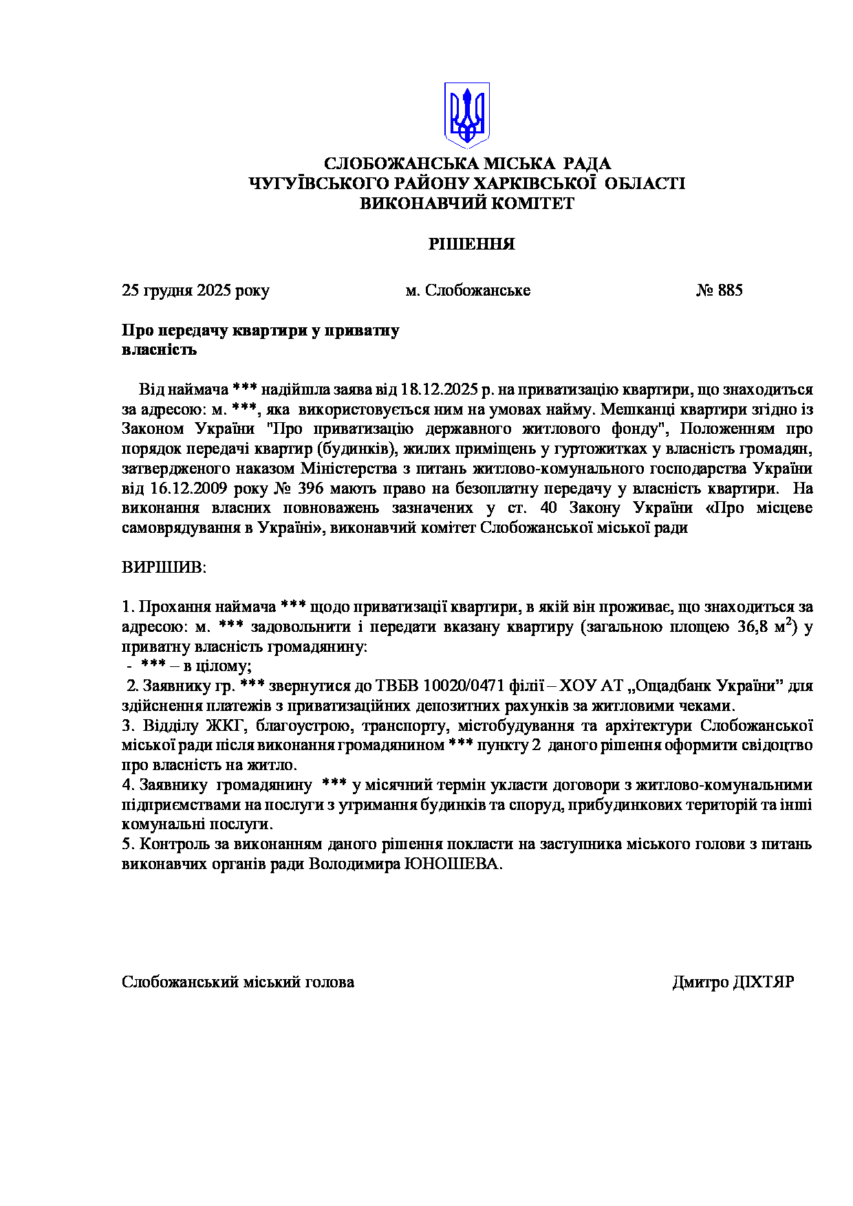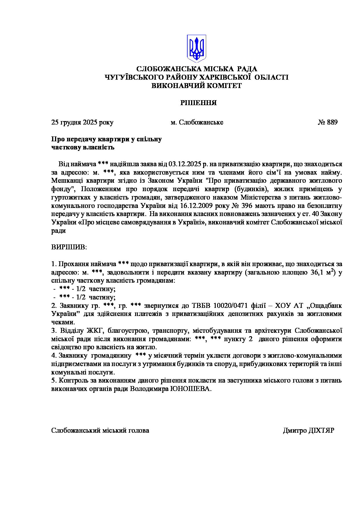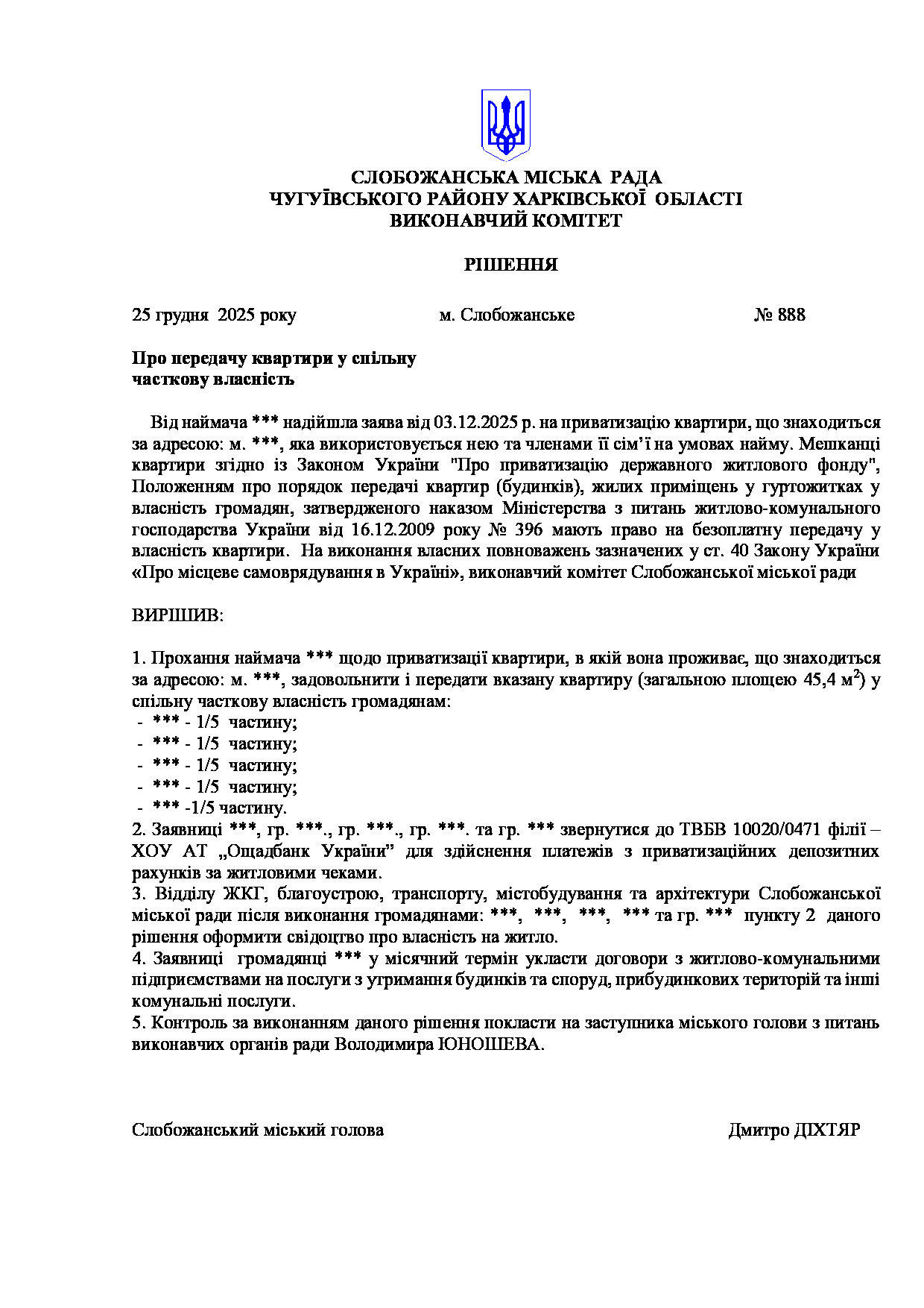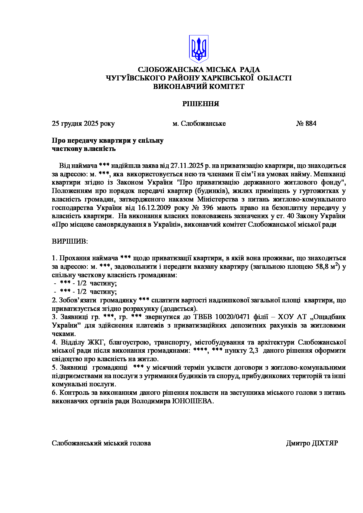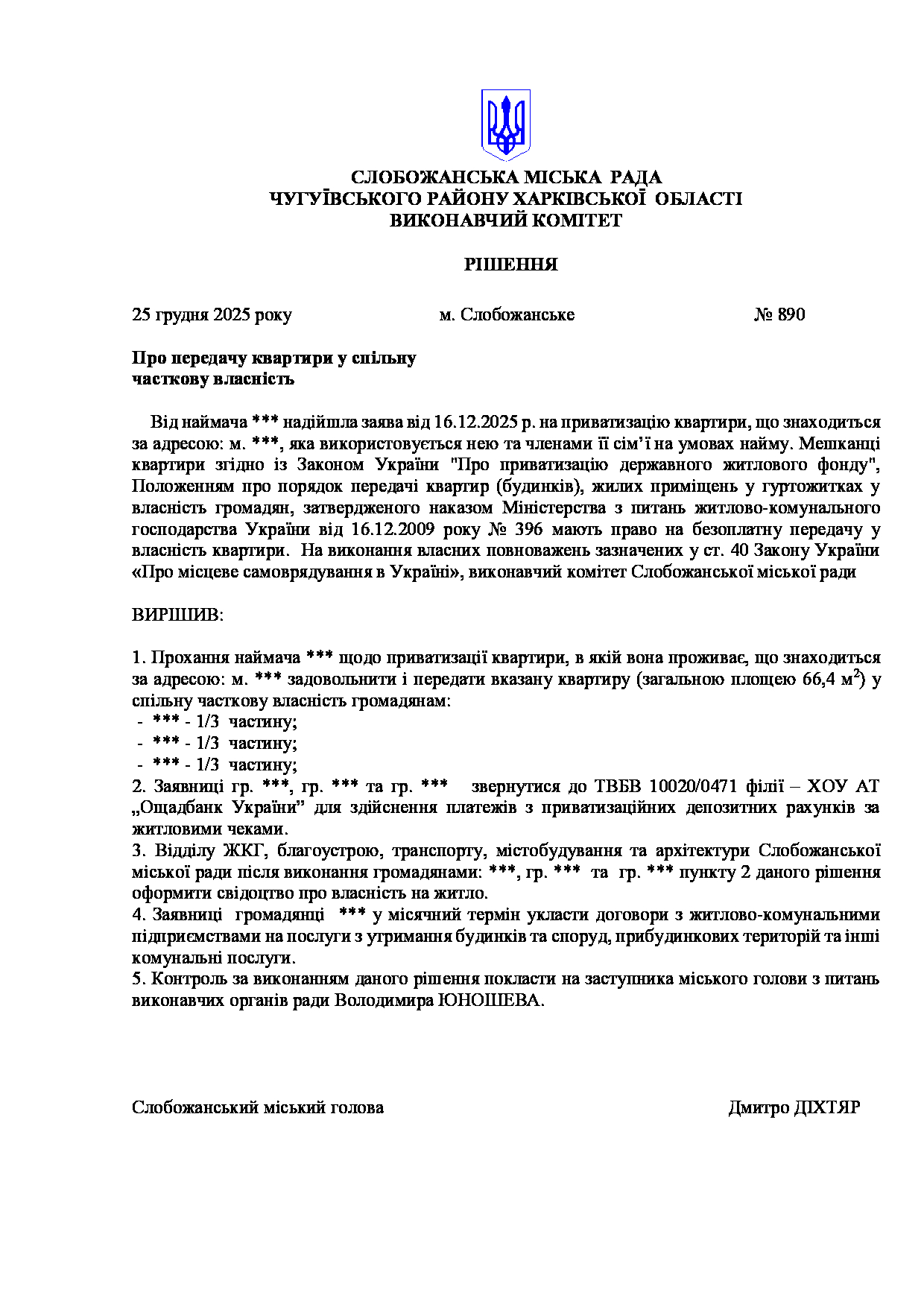Рішення виконавчого комітету №858 Про схвалення проєкту рішення Слобожанської міської ради «Про затвердження Програми фінансової підтримки об’єднань співвласників багатоквартирних будинків та житлово-будівельних кооперативів на території Слобожанської міської територіальної громади Чугуївського району Харківської області на 2026-2030 роки».