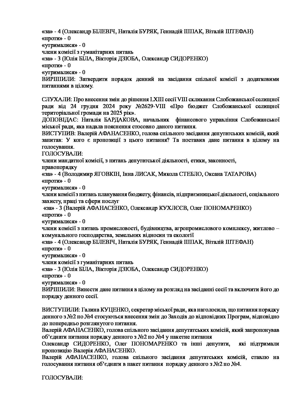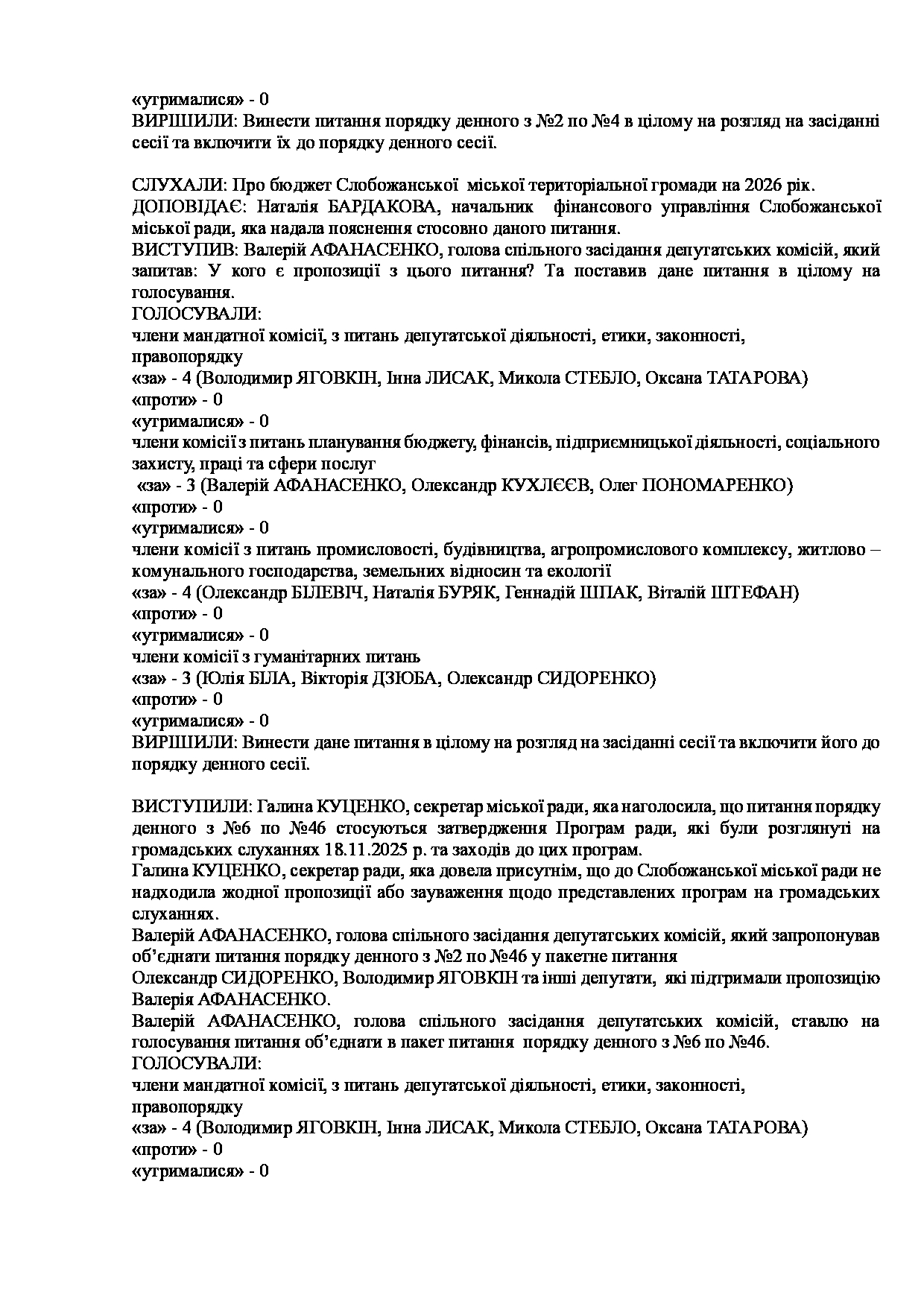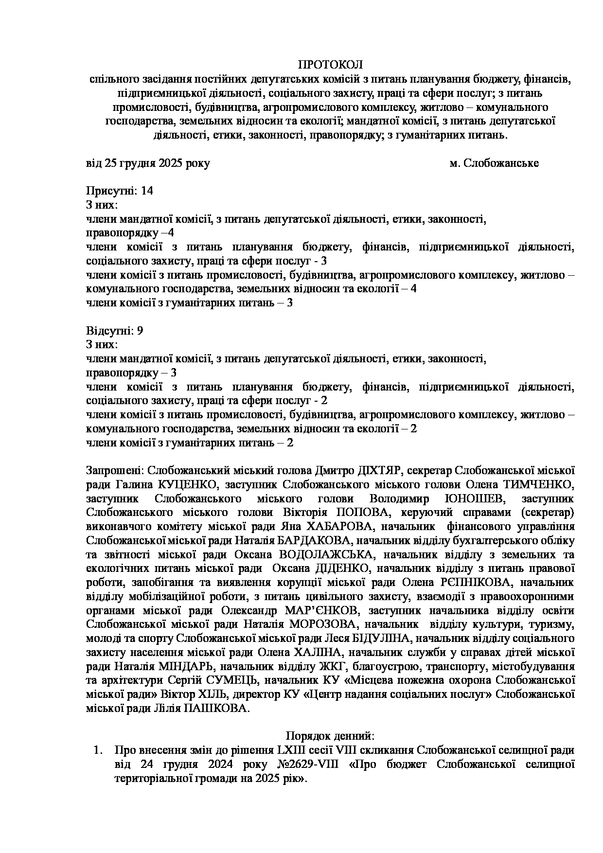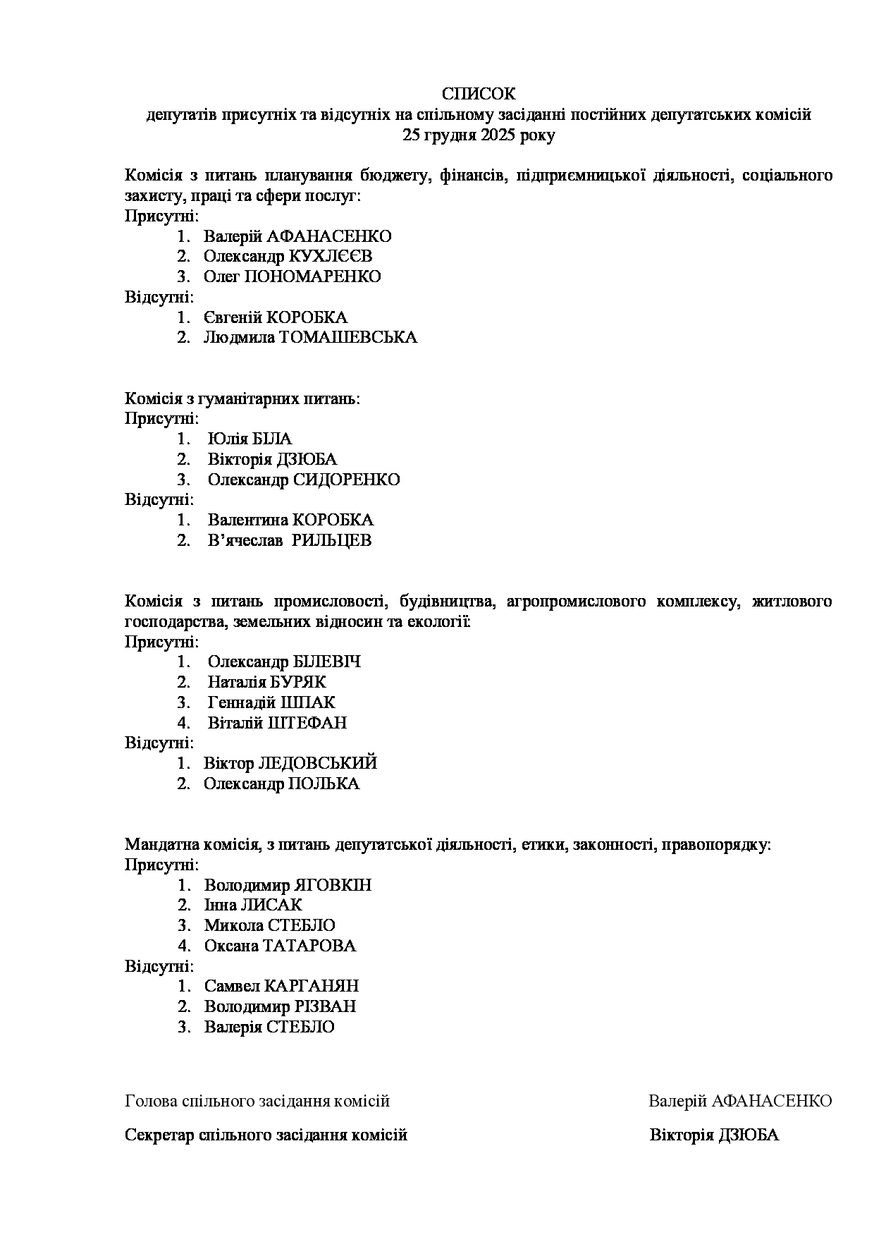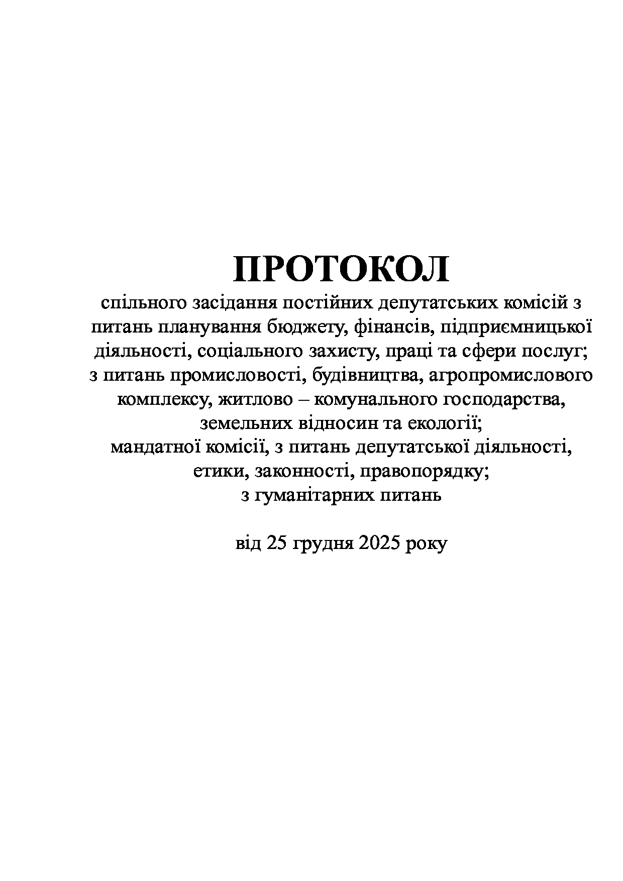 Протокол спільного засідання постійних депутатських комісій від 25 грудня 2025 року