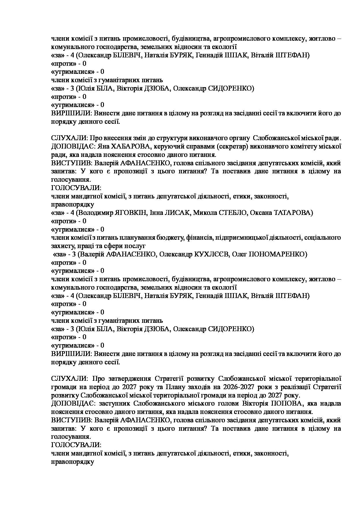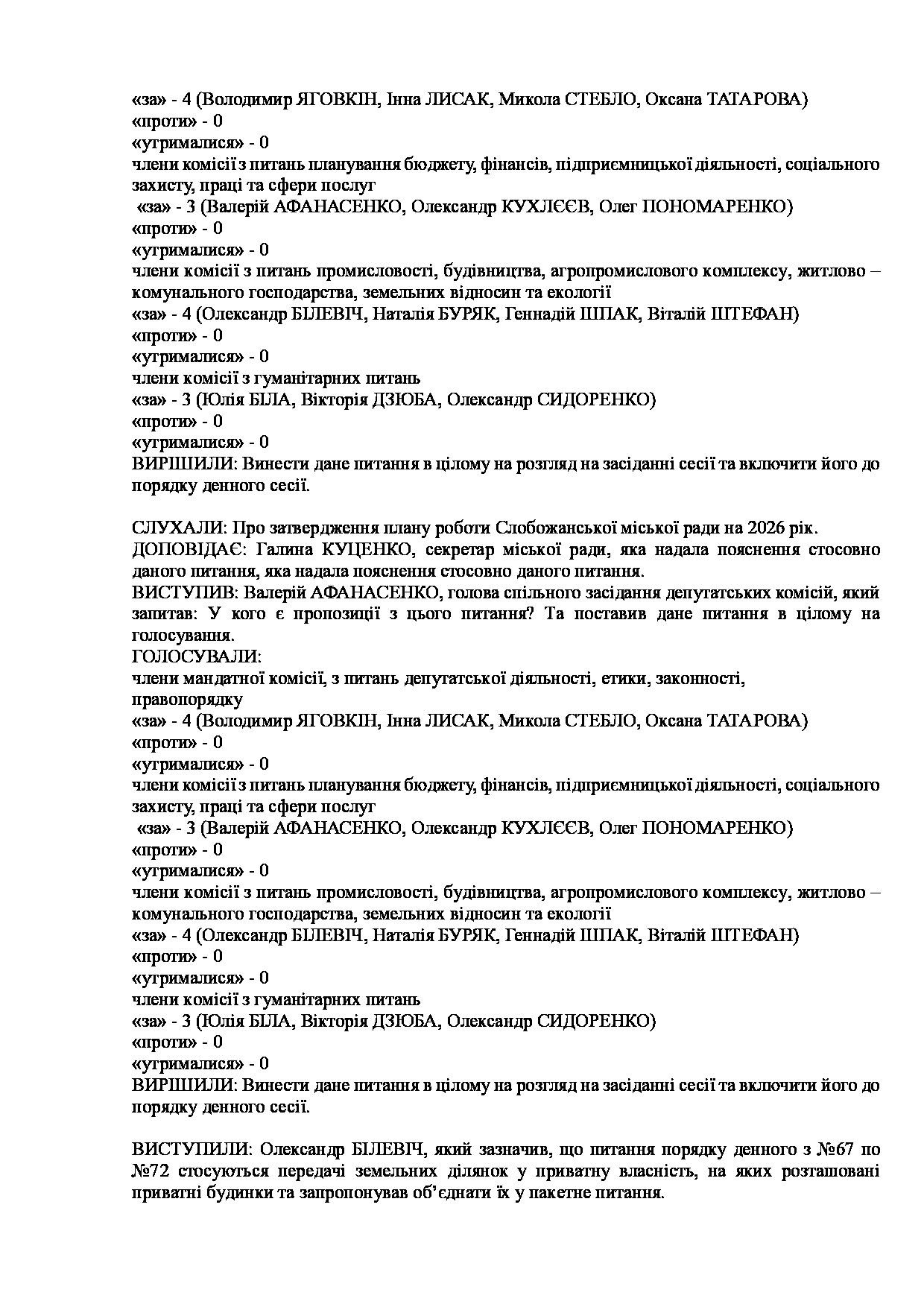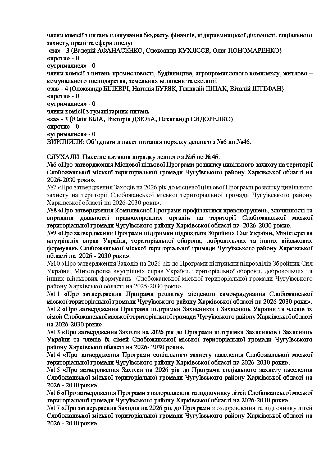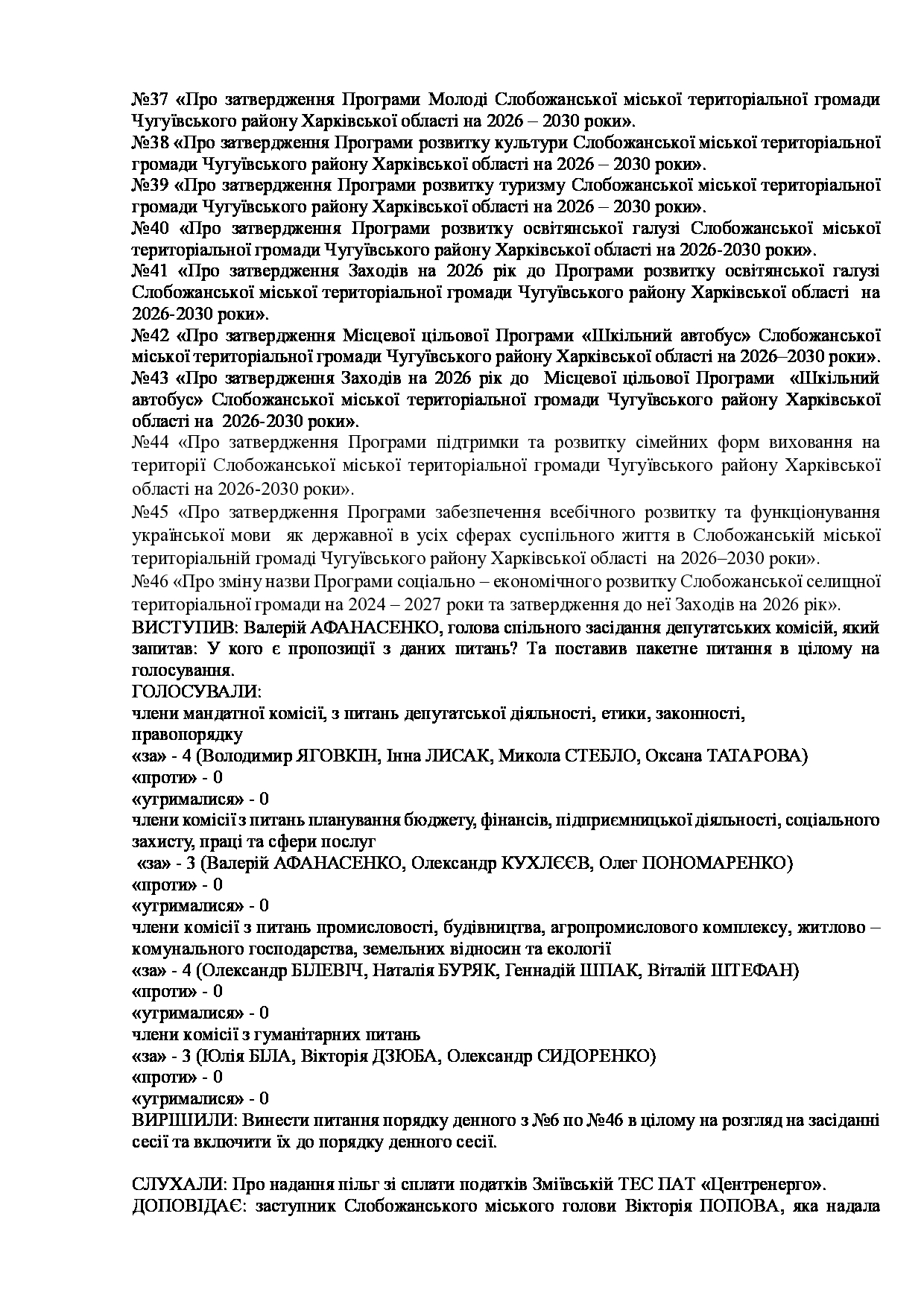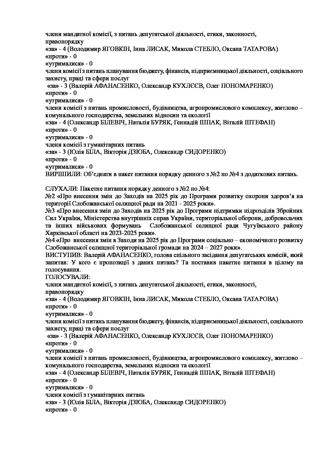 Протокол спільного засідання постійних депутатських комісій від 25 грудня 2025 року