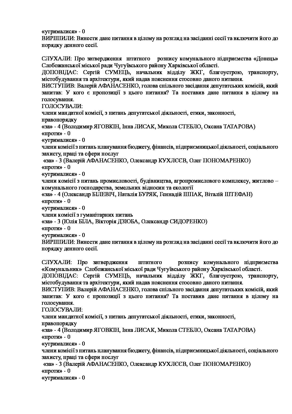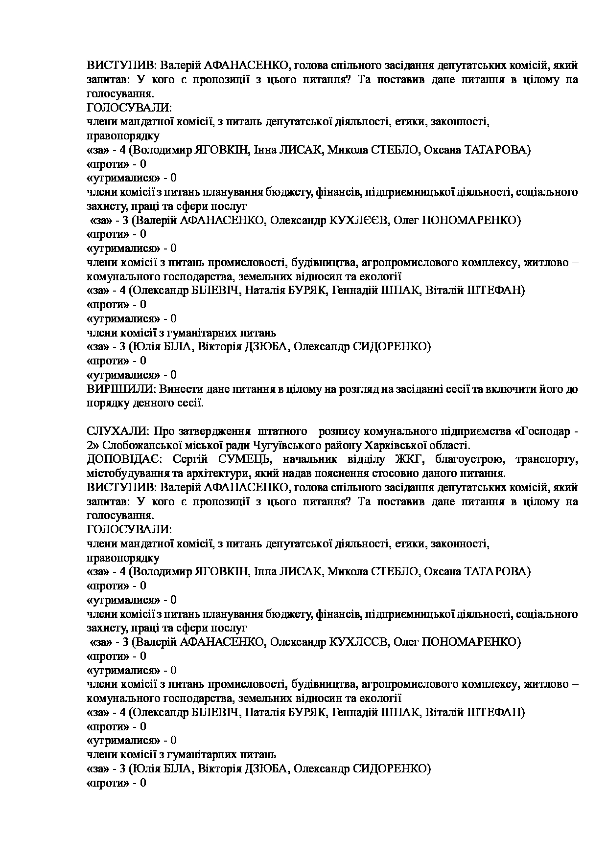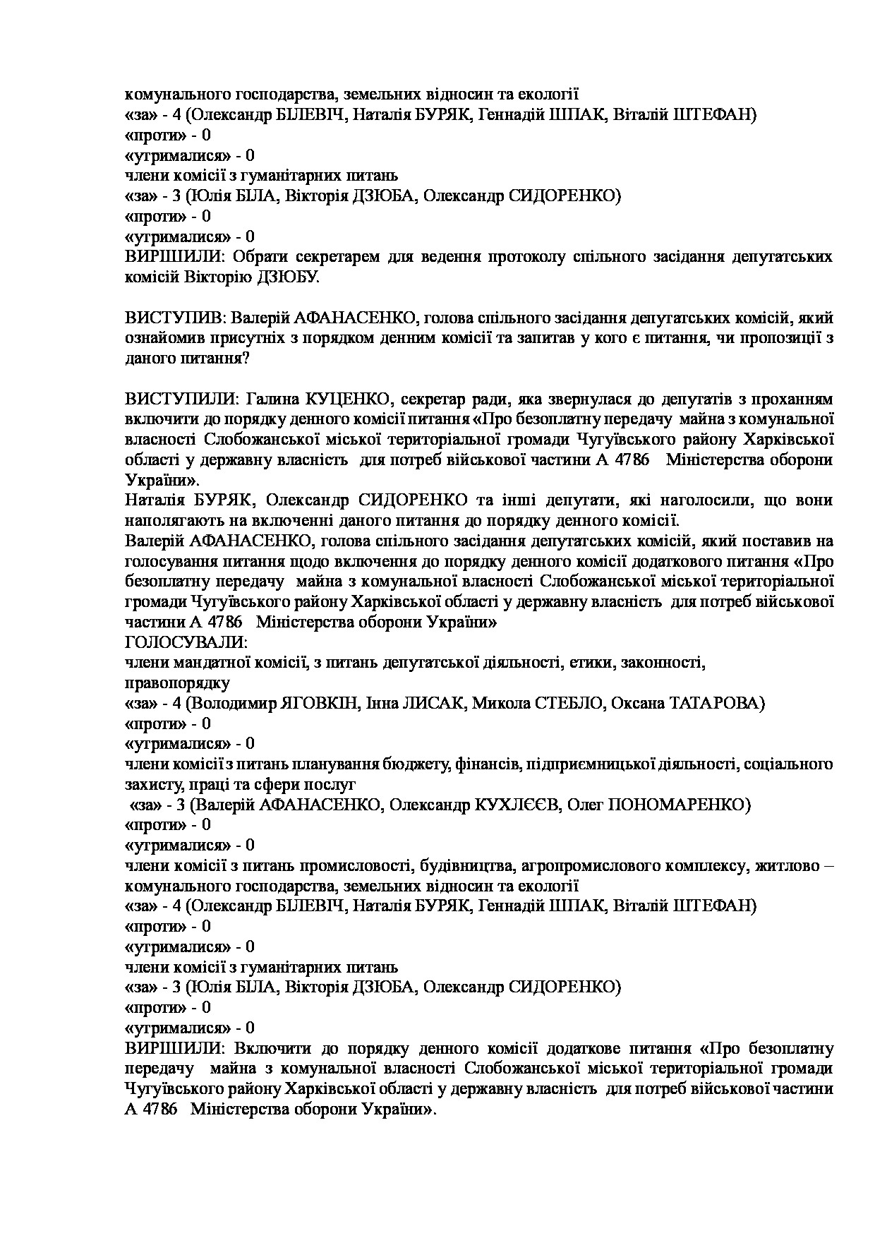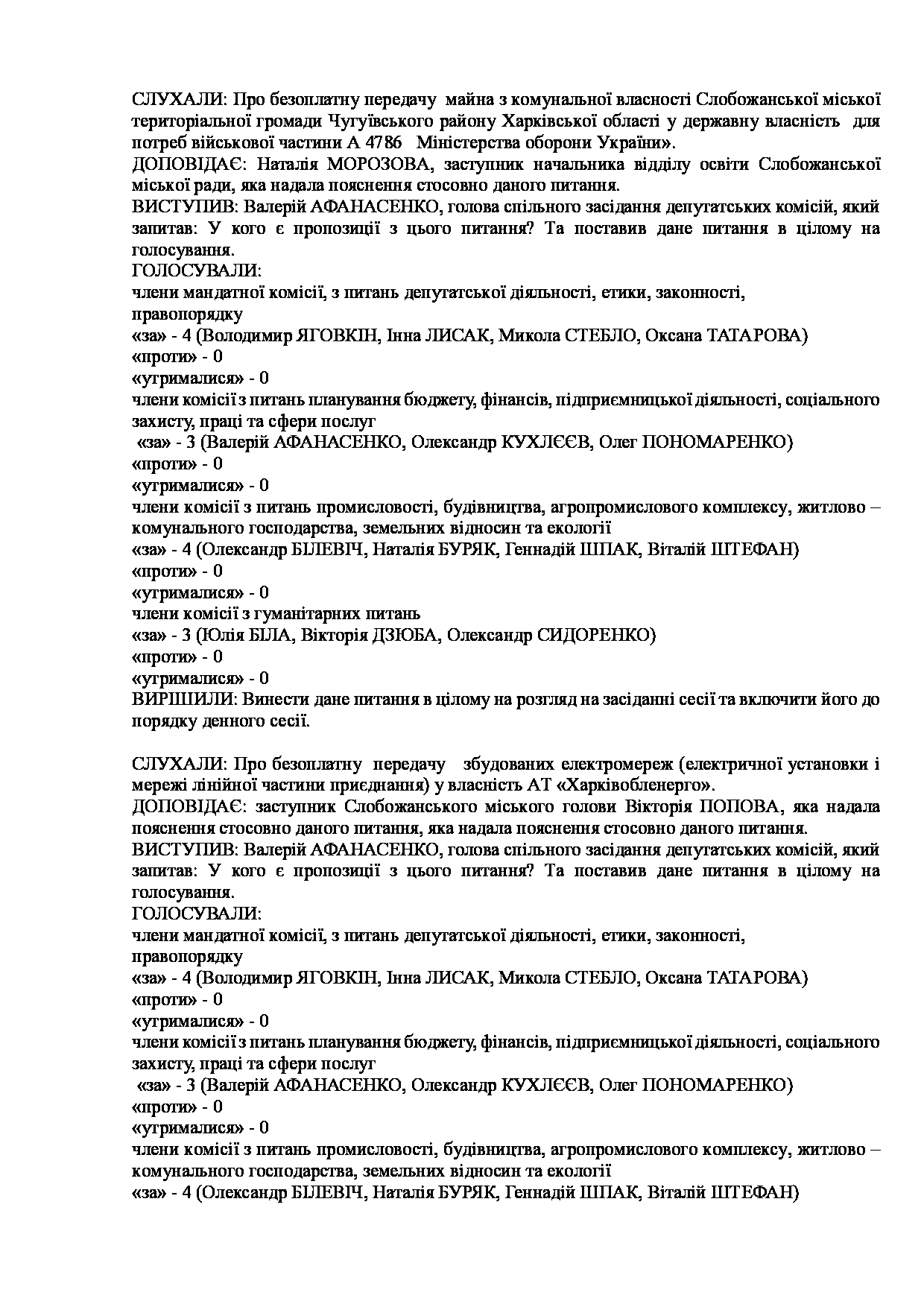 • Протокол № 85 засідання LХXXV сесії Слобожанської міської ради VIII скликання Чугуївського району Харківської області