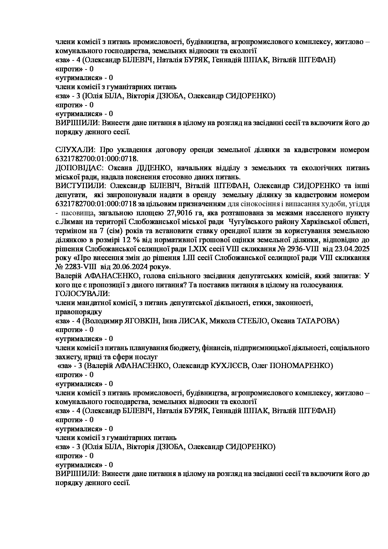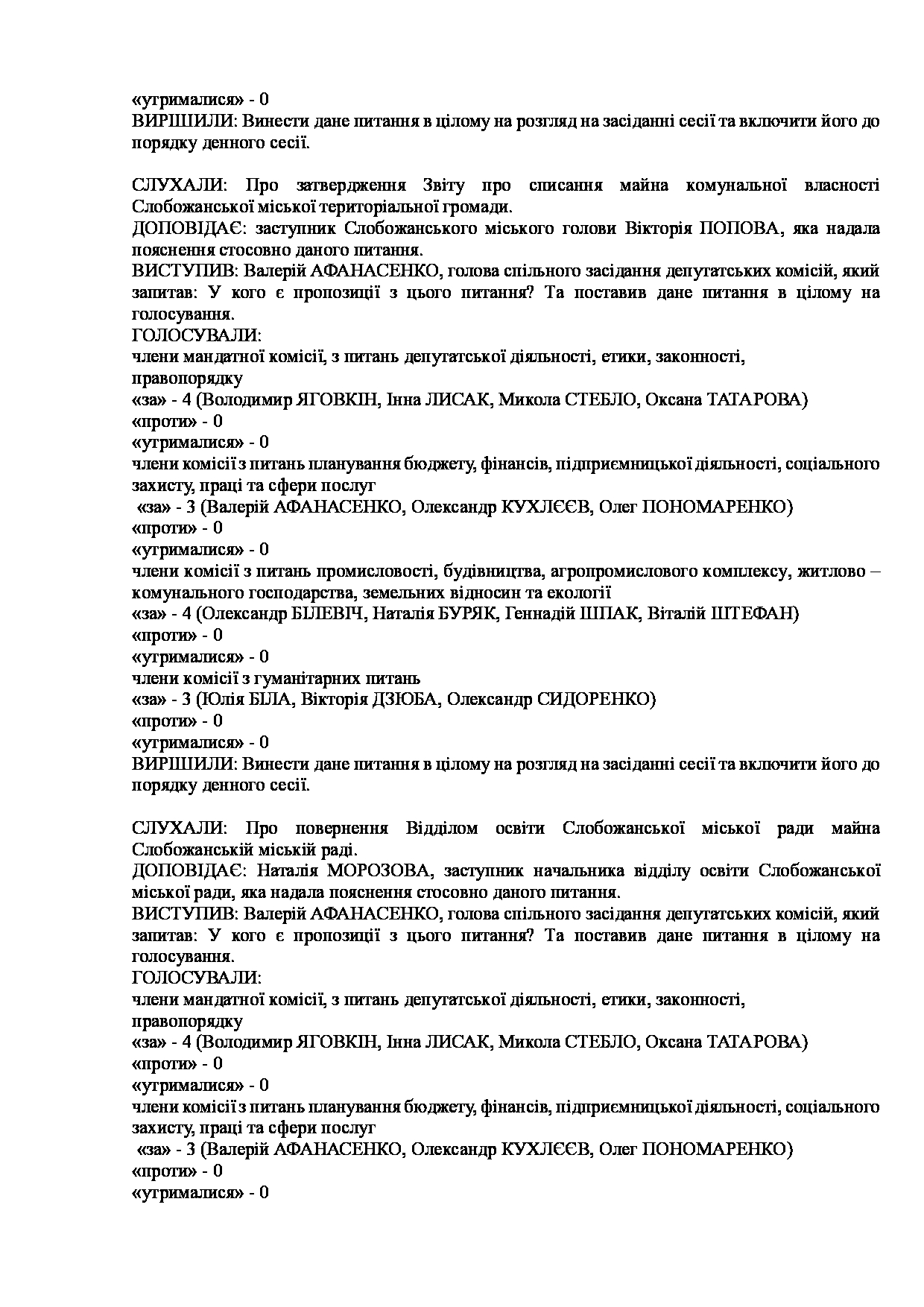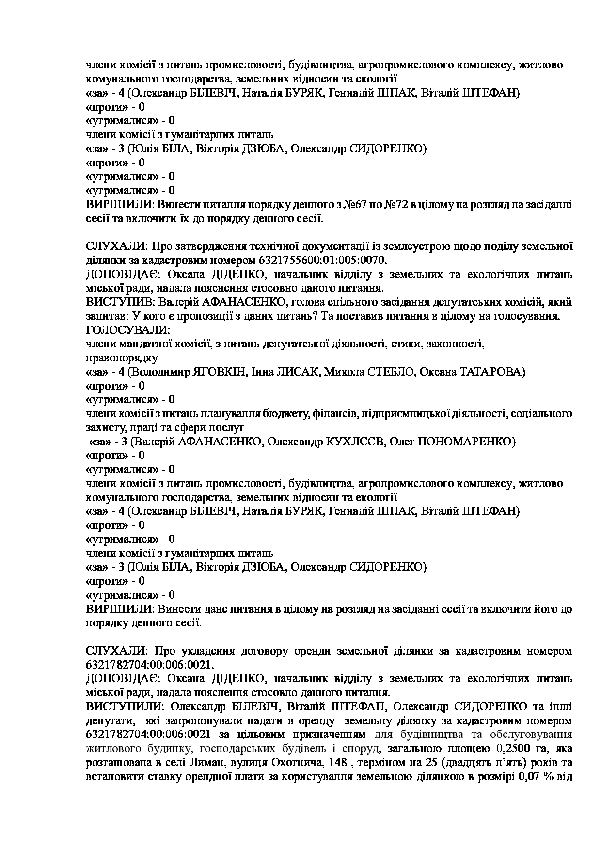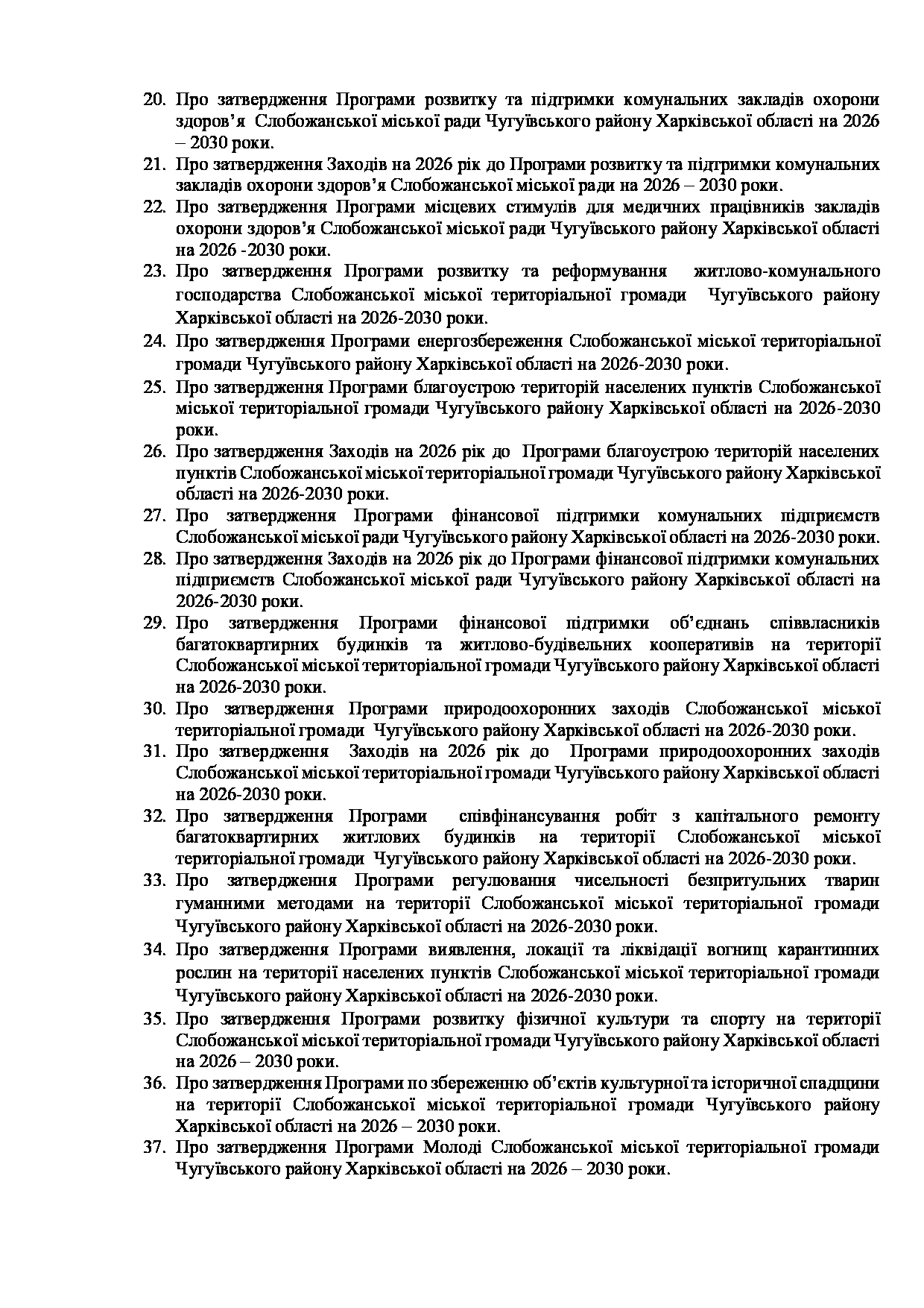 • Протокол № 85 засідання LХXXV сесії Слобожанської міської ради VIII скликання Чугуївського району Харківської області