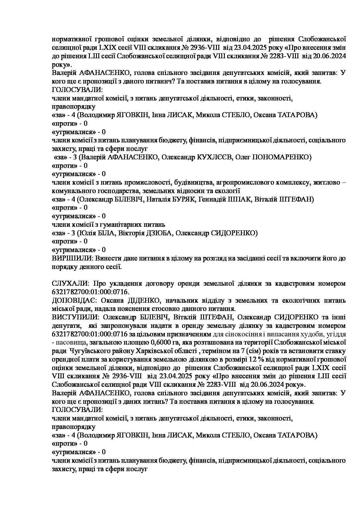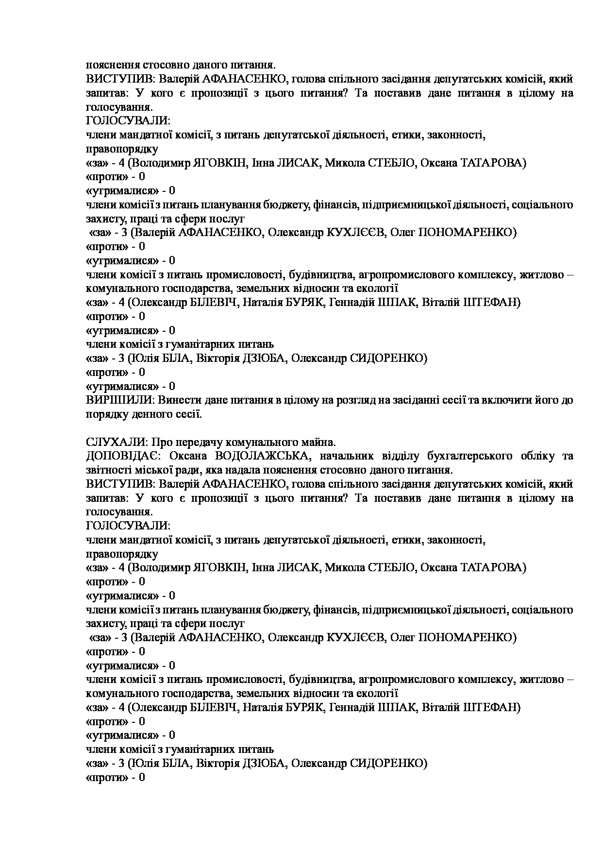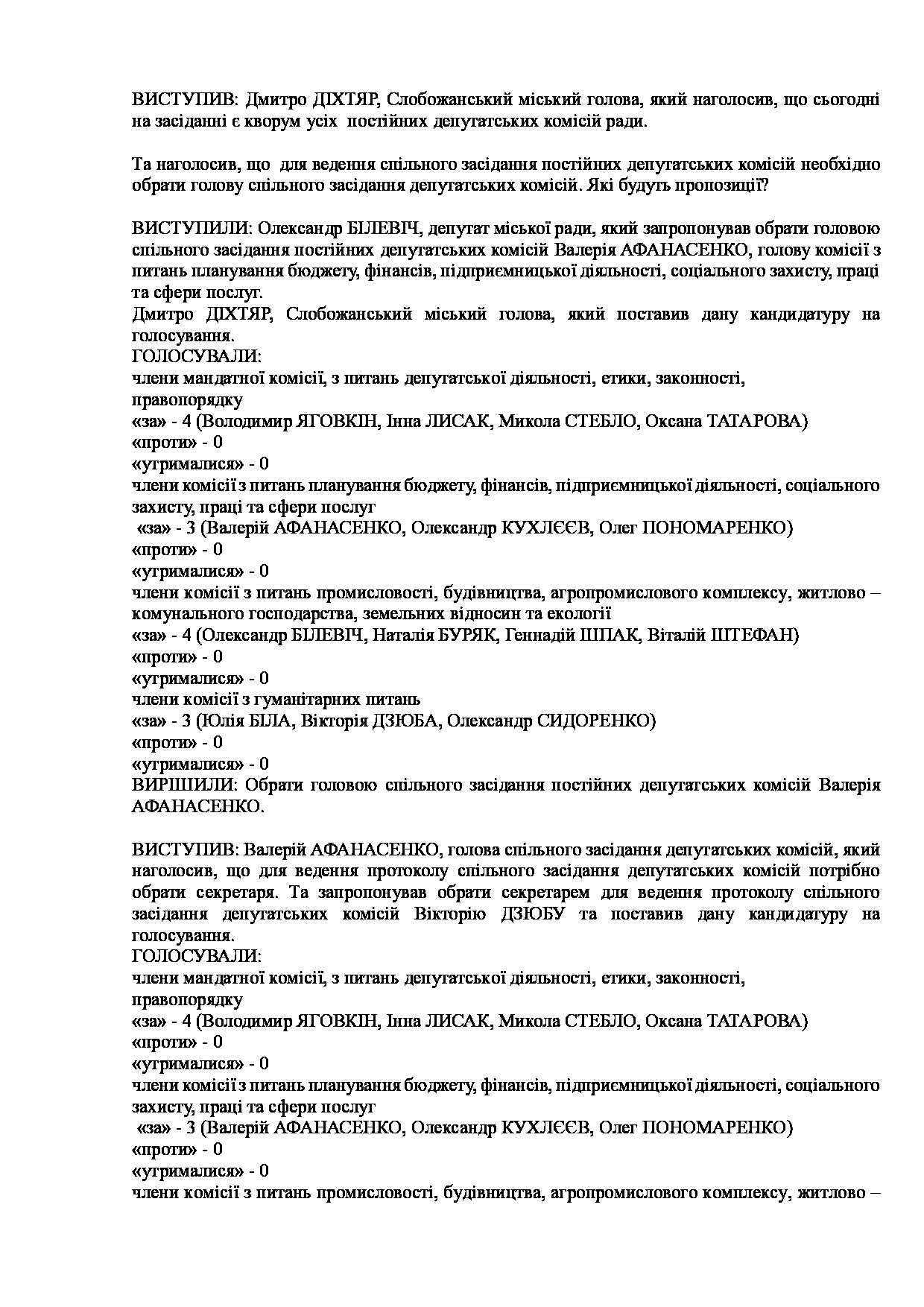 • ПРОТОКОЛ спільного засідання постійних депутатських комісій від 21 квітня 2025 року