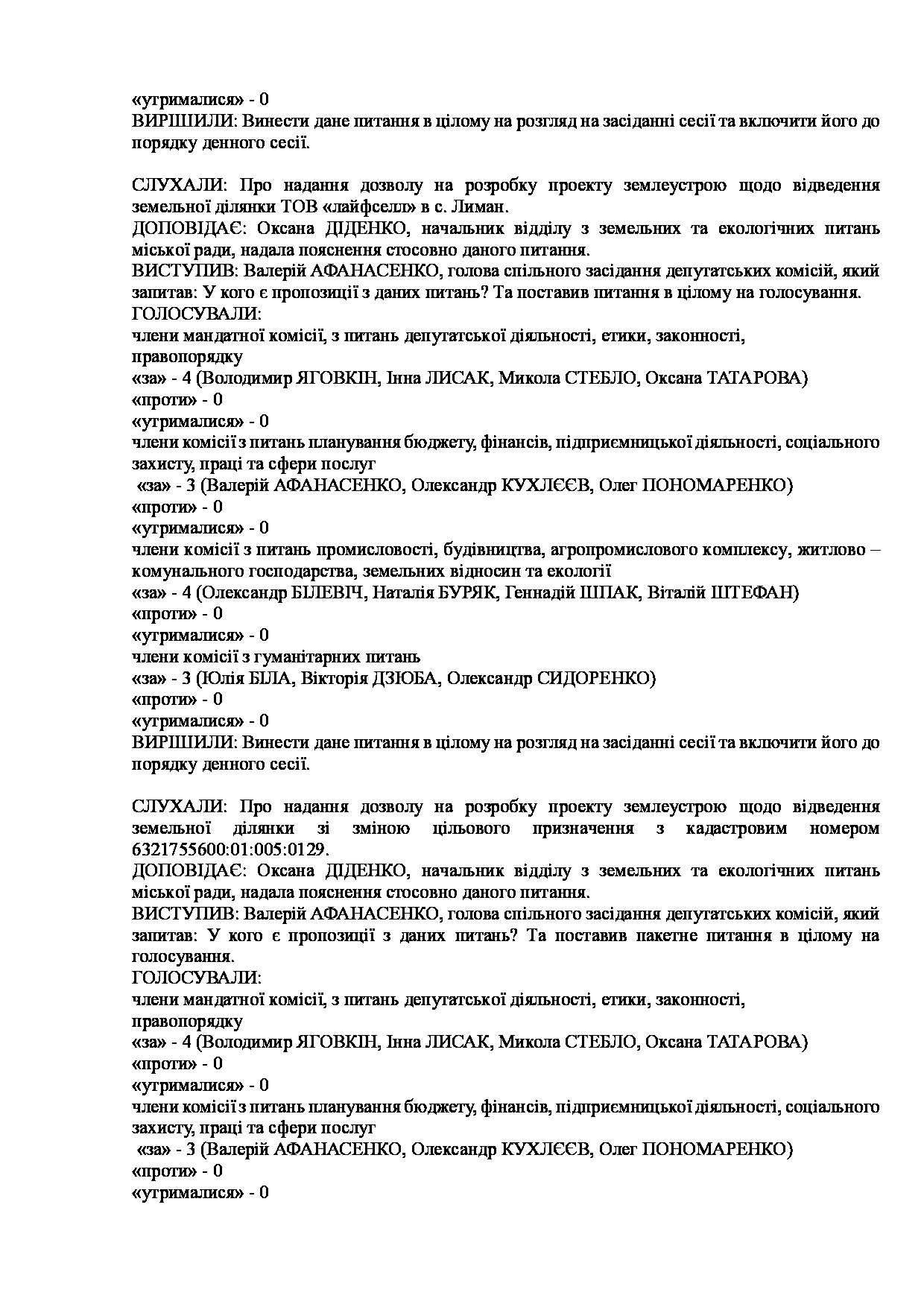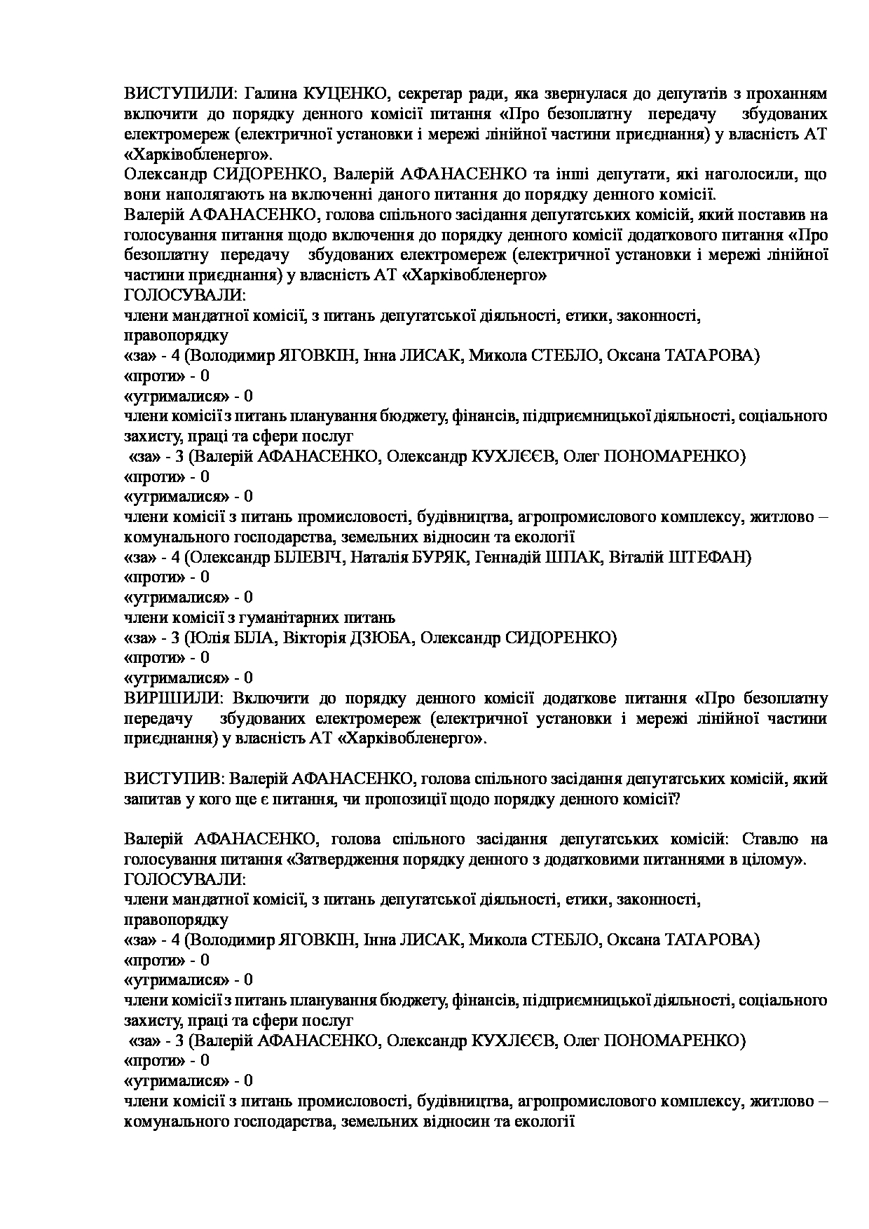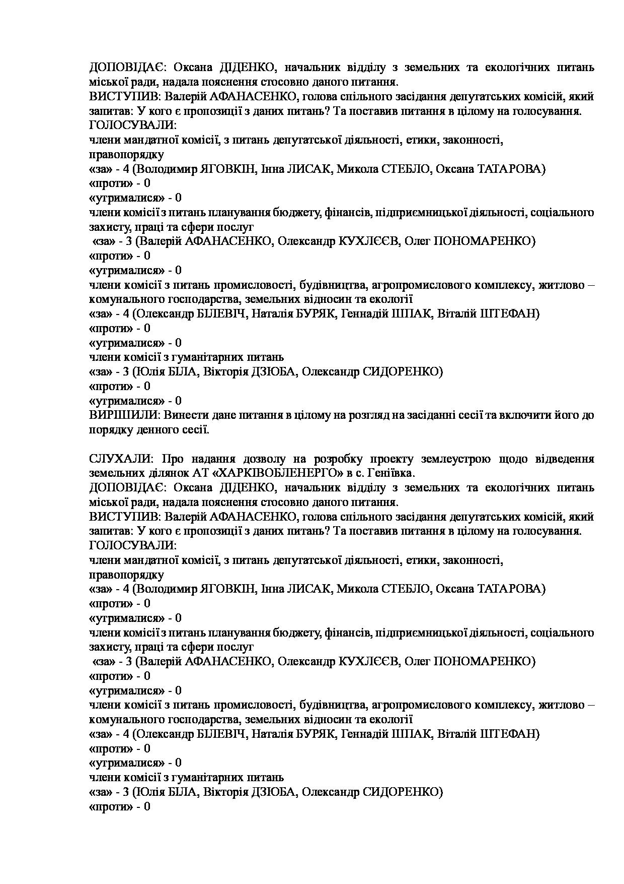 • ПРОТОКОЛ спільного засідання постійних депутатських комісій від 21 квітня 2025 року