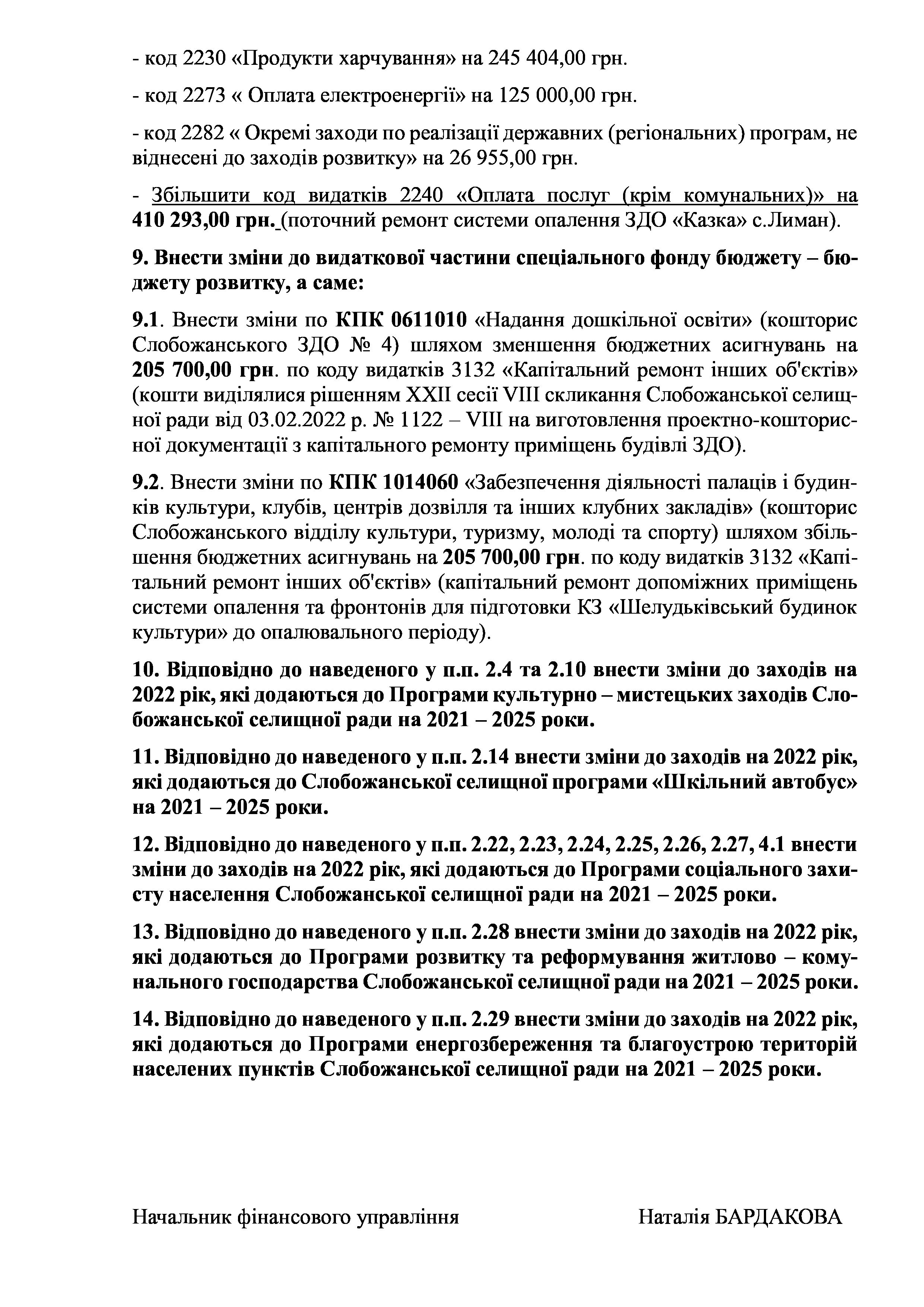 Рішення сесії №1348-VIII Про внесення змін до Заходів на 2022 рік до Програми розвитку і реформування житлово-комунального господарства Слобожанської селищної ради на 2021-2025 роки.