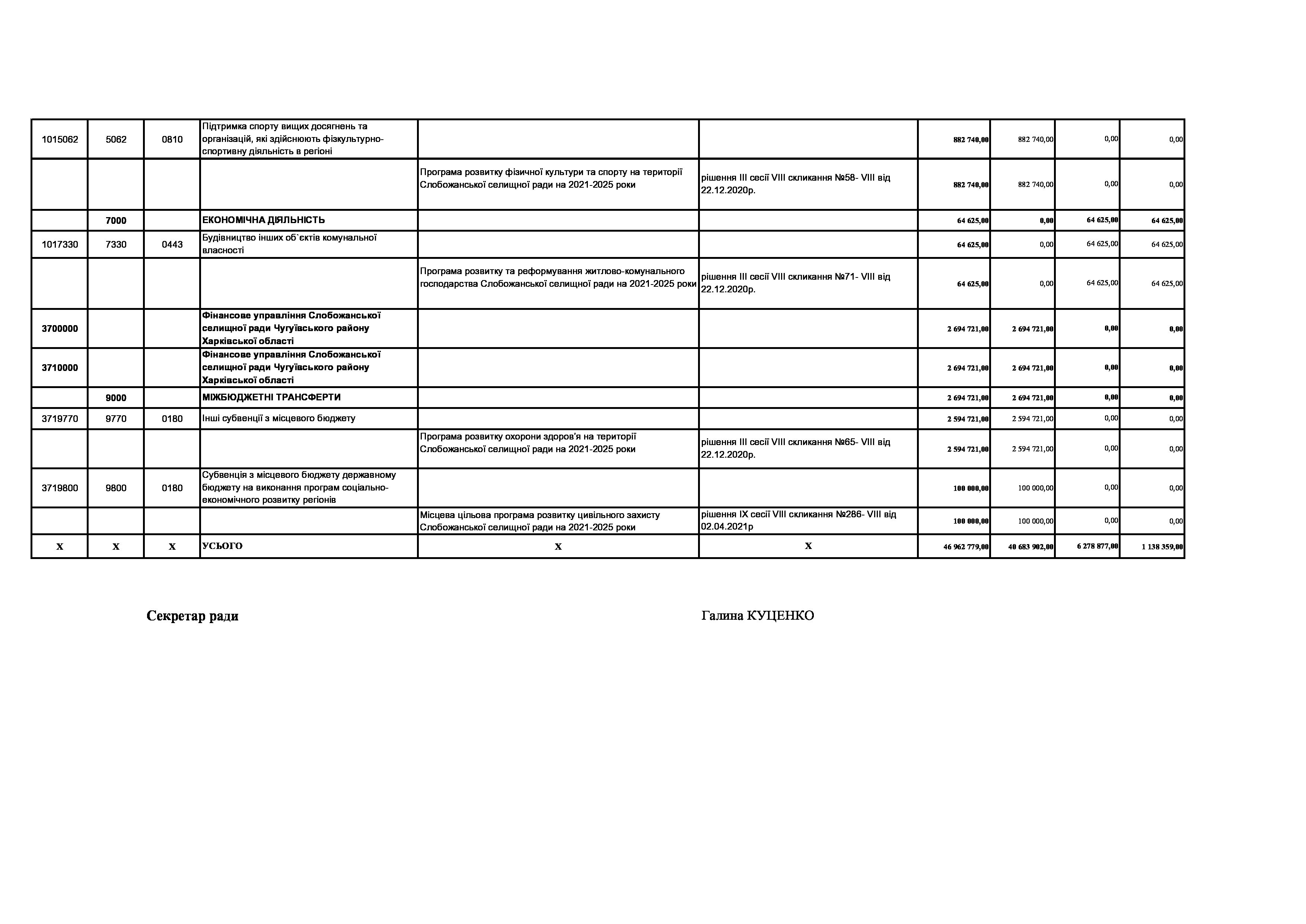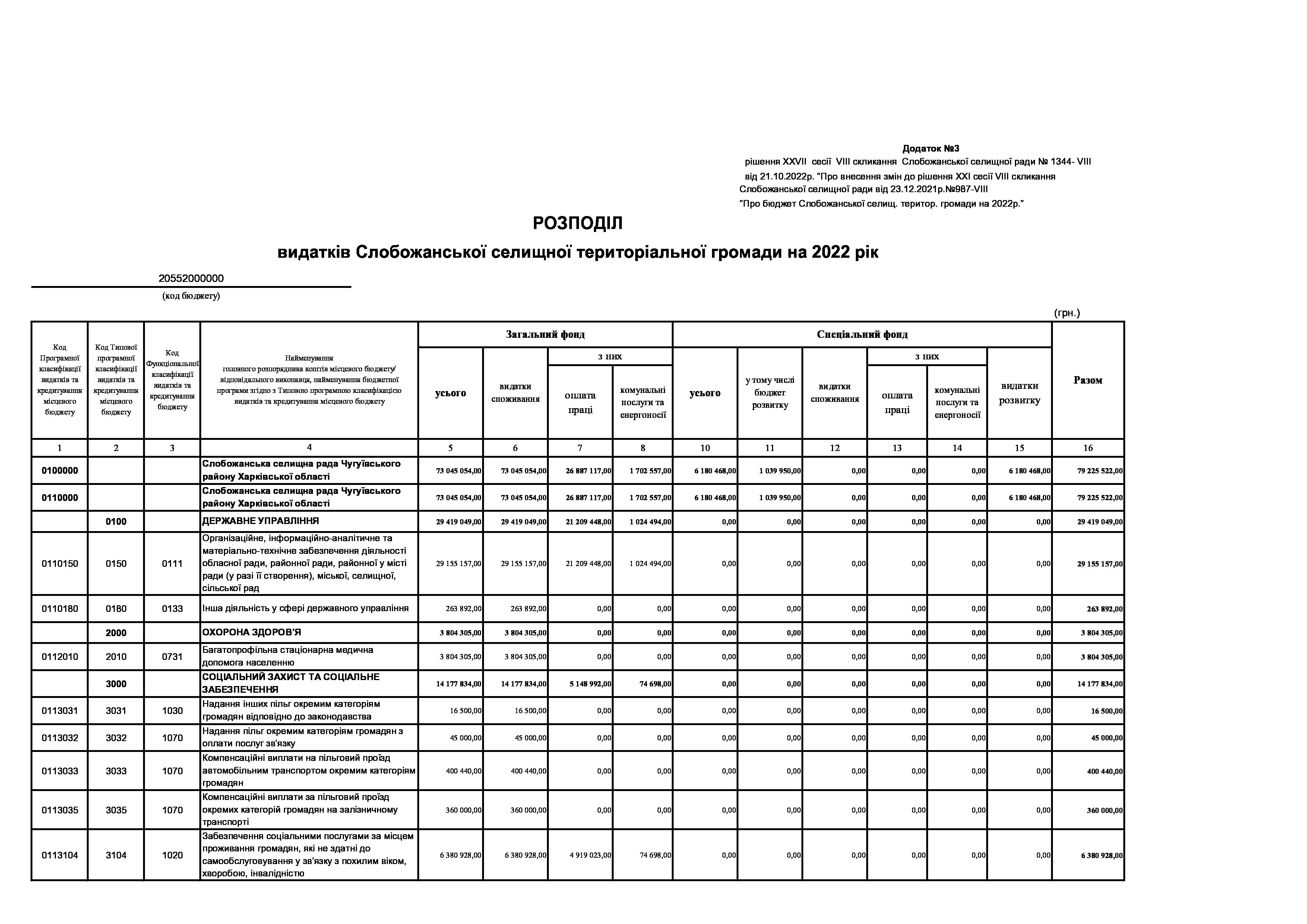 Рішення сесії №1344-VIII Про внесення змін до рішення ХХІ сесії VIІI скликання Слобожанської селищної ради від 23 грудня 2021 року №987-VIІI «Про бюджет Слобожанської селищної територіальної громади на 2022 рік».