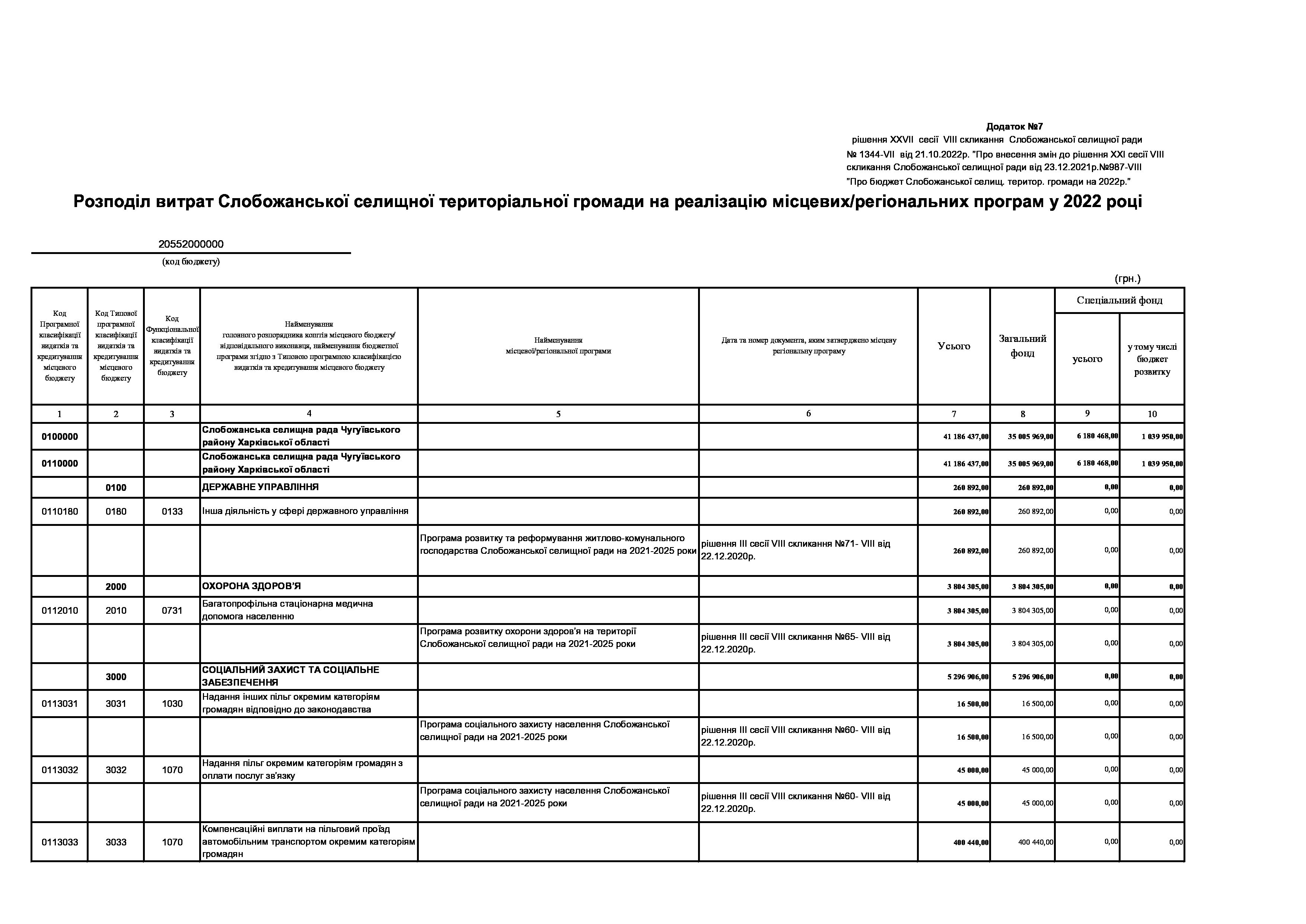 Рішення сесії №1345-VIII Про внесення змін до Заходів на 2022 рік до Програми соціального захисту населення Слобожанської селищної ради на 2021 -2025 роки.