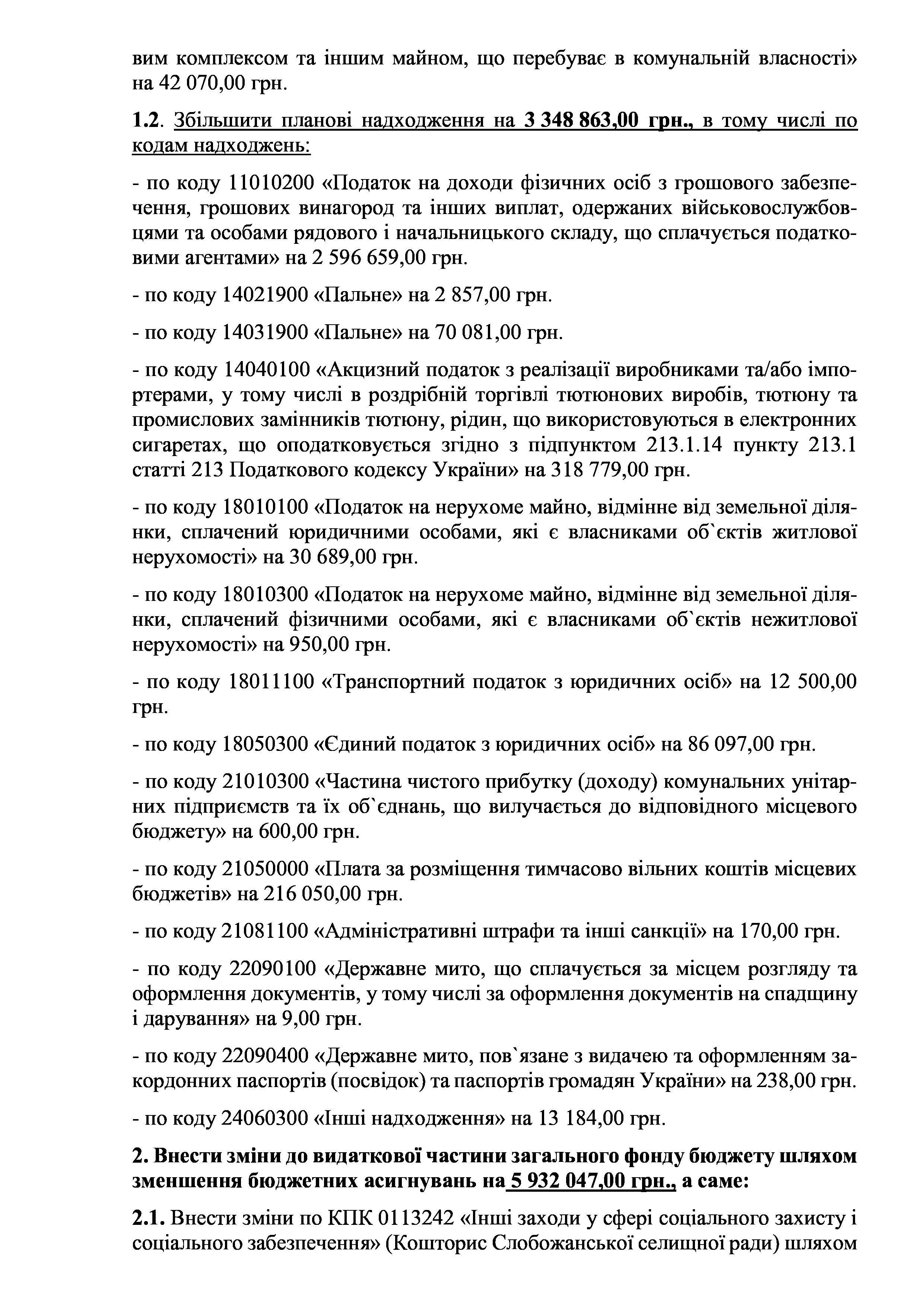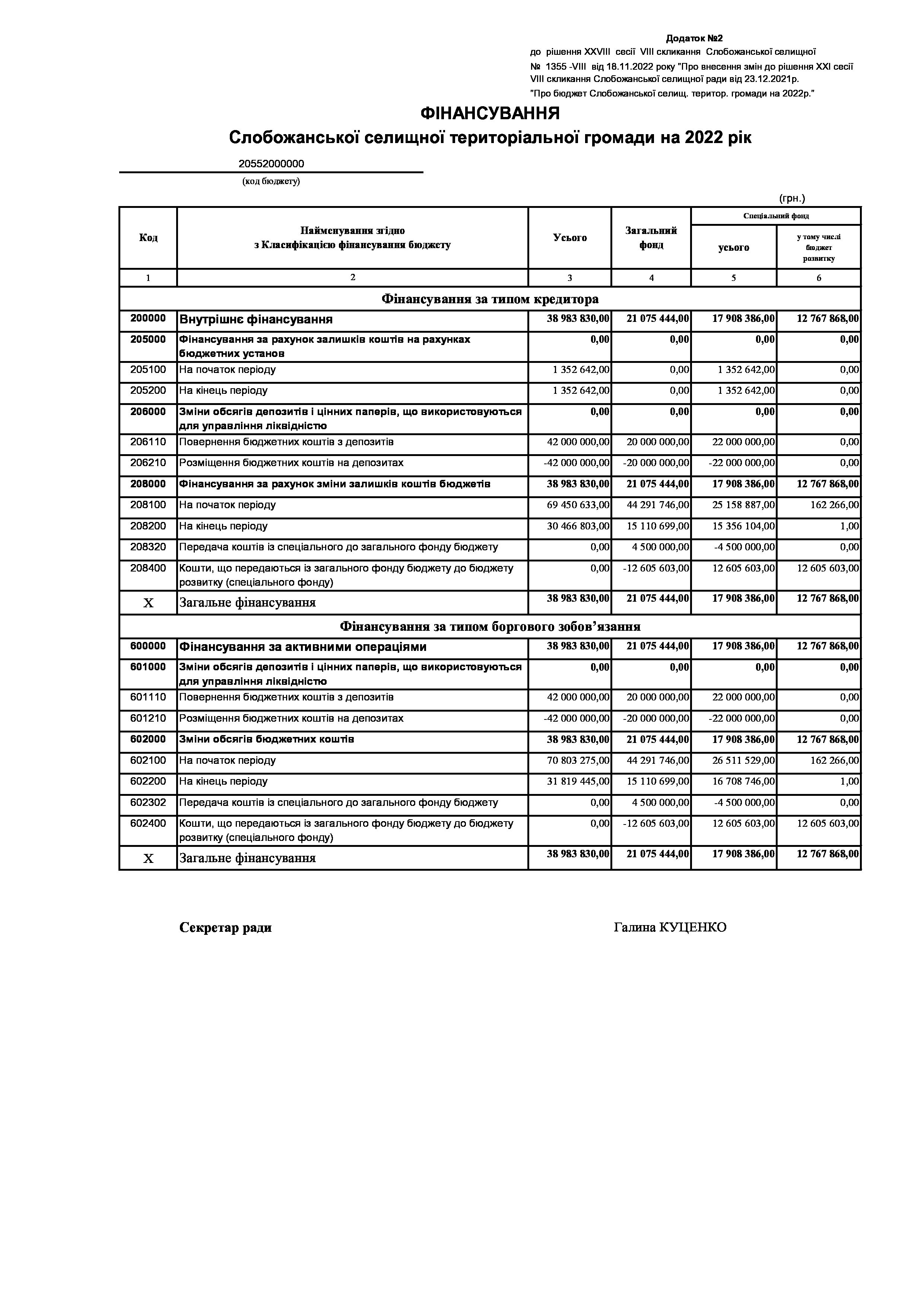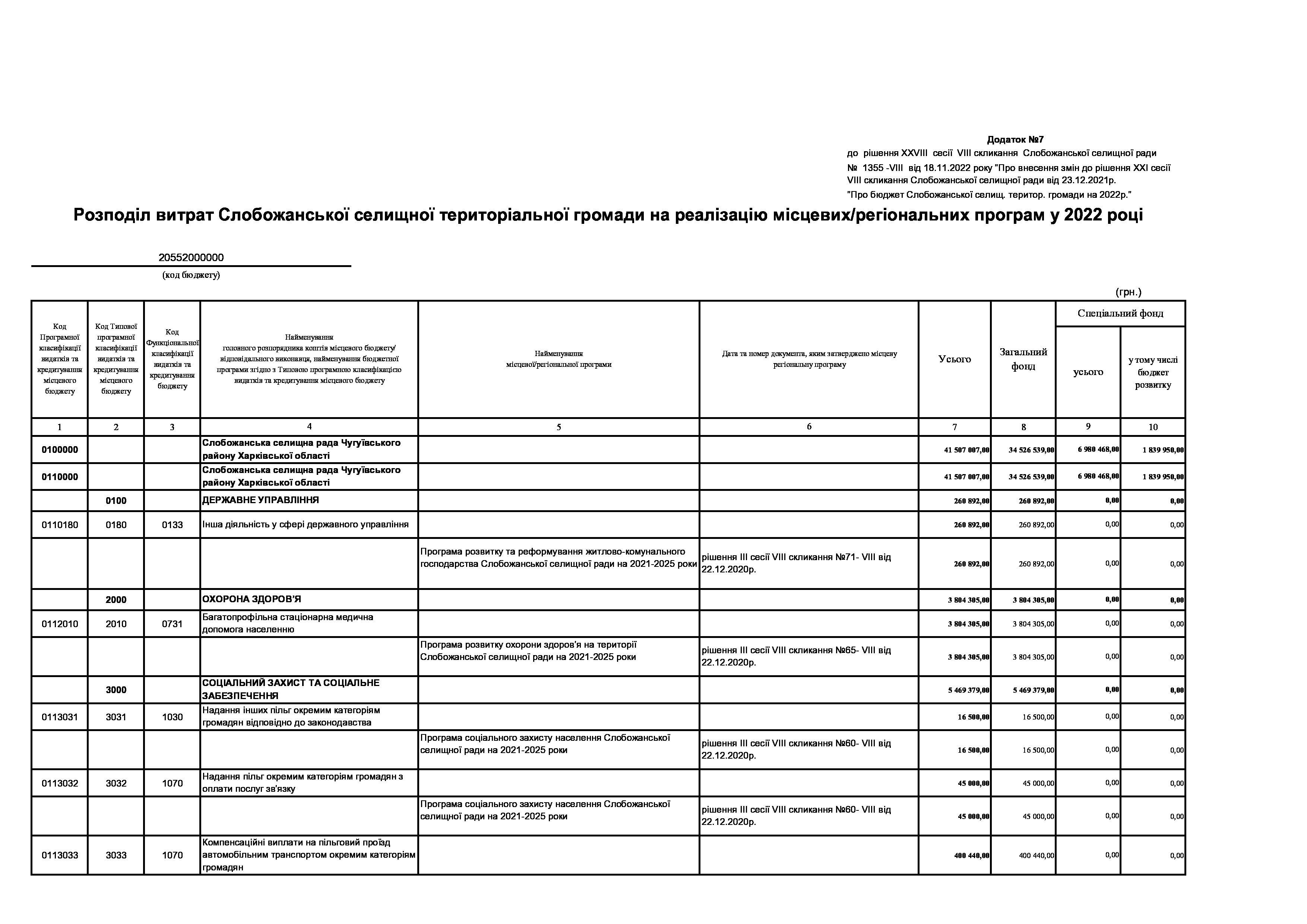 Рішення сесії №1355-VIII Про внесення змін до рішення ХХІ сесії VIІI скликання Слобожанської селищної ради від 23 грудня 2021 року №987-VIІI «Про бюджет Слобожанської селищної територіальної громади на 2022 рік».