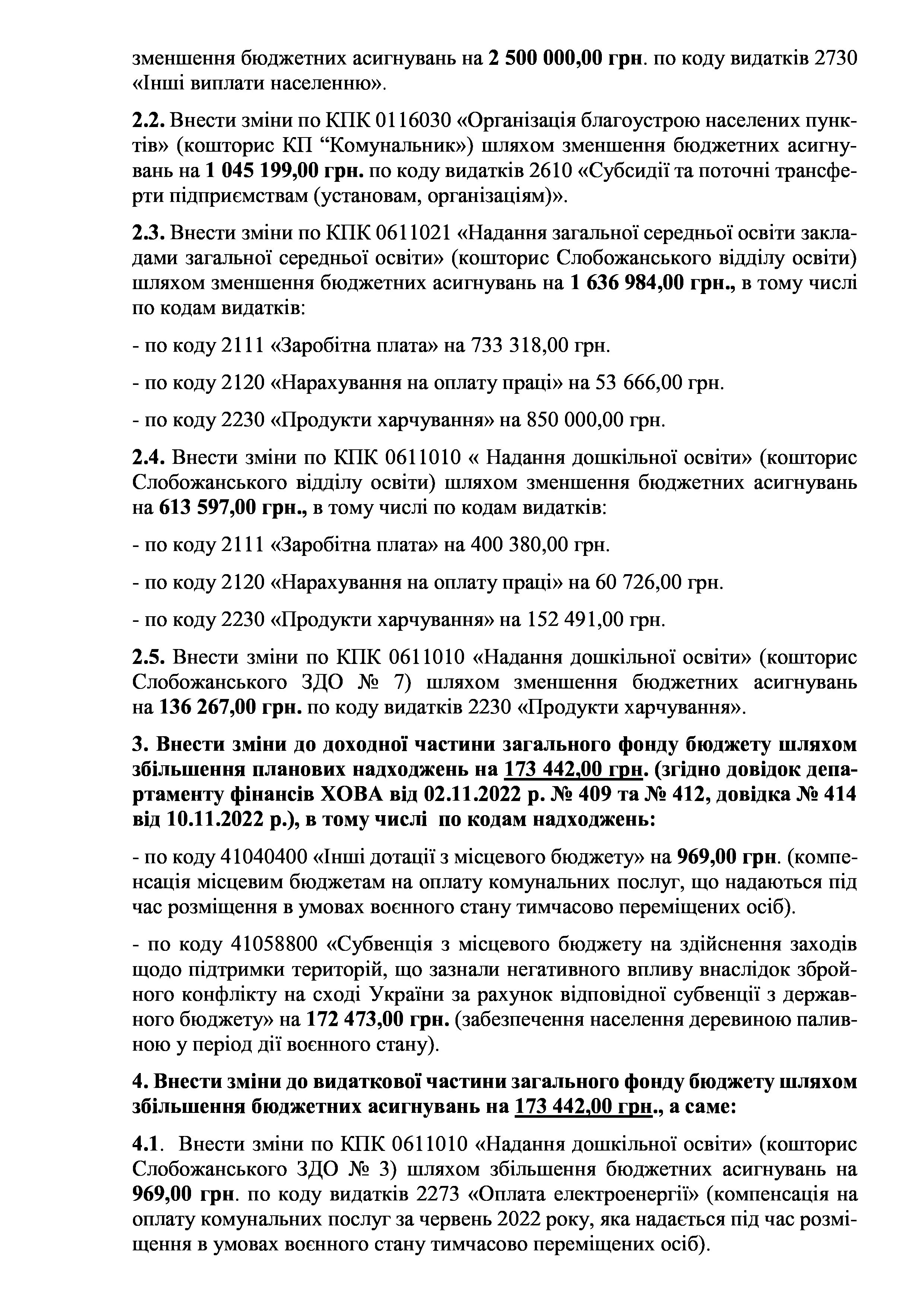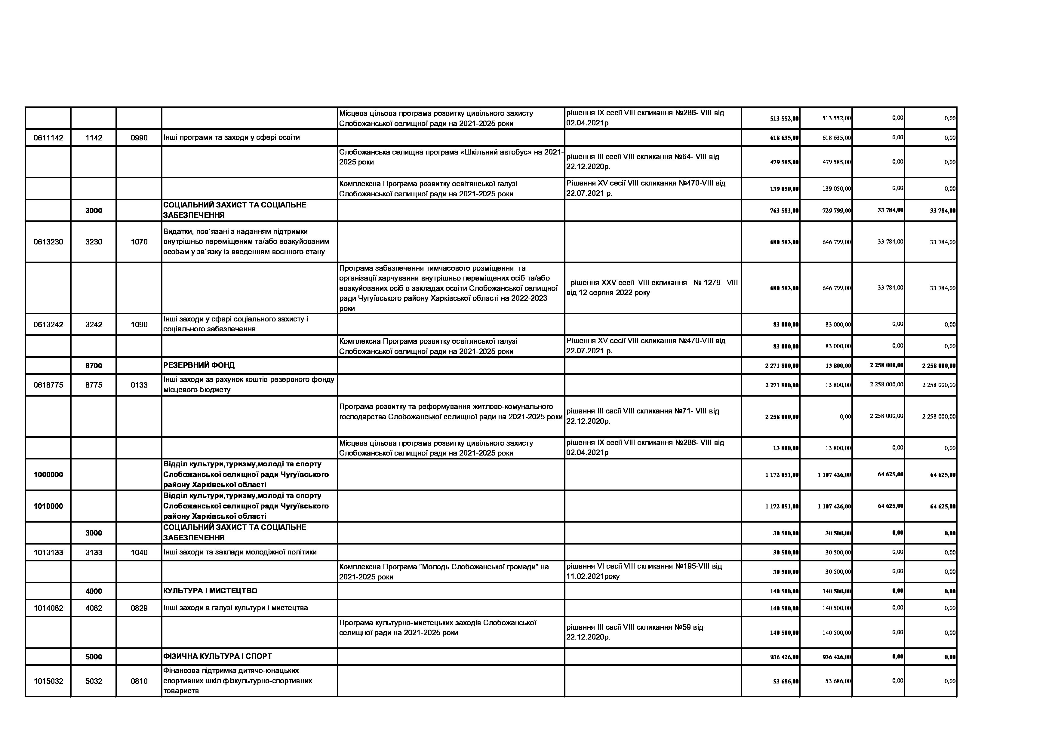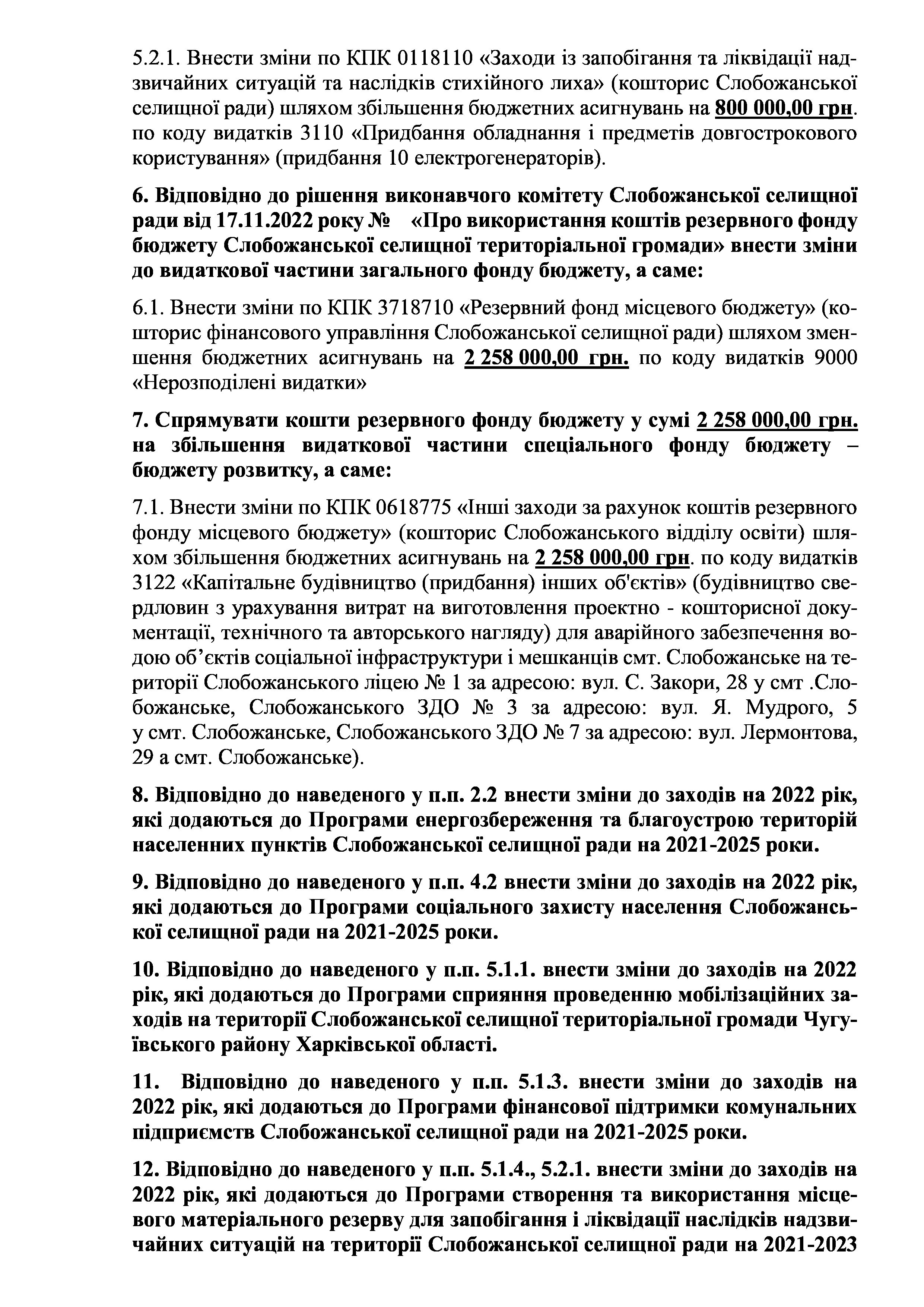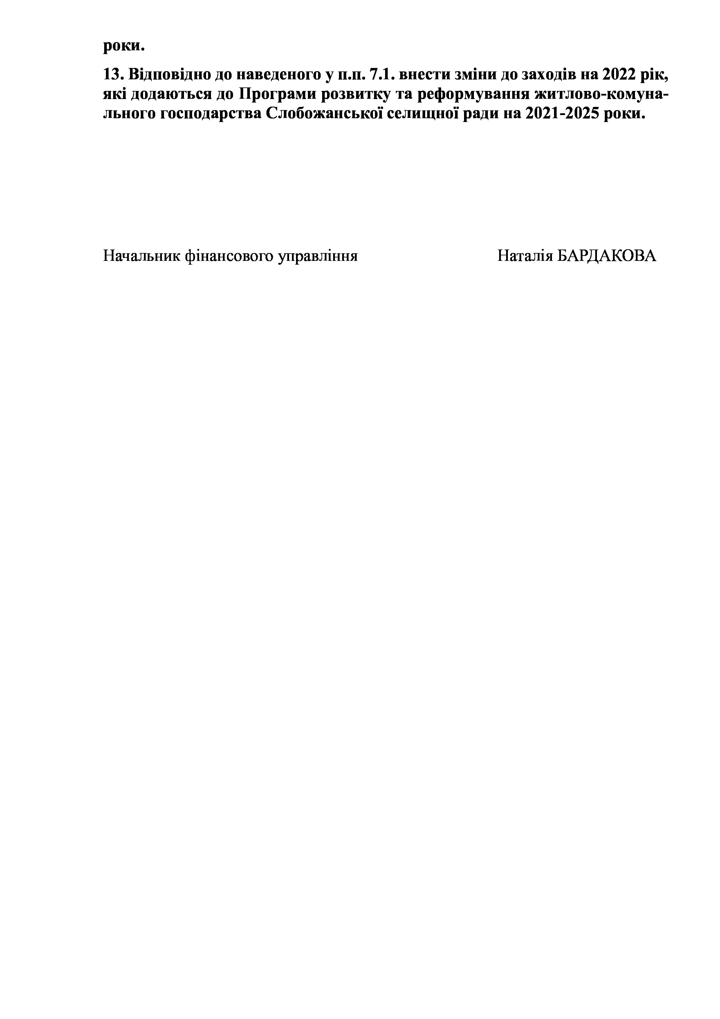 Рішення сесії №1357-VIII Про внесення змін та доповнень до Заходів на 2022 рік до Програми розвитку і реформування житлово-комунального господарства Слобожанської селищної ради на 2021-2025 роки.