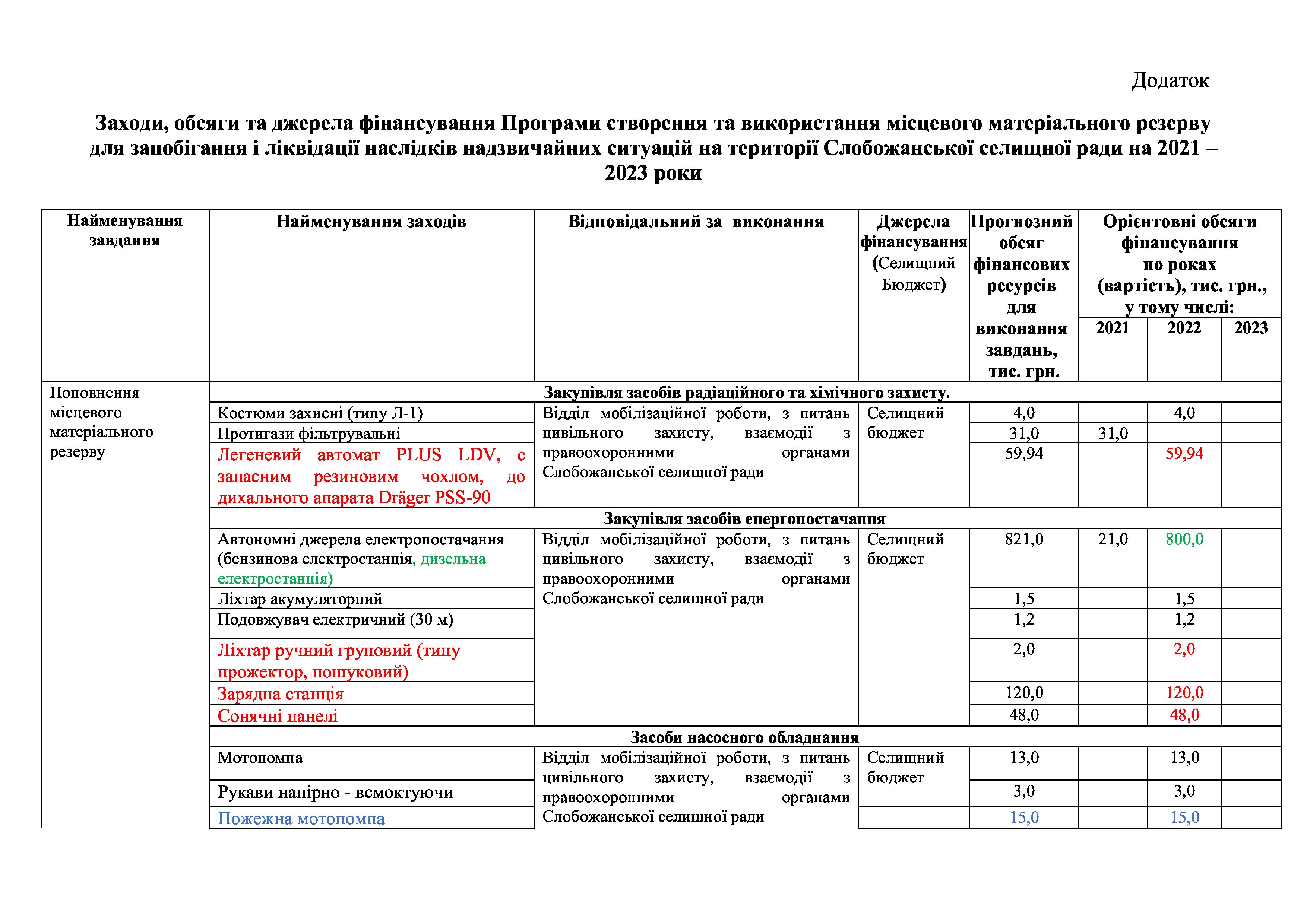 Рішення сесії №1360-VIII Про внесення змін до Програми створення та використання місцевого матеріального резерву для запобігання і ліквідації наслідків надзвичайних ситуацій на території Слобожанської селищної ради на 2021 – 2023 роки.