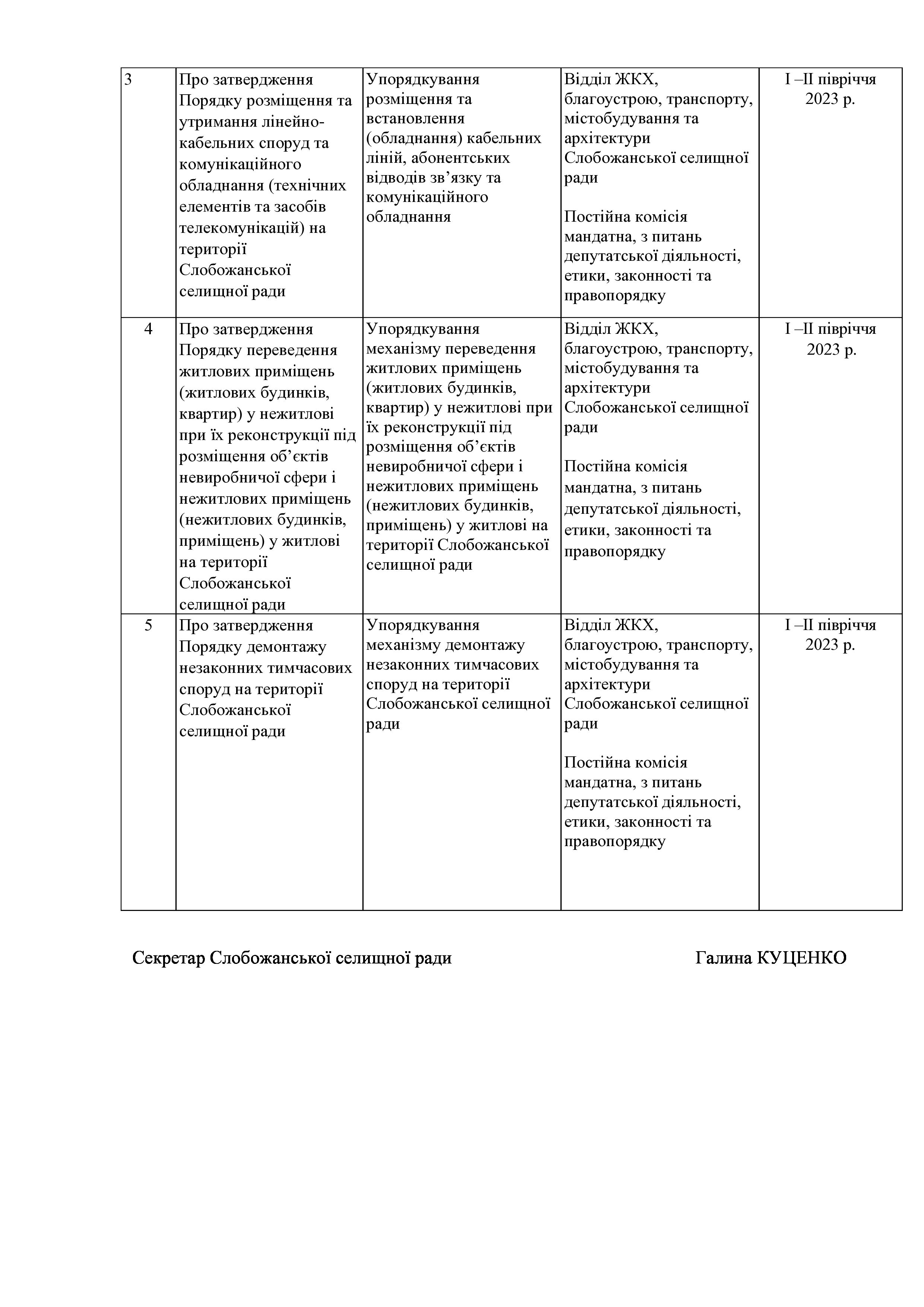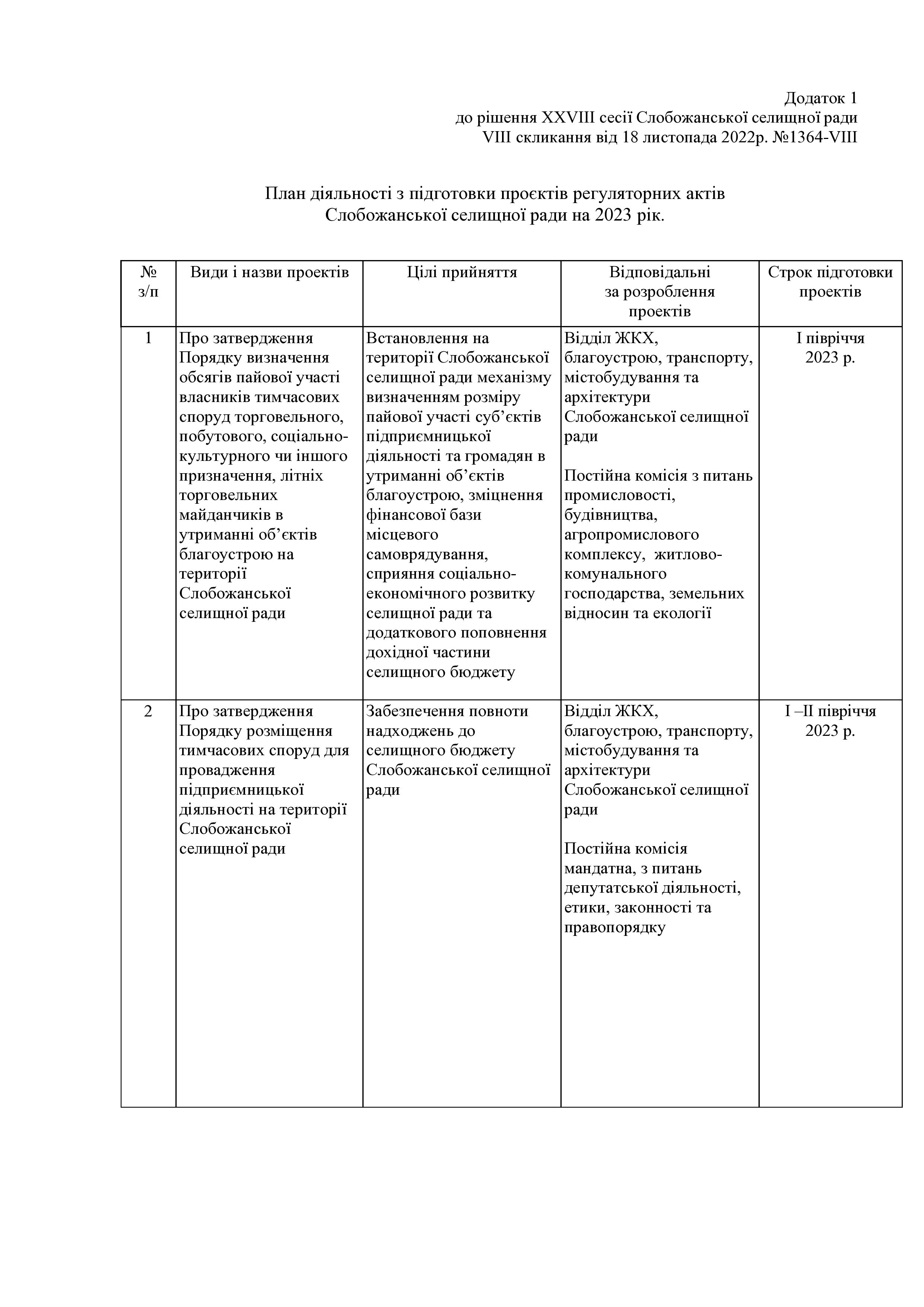 Рішення сесії №1364-VIII Про затвердження плану діяльності з підготовки проєктів регуляторних актів Слобожанської селищної ради на 2023 рік.