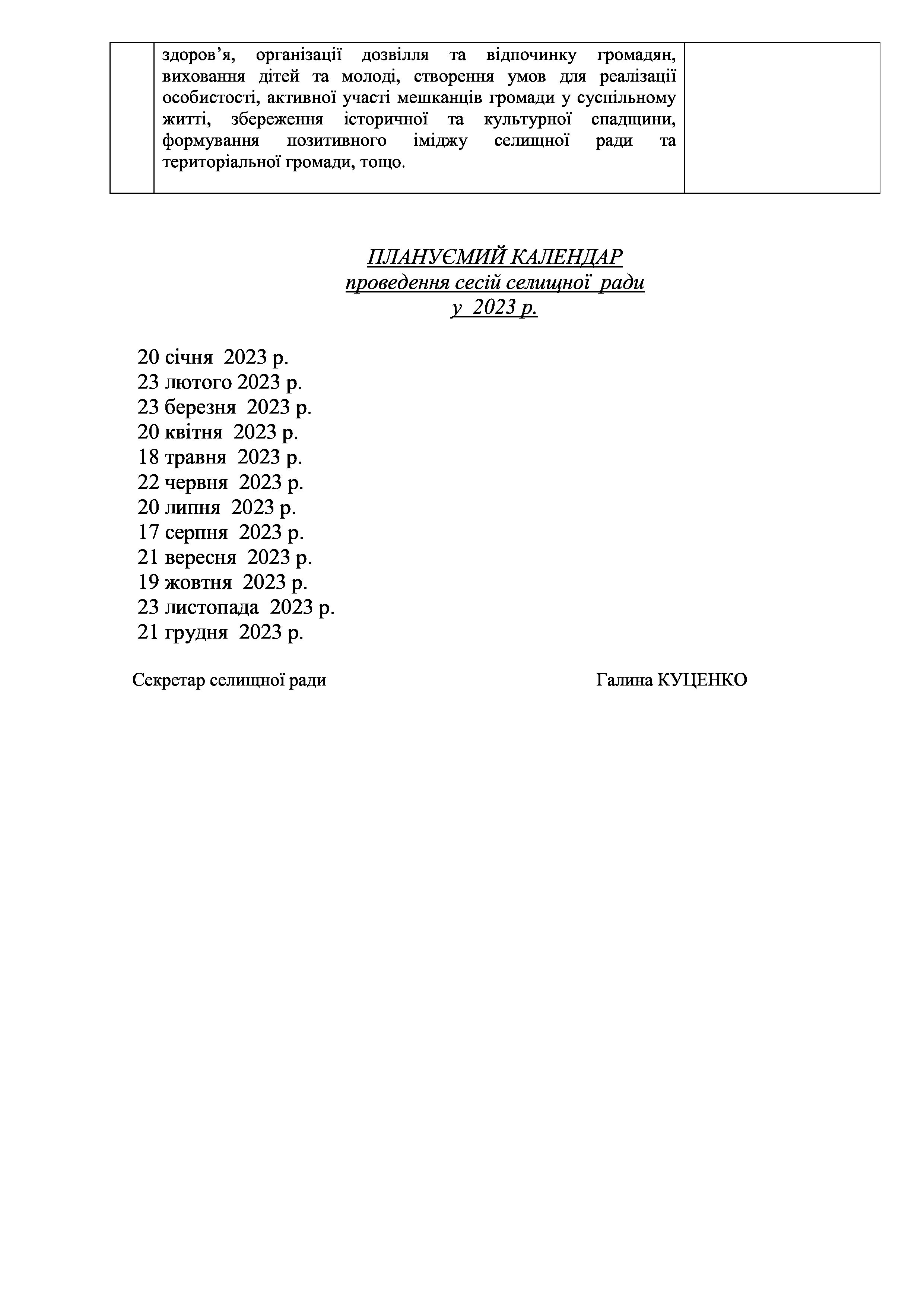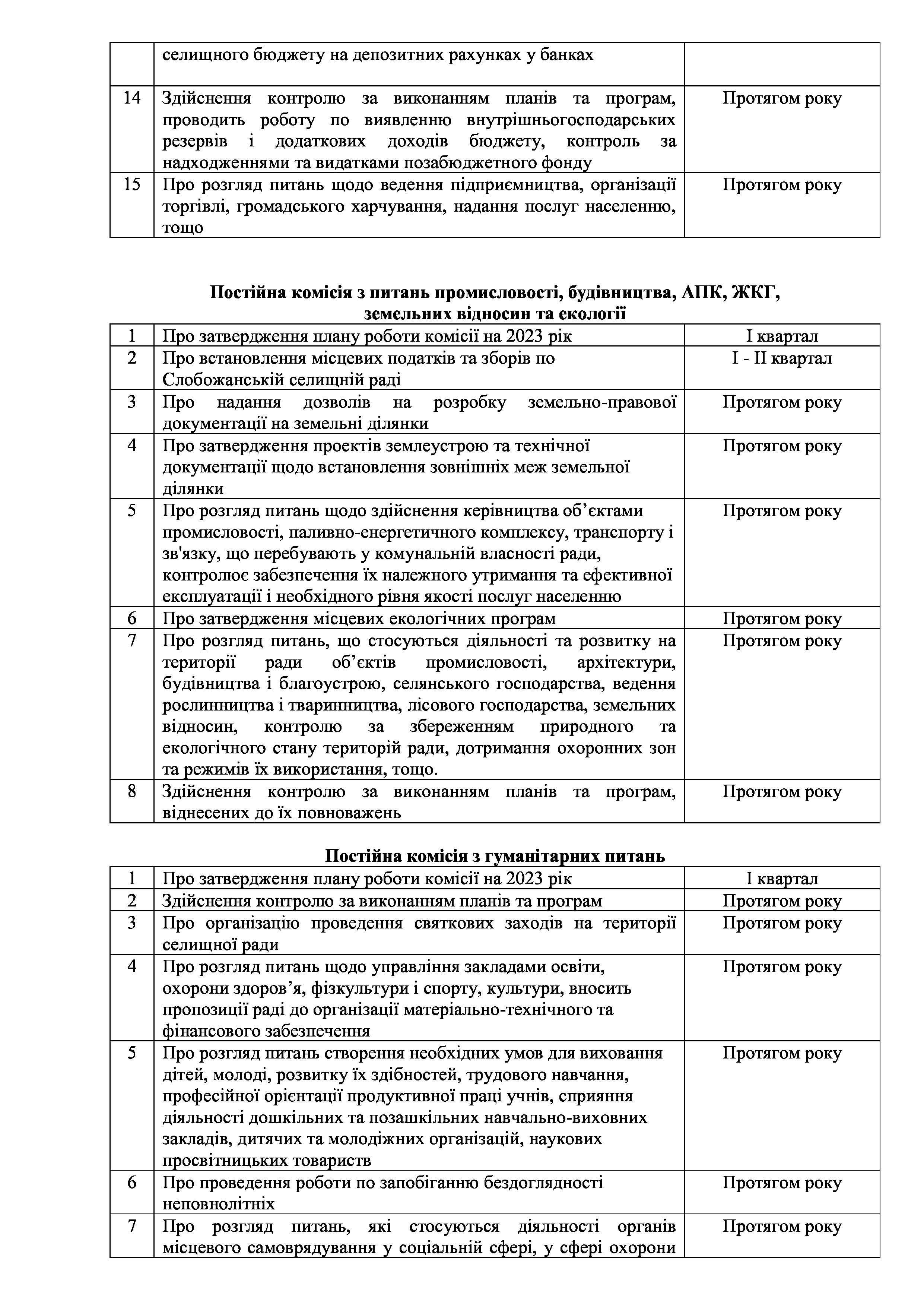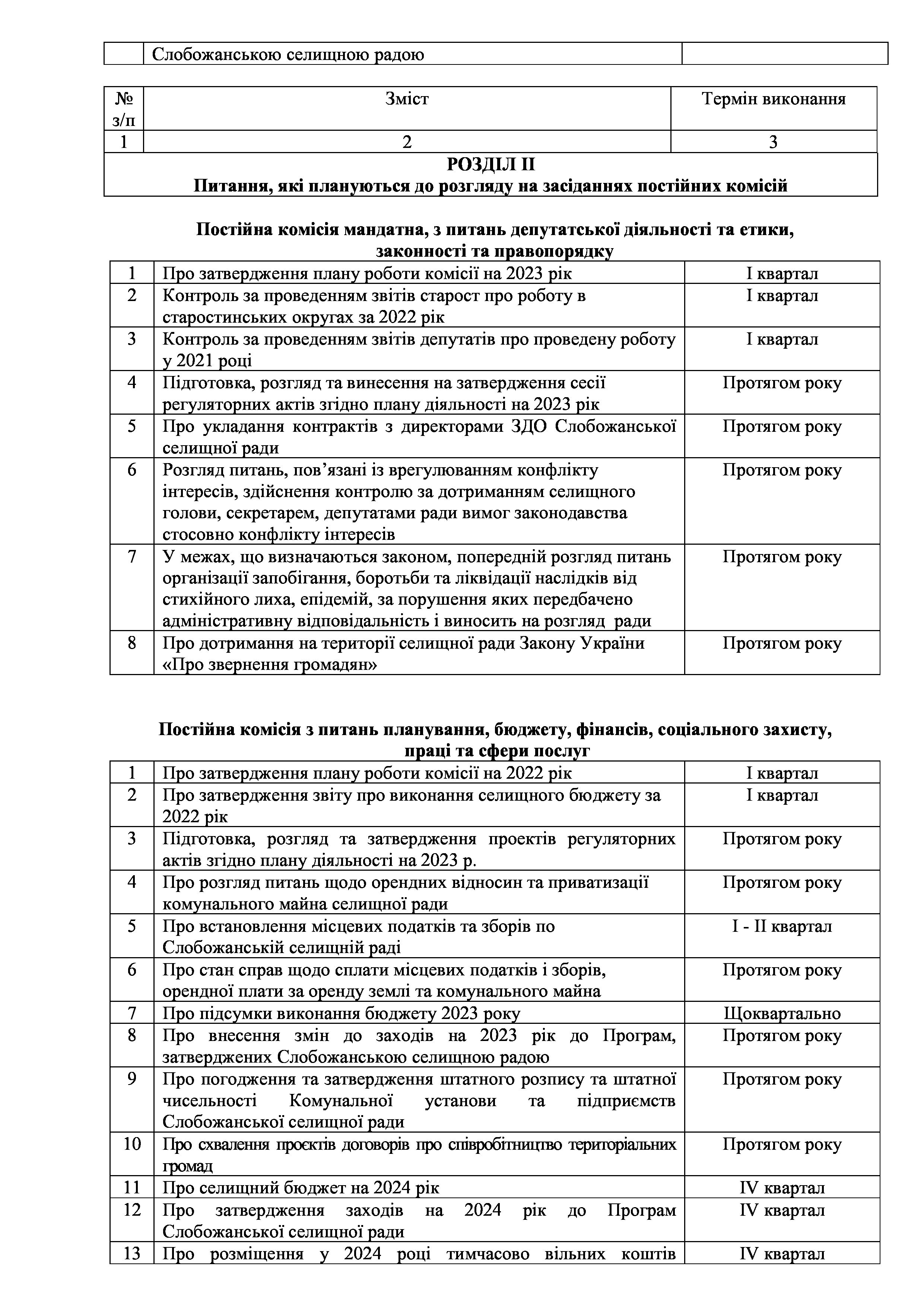 Рішення сесії №1417-VIII Про затвердження плану роботи Слобожанської селищної ради на 2023 рік.