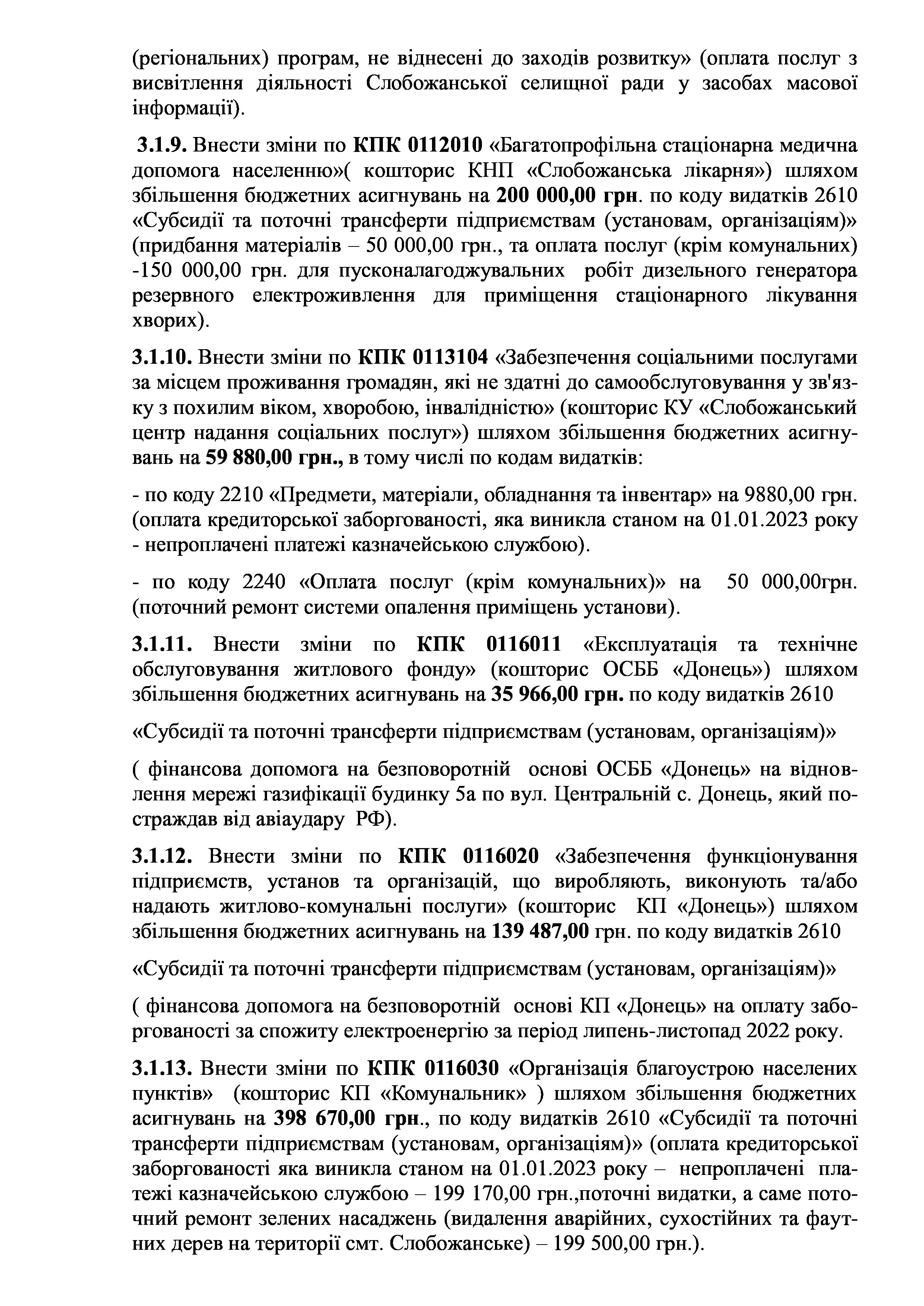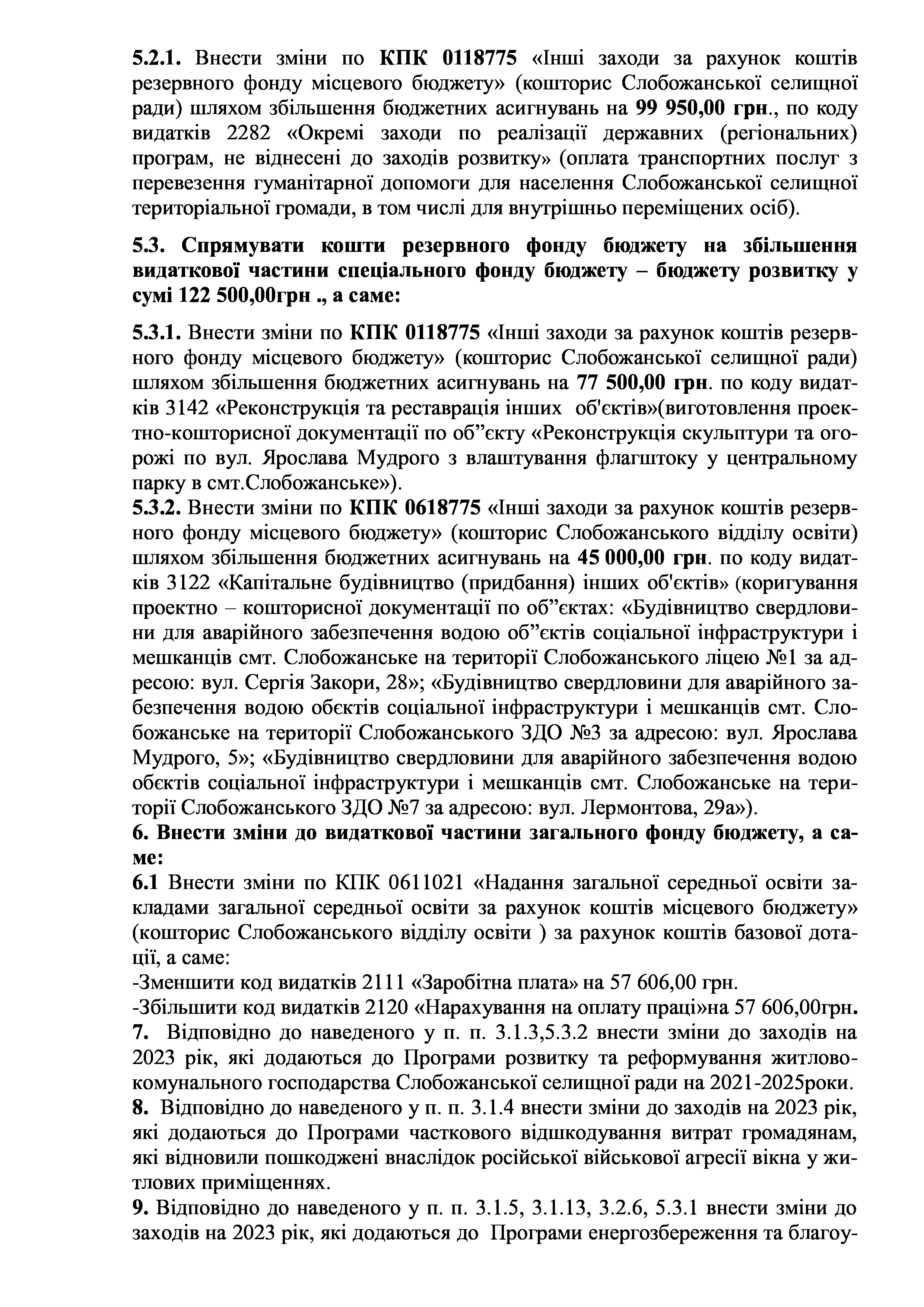 Рішення сесії №1458-VIII Про внесення змін та доповнень до Заходів на 2023 рік до Програми розвитку і реформування житлово-комунального господарства Слобожанської селищної ради на 2021-2025 роки.