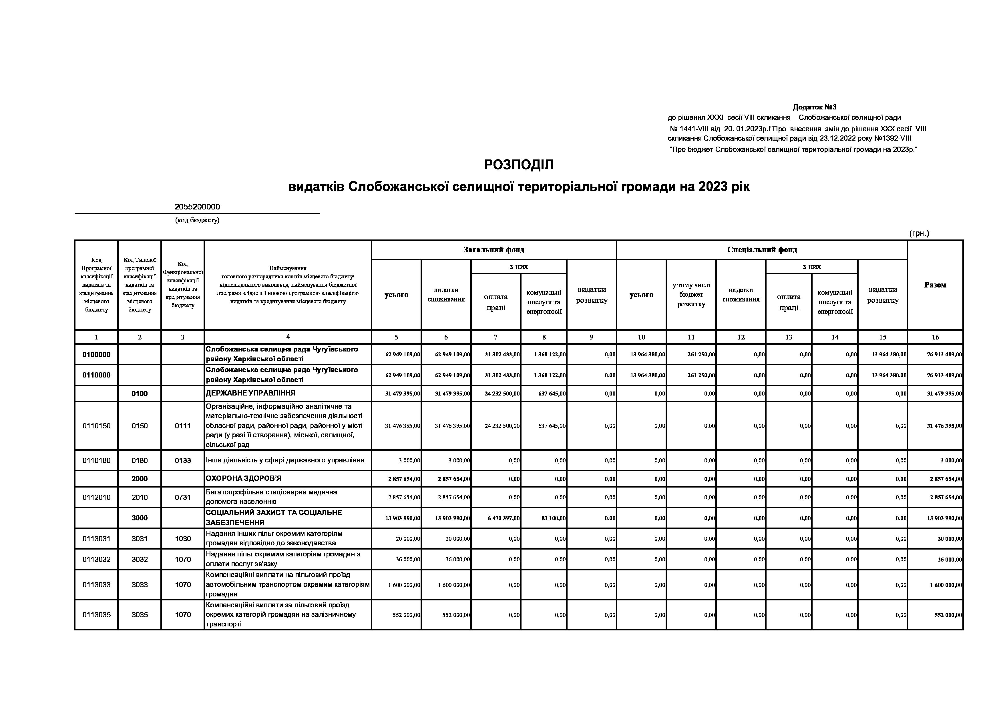 Рішення сесії №1447-VIII Про внесення змін до Заходів на 2023 рік до Програми розвитку охорони здоров’я на території Слобожанської селищної ради на 2021 - 2025 роки.