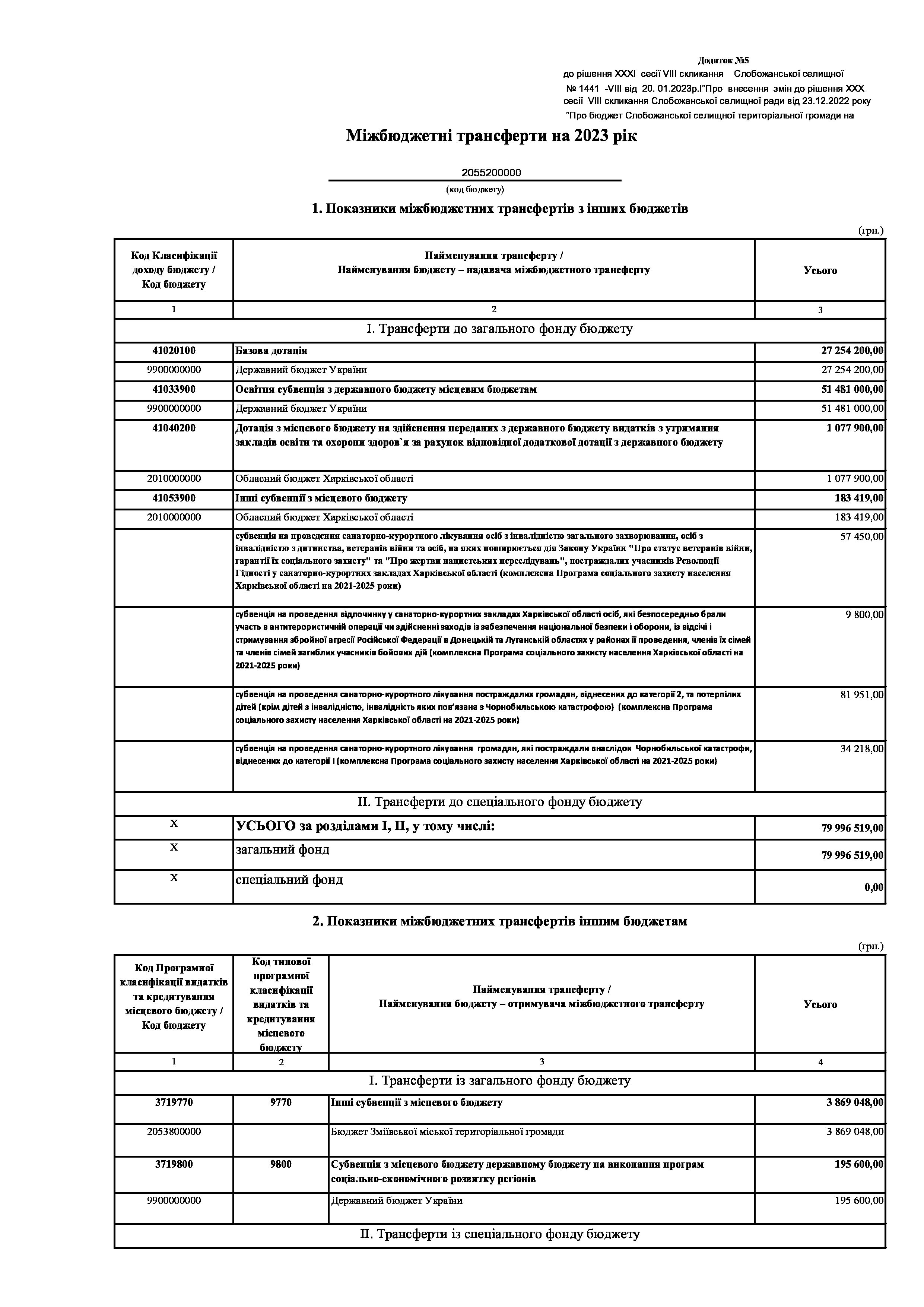 Додаток № 5 до рішення сесії 1441 - VIII