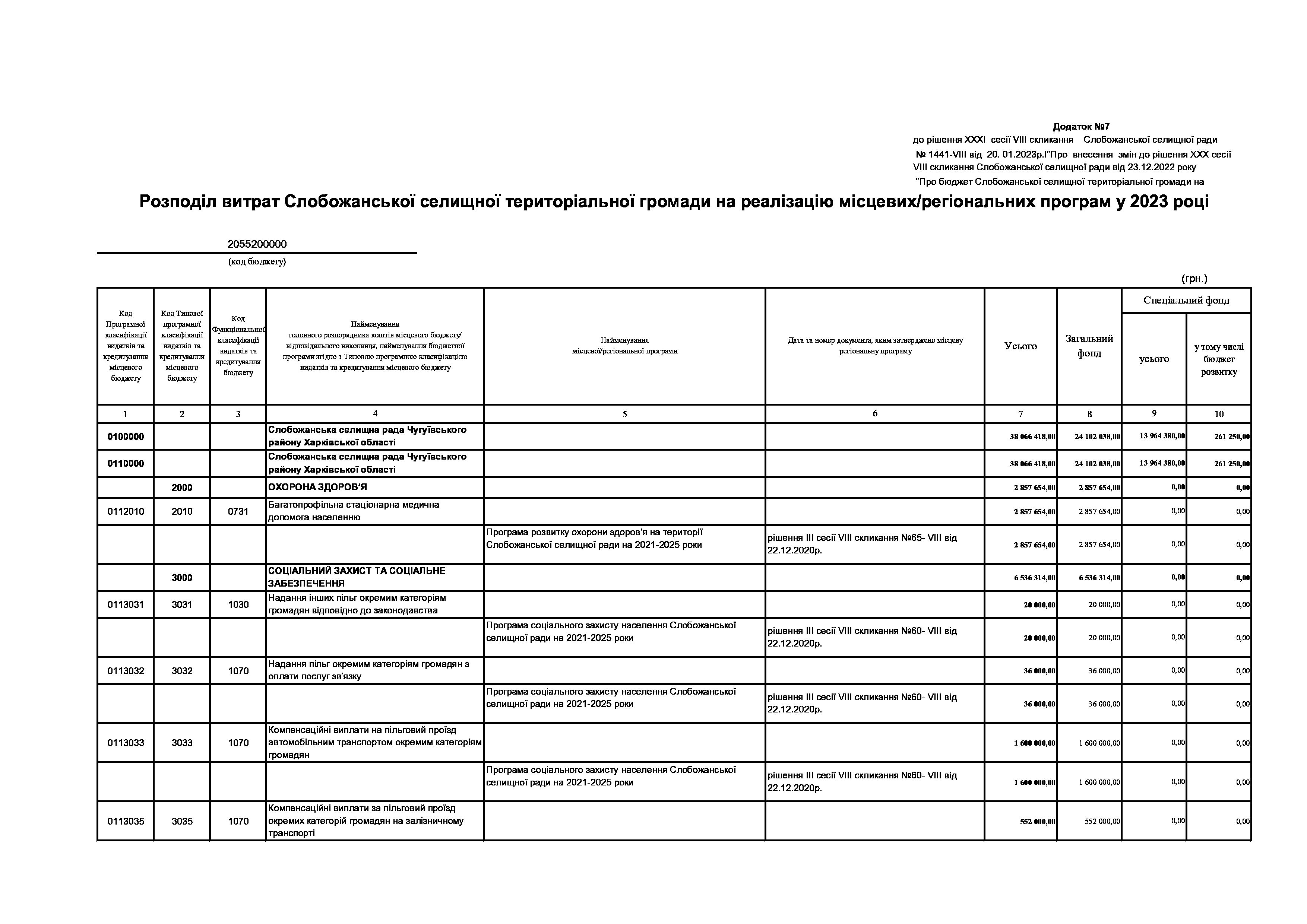 Рішення сесії №1445-VIII Про внесення змін до Програми соціального захисту населення Слобожанської селищної ради на 2021 - 2025 роки.