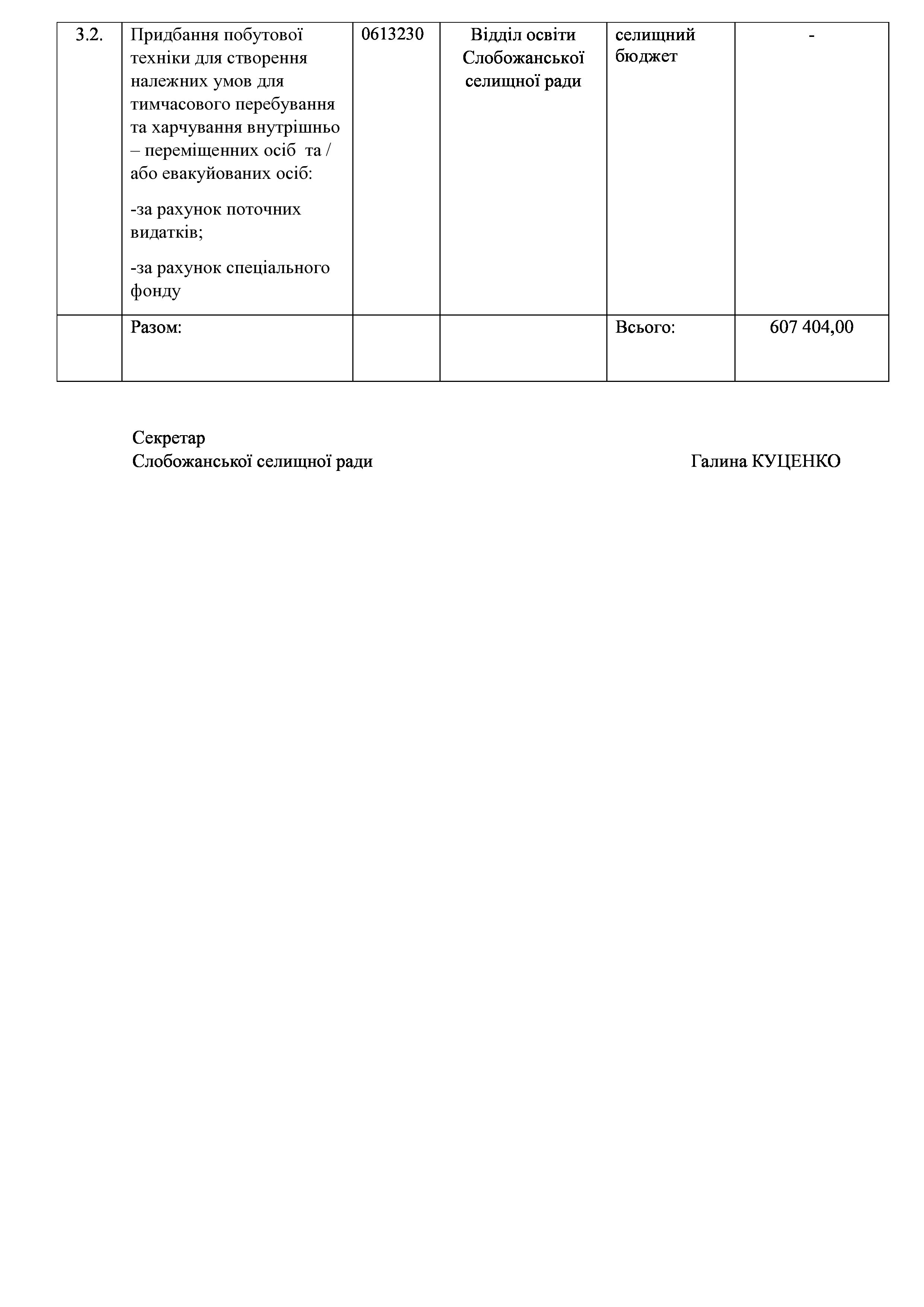 Рішення сесії №1424-VIII Про затвердження звіту про виконання Заходів за 2022 рік до Програми забезпечення тимчасового розміщення та організації харчування внутрішньо переміщених осіб та/або евакуйованих осіб, які перемістилися на територію Слобожанської селищної територіальної громади  після 24.02.2022 р., в закладах освіти Слобожанської селищної ради Чугуївського району Харківської області на 2022 – 2023 роки.