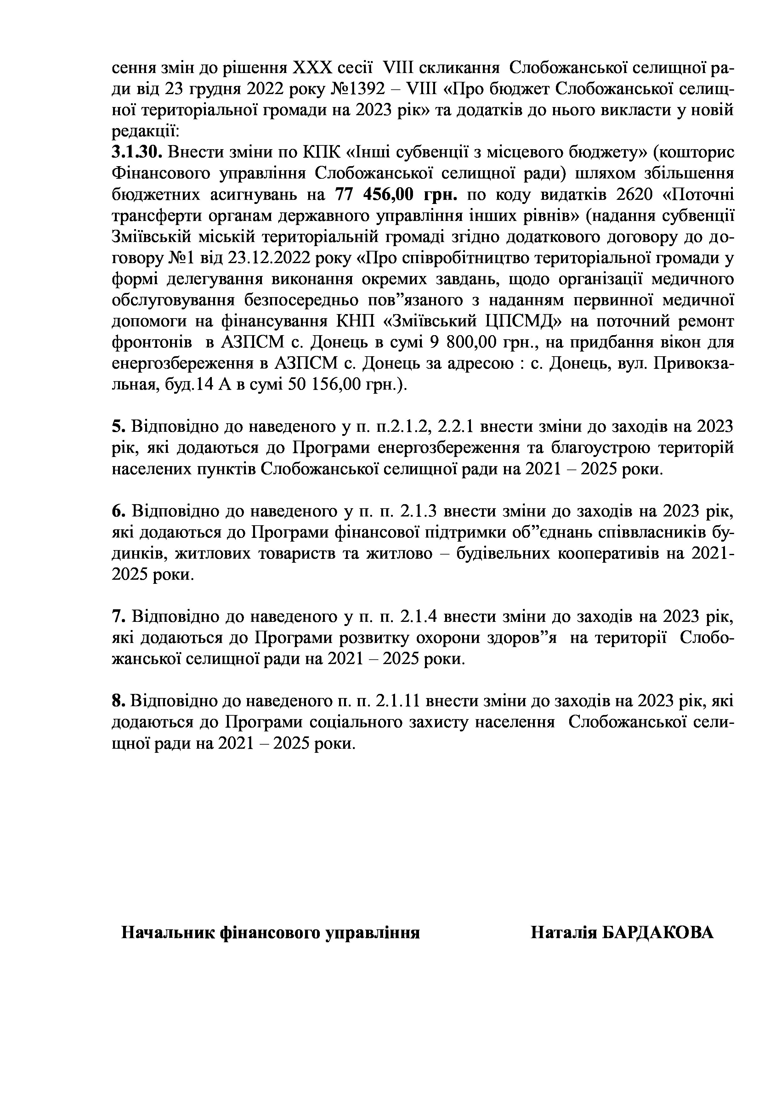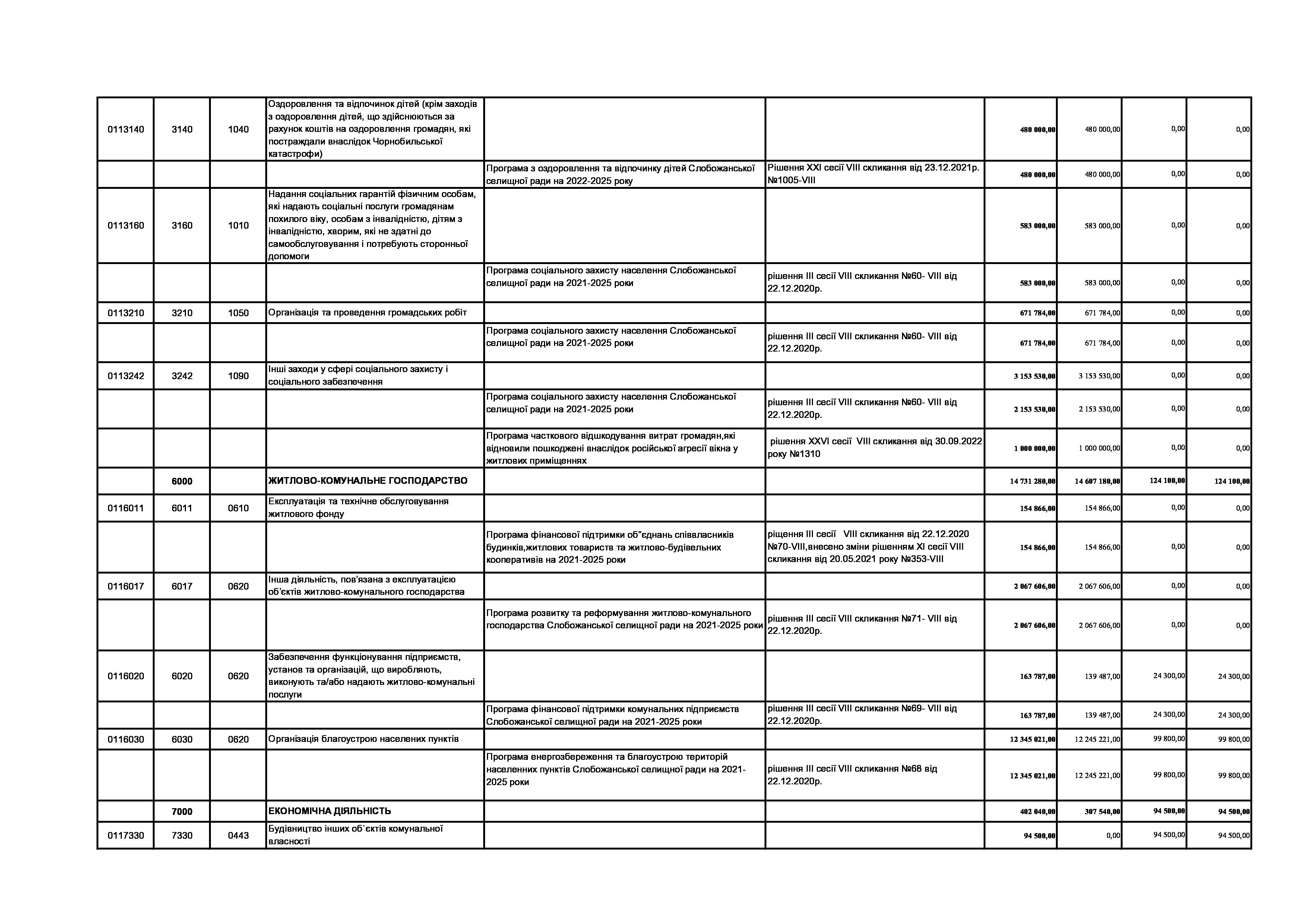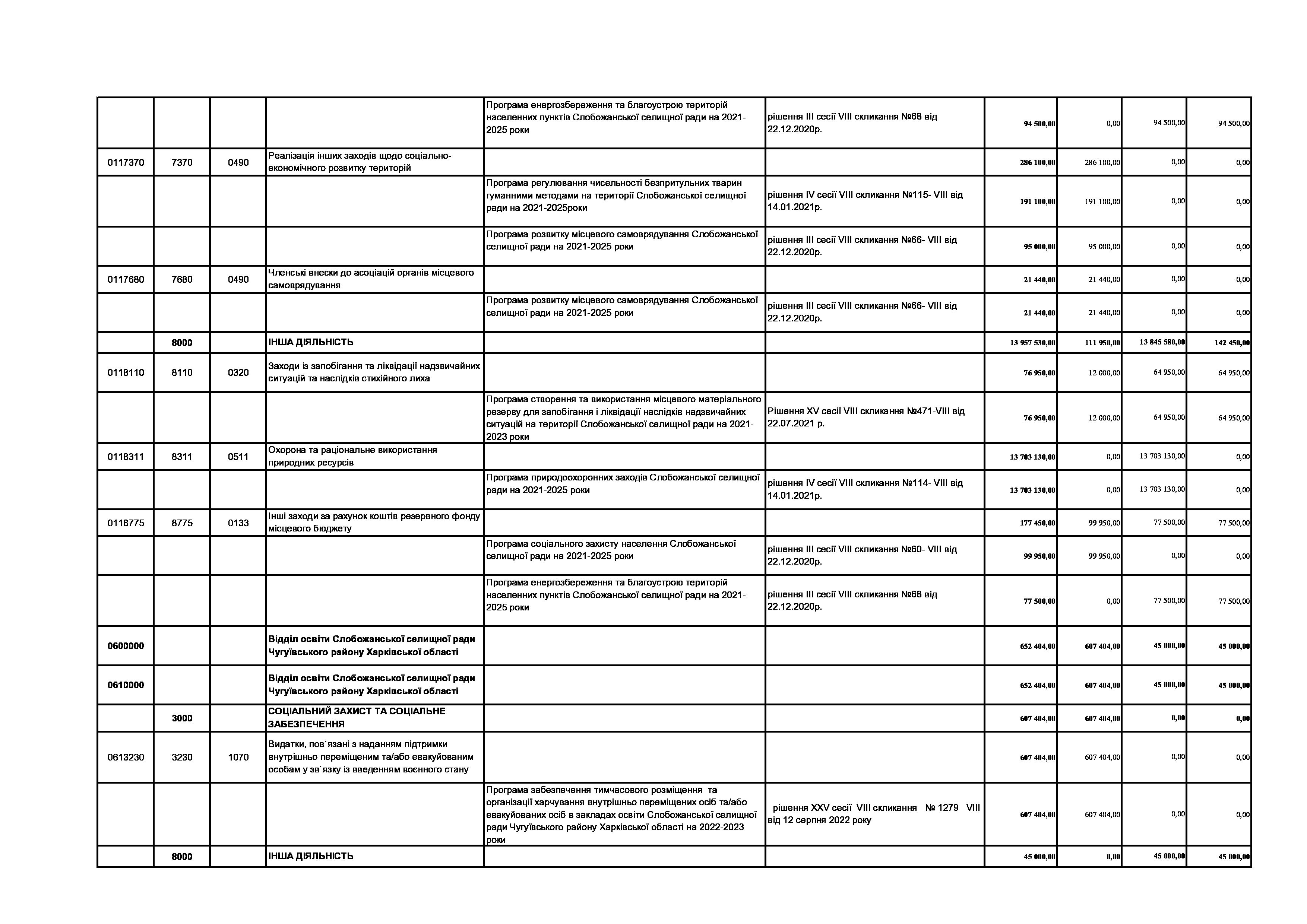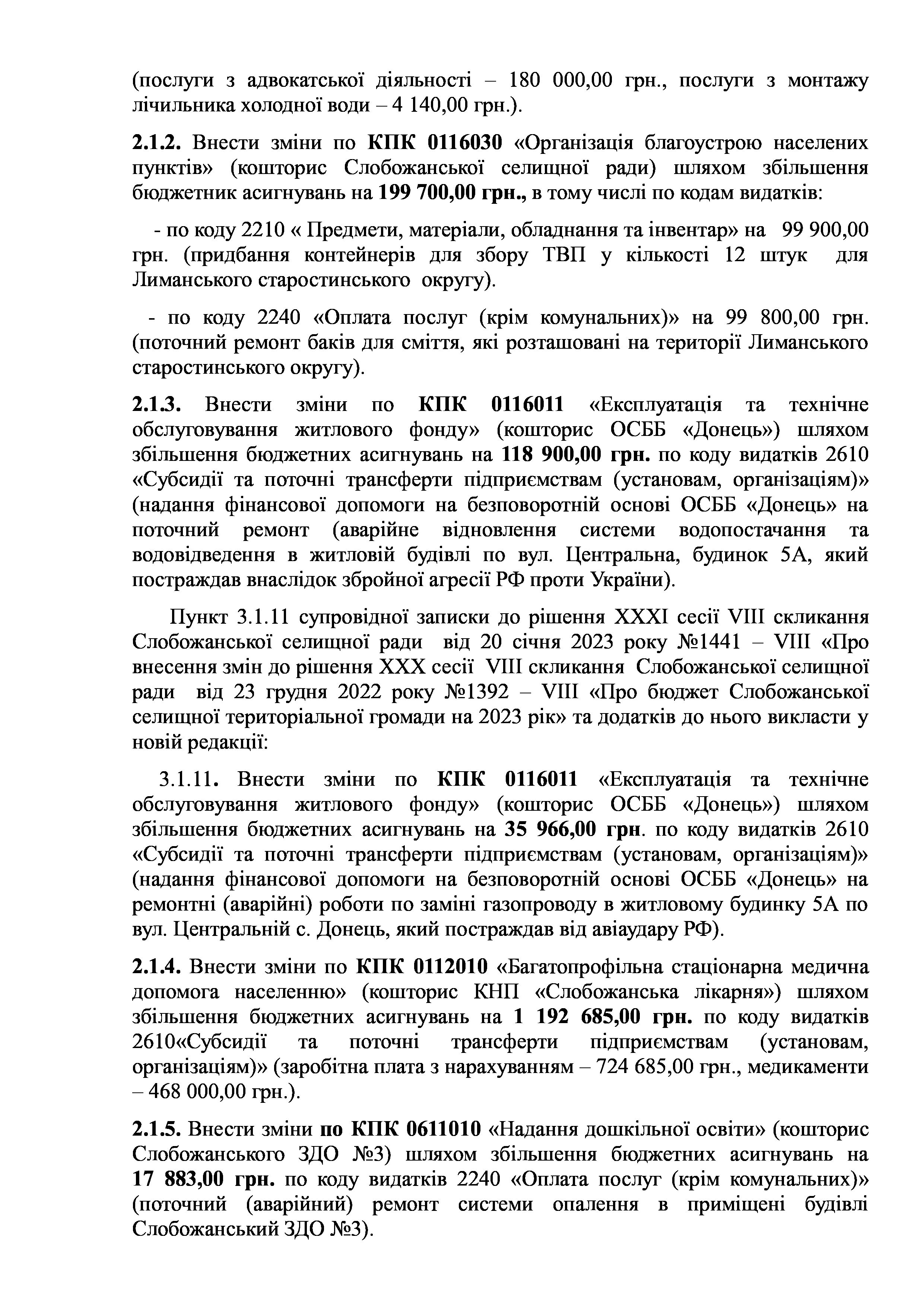 Рішення сесії №1476-VIII Про внесення змін та доповнень до Заходів на 2023 рік до Програми енергозбереження та благоустрою територій населених пунктів Слобожанської селищної ради на 2021-2025 роки.