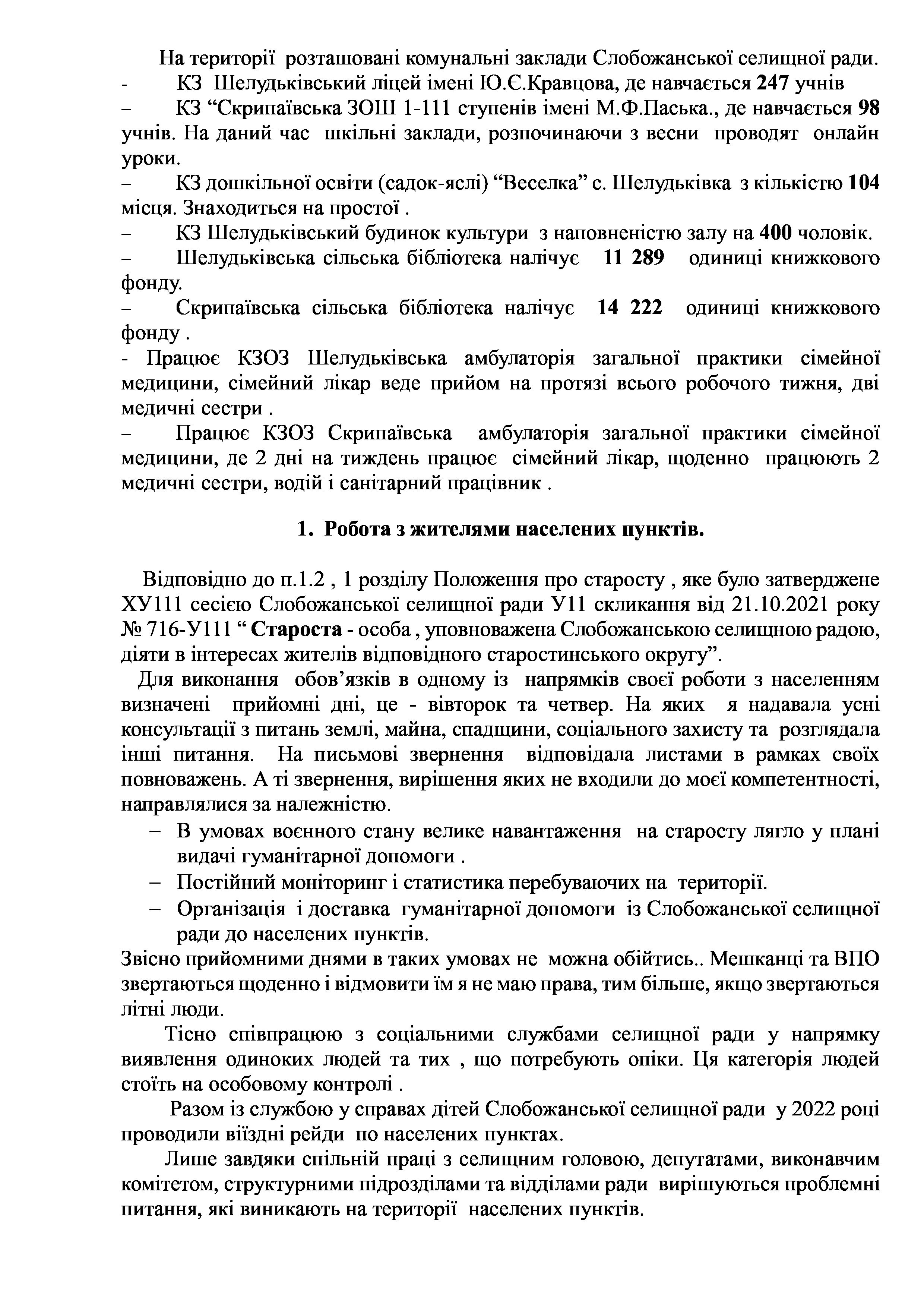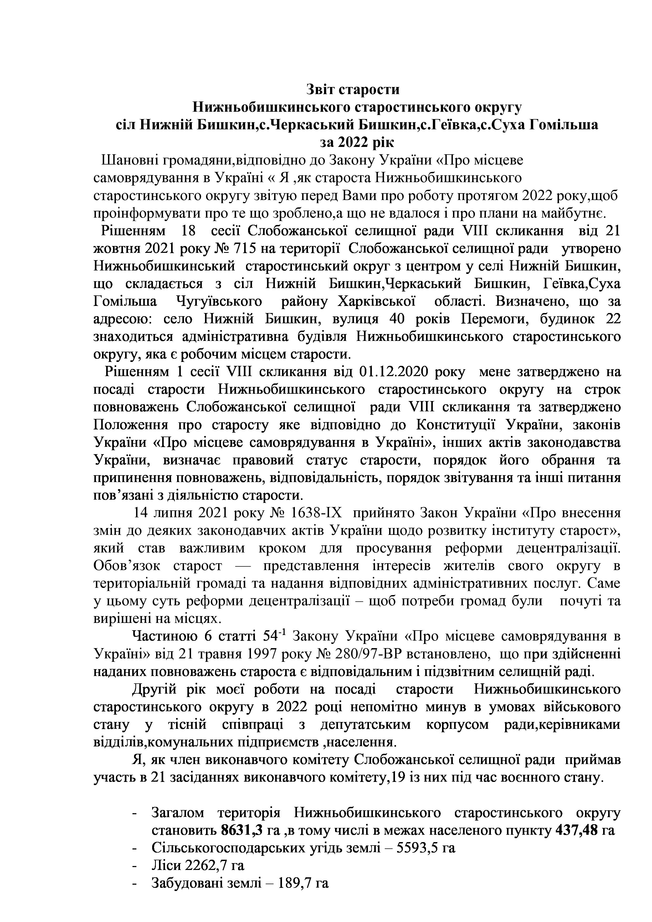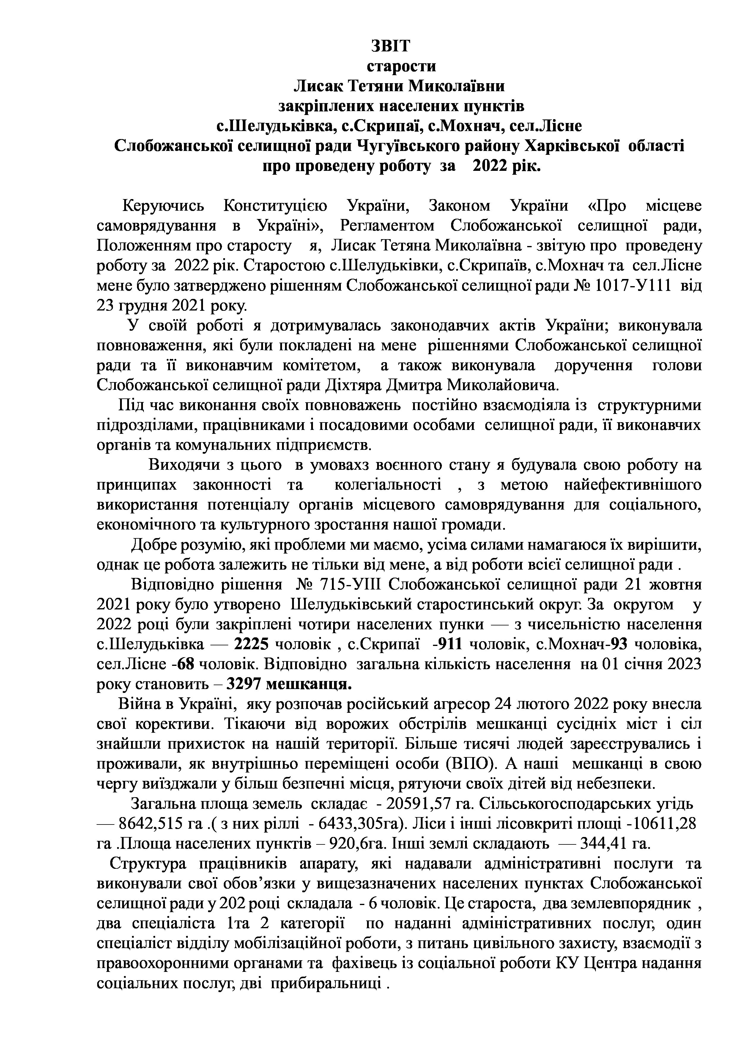 Рішення сесії №1478-VIII Про Звіт старости Слобожанської селищної територіальної громади Тетяни ЛИСАК.