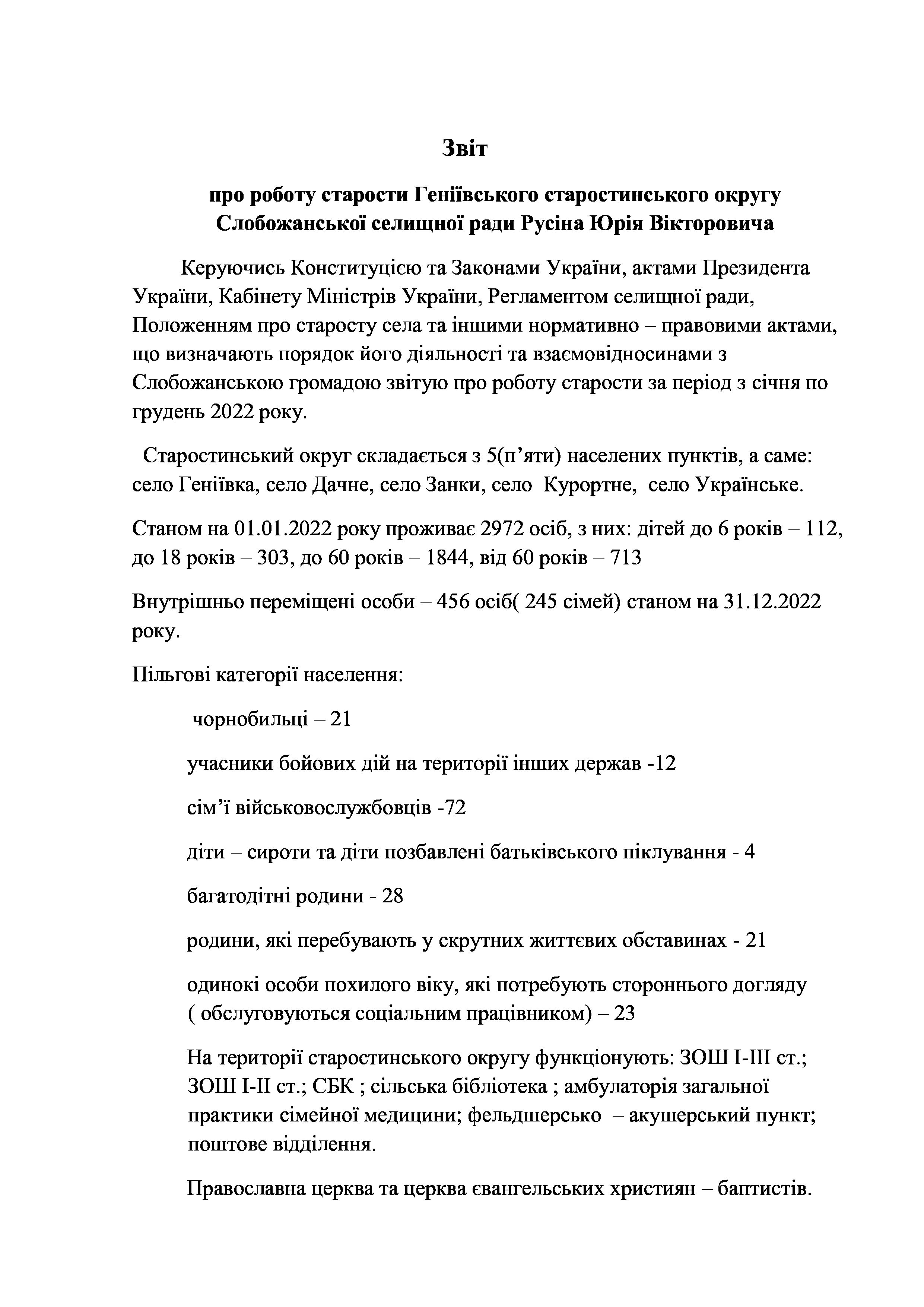Рішення сесії №1479-VIII Про Звіт старости Слобожанської селищної територіальної громади Юрія РУСІНА.