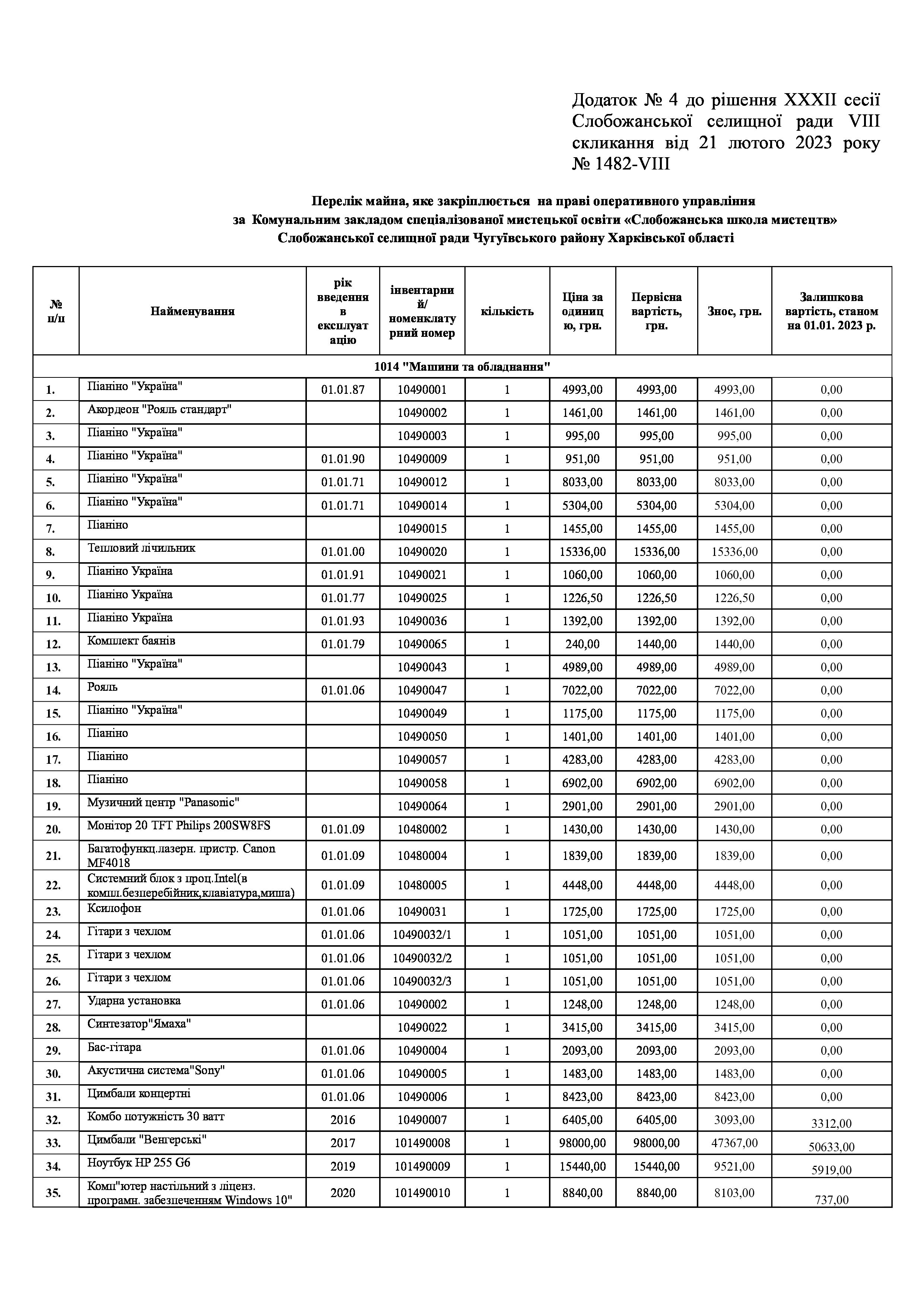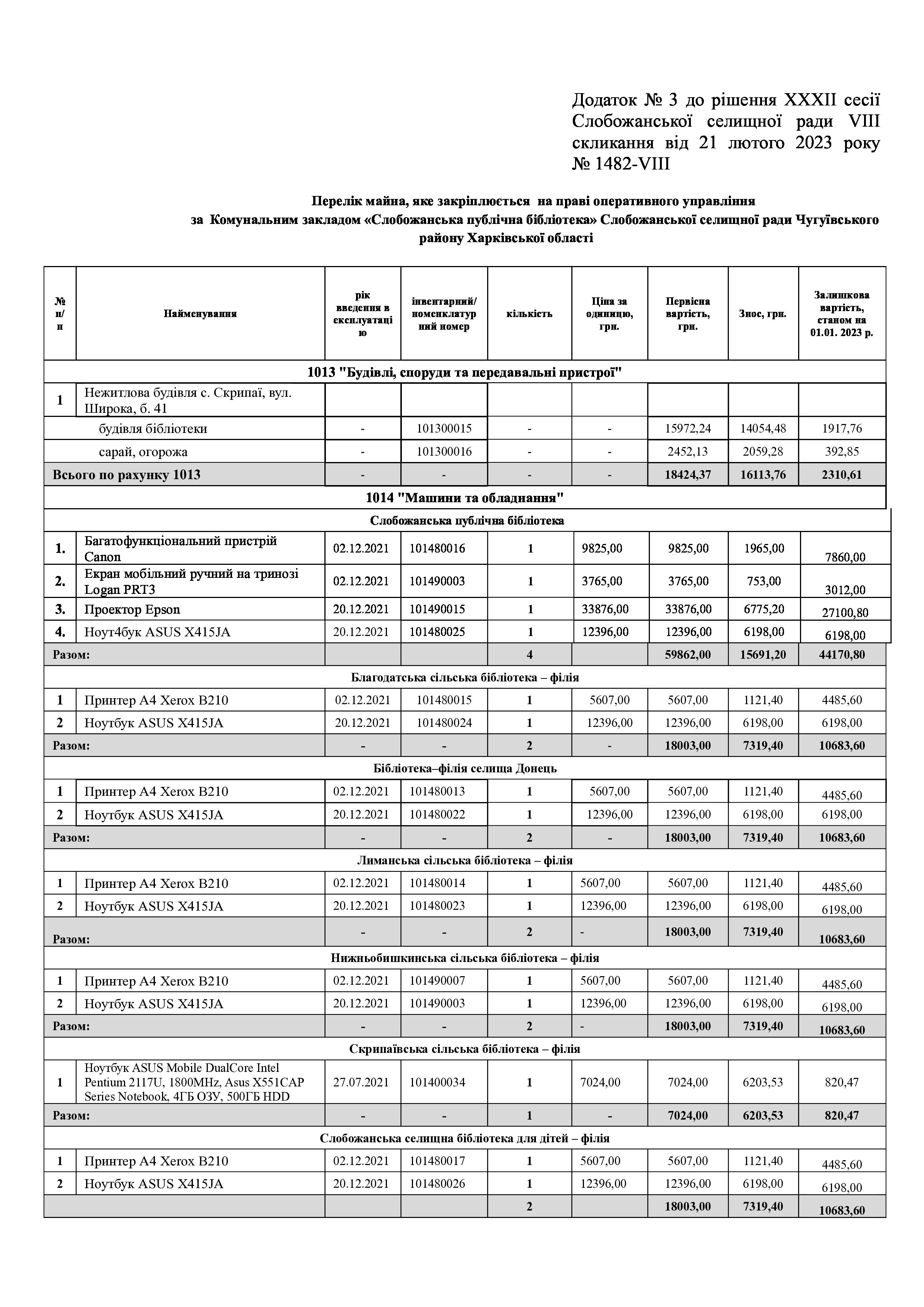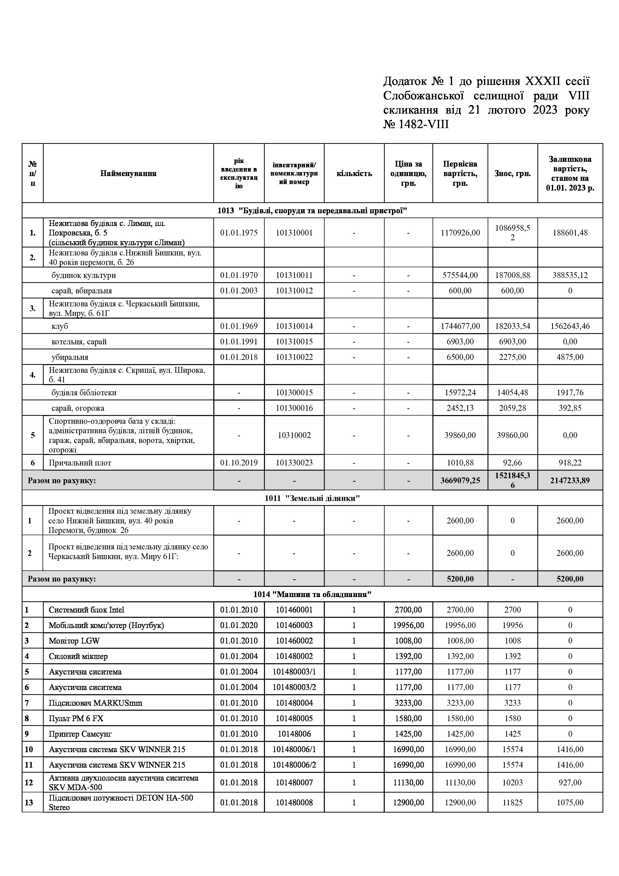 Рішення сесії №1483-VIII Про внесення змін до рішення ХХХІ сесії Слобожанської селищної ради VIII скликання «Про затвердження акту приймання-передачі майна» від 20.01.2023 року №1468 – VIII.