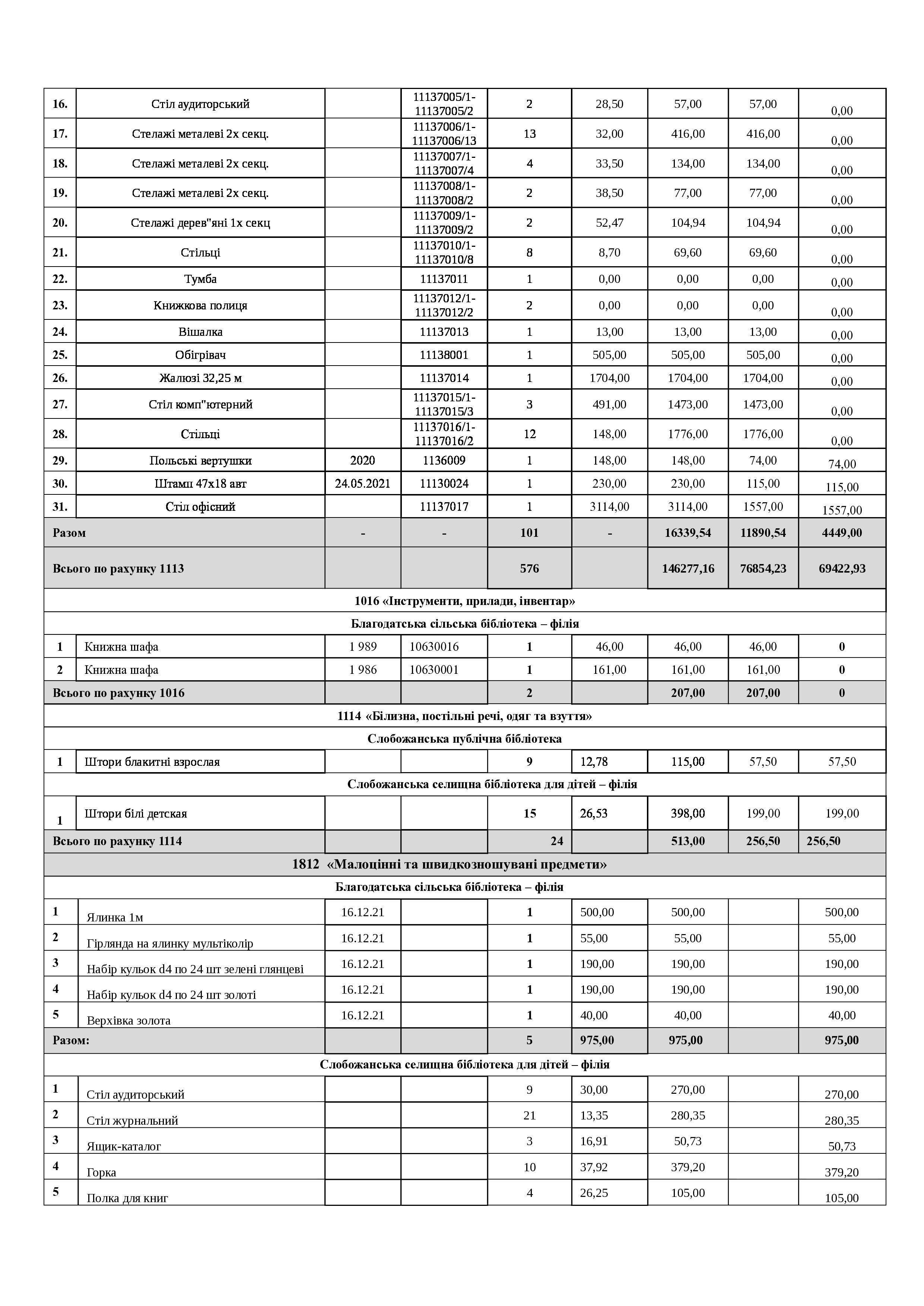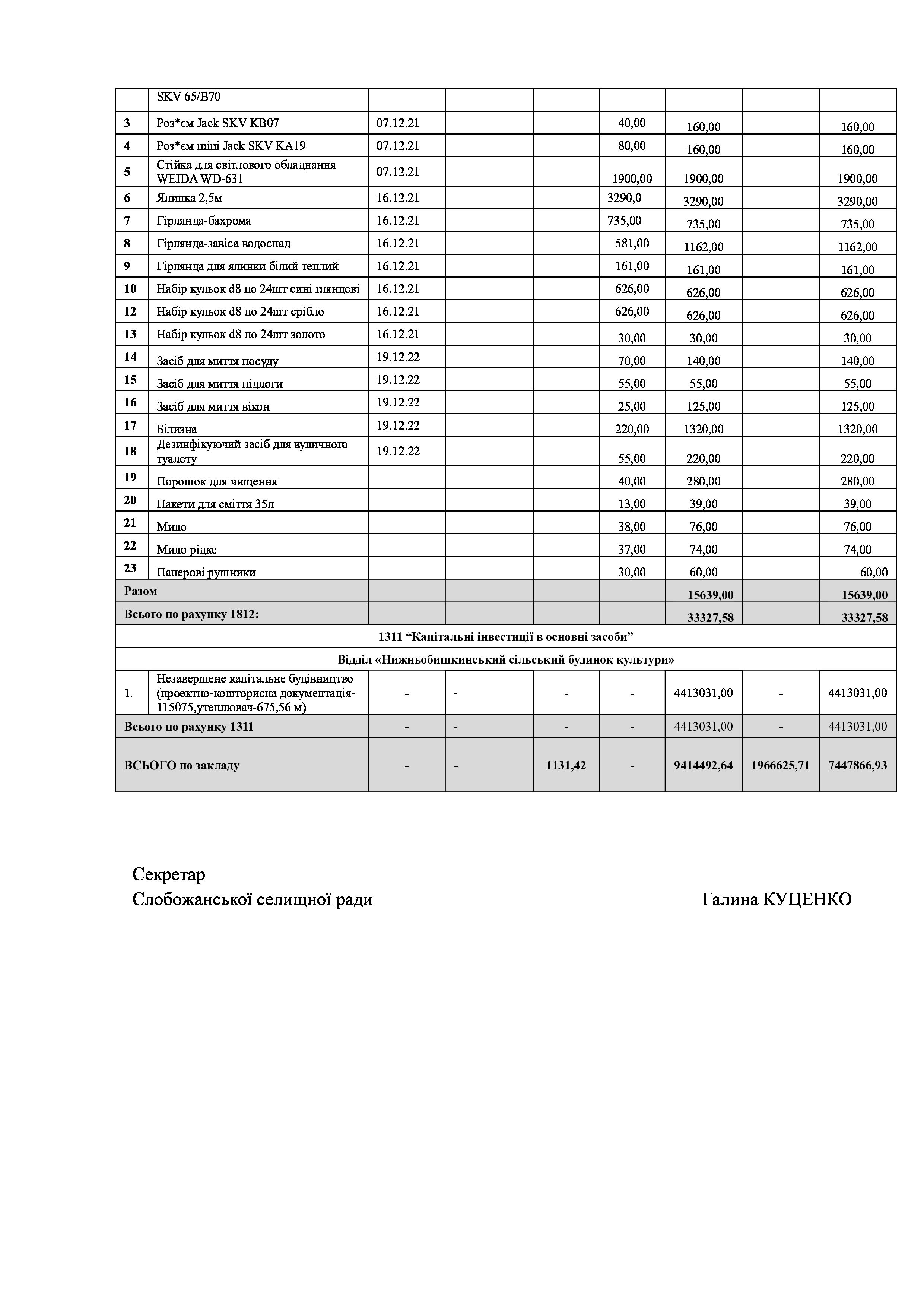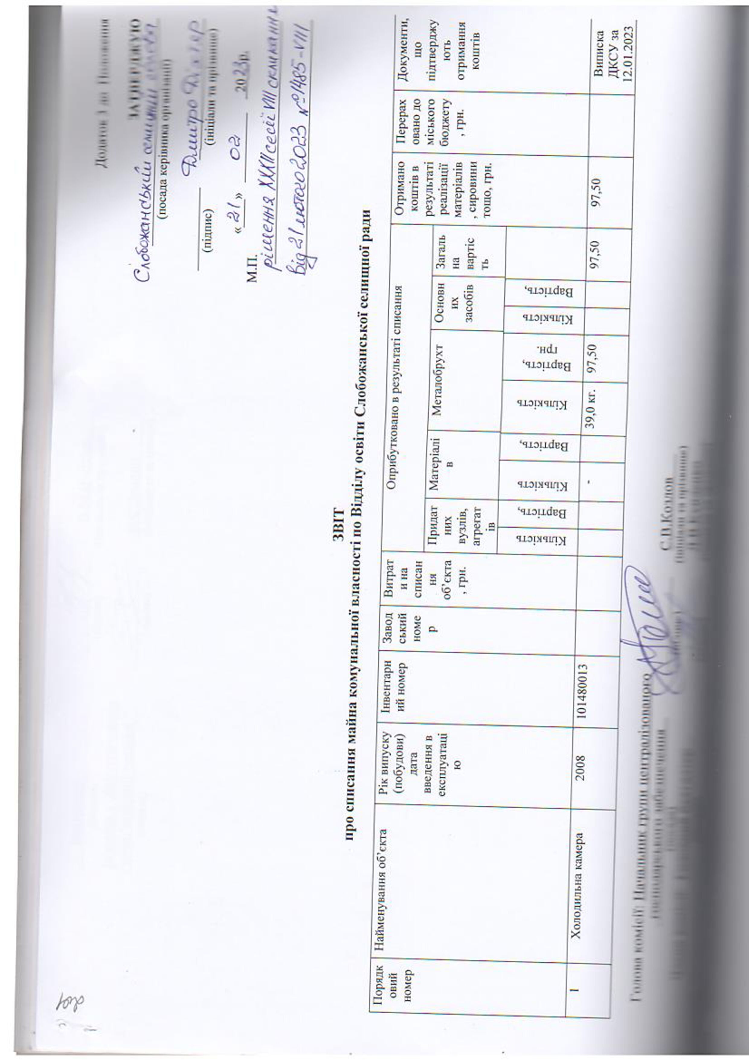 Рішення сесії №1485-VIII Про затвердження звіту про списання майна комунальної власності Слобожанської селищної територіальної громади.