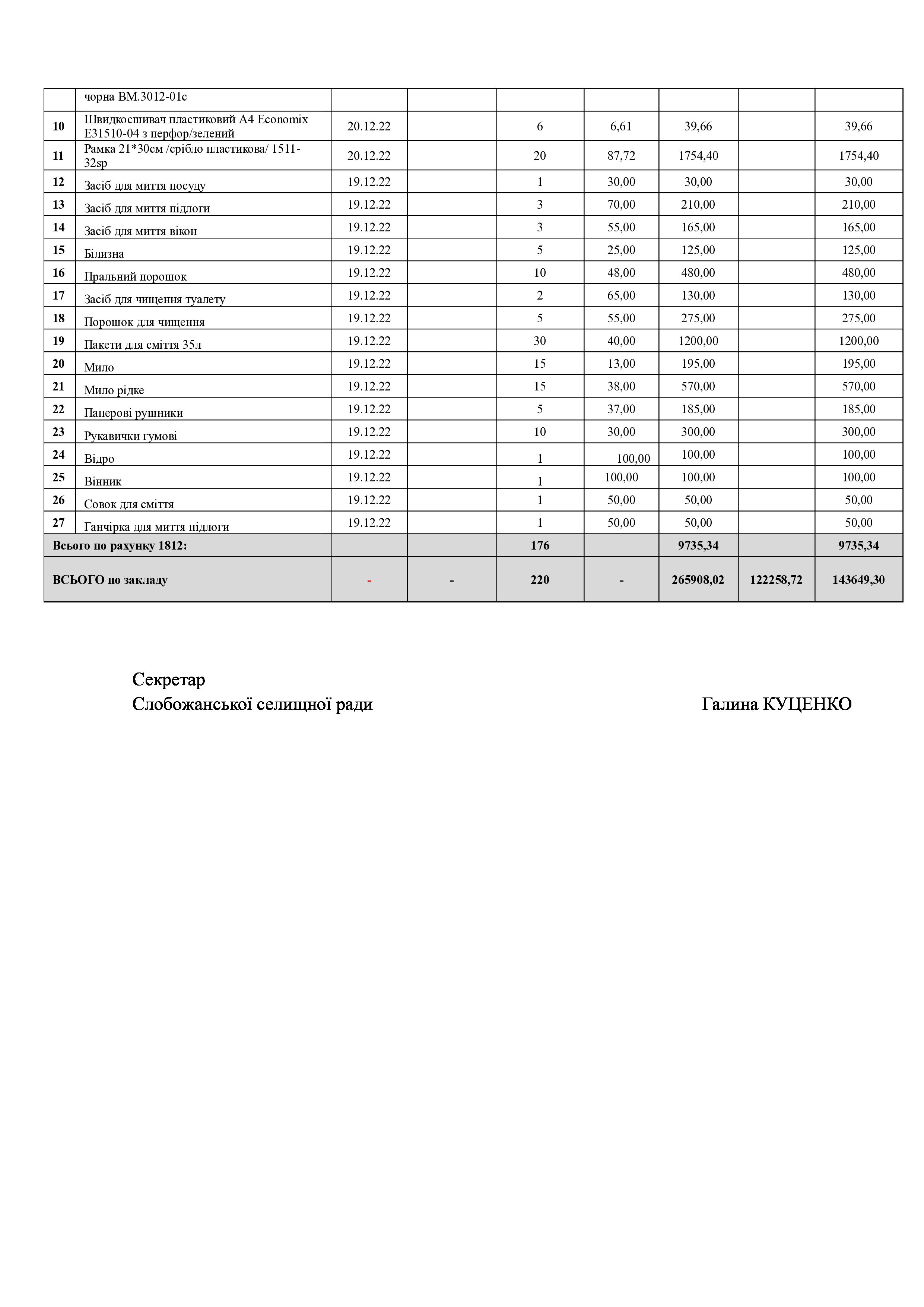Рішення сесії №1484-VIII Про внесення змін до рішення XIX сесії Слобожанської селищної ради VIII скликання «Про затвердження Переліку об’єктів комунальної власності Слобожанської селищної територіальної громади» від 25.11.2021 №828-VIII.