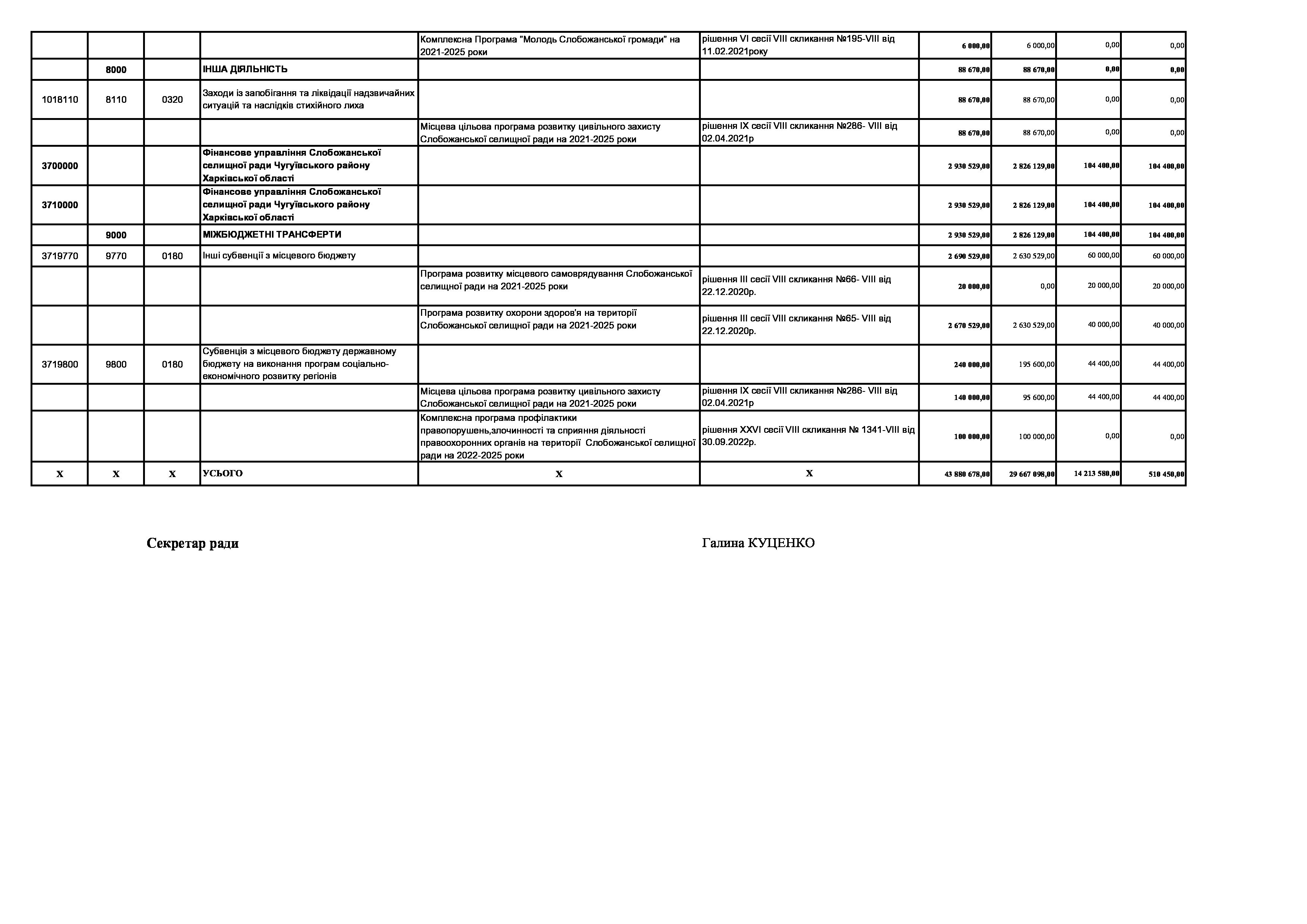 Рішення сесії №1501-VIII Про внесення змін до місцевої цільової Програми розвитку цивільного захисту Слобожанської селищної ради на 2021-2025 роки.