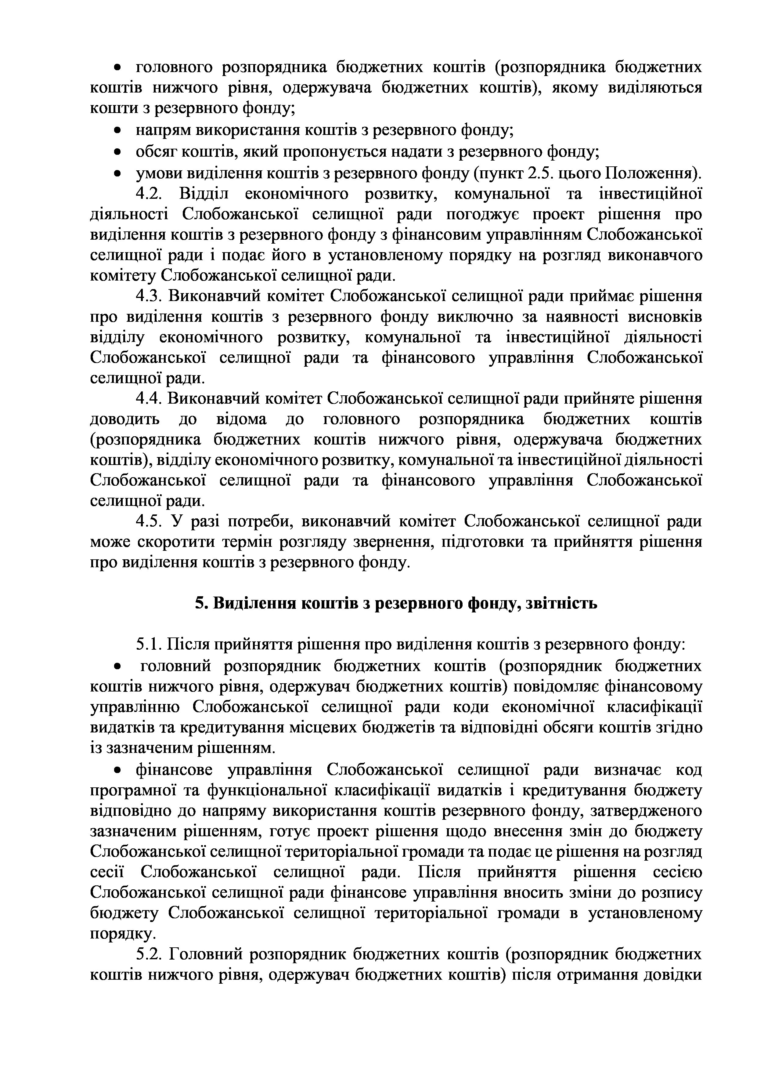 Рішення сесії №1498-VIII Про затвердження Положення про резервний фонд бюджету Слобожанської селищної територіальної громади.