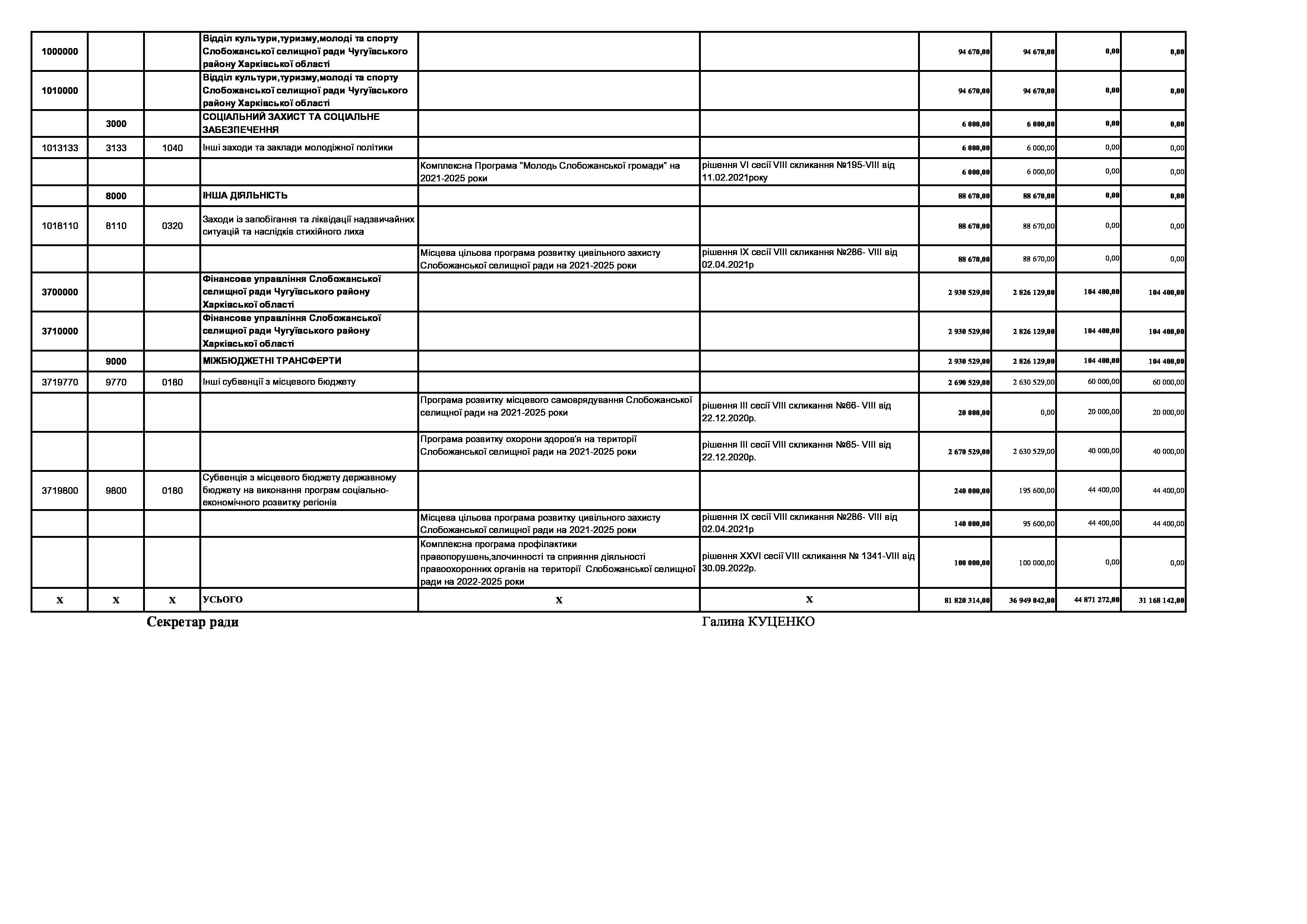Рішення сесії №1512-VIII Про внесення змін до Заходів на 2023 рік до Програми забезпечення тимчасового розміщення та організації харчування внутрішньо переміщених осіб та/або евакуйованих осіб, які перемістилися на територію Слобожанської селищної територіальної громади після 24.02.2022 р., в закладах освіти Слобожанської селищної ради Чугуївського району Харківської області на 2022 – 2023 роки.
