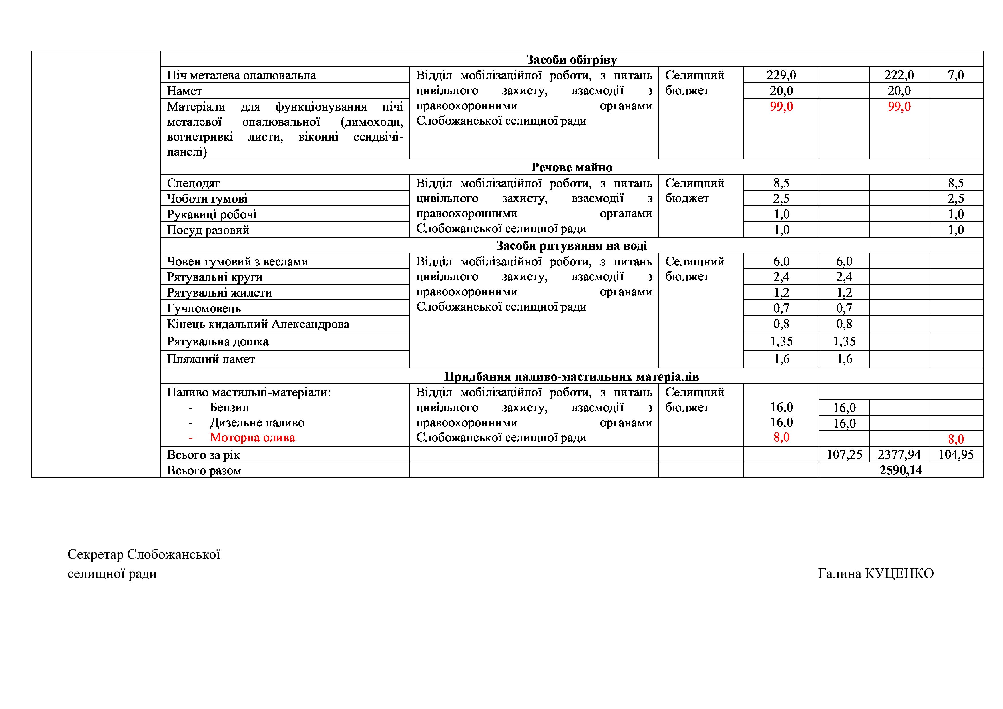 Рішення сесії №1515-VIII Про внесення змін до Програми створення та використання місцевого матеріального резерву для запобігання і ліквідації наслідків надзвичайних ситуацій на території Слобожанської селищної ради на 2021 – 2023 роки.