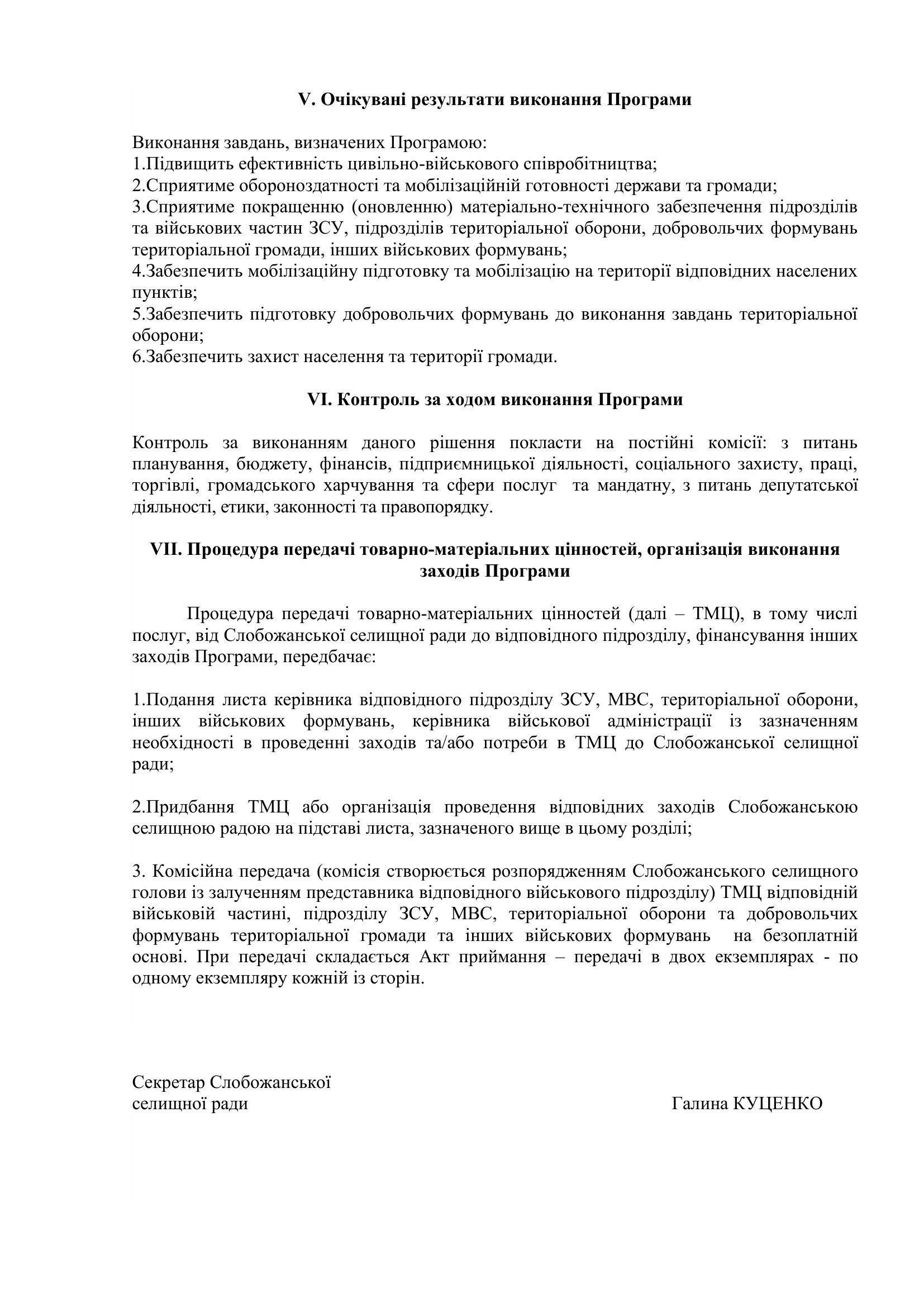 Рішення сесії №1516-VIII Про затвердження Програми підтримки підрозділів Збройних Сил України, Міністерства внутрішніх справ України, територіальної оборони, добровольчих та інших військових формувань Слобожанської селищної ради Чугуївського району Харківської області на 2023 – 2025 роки.