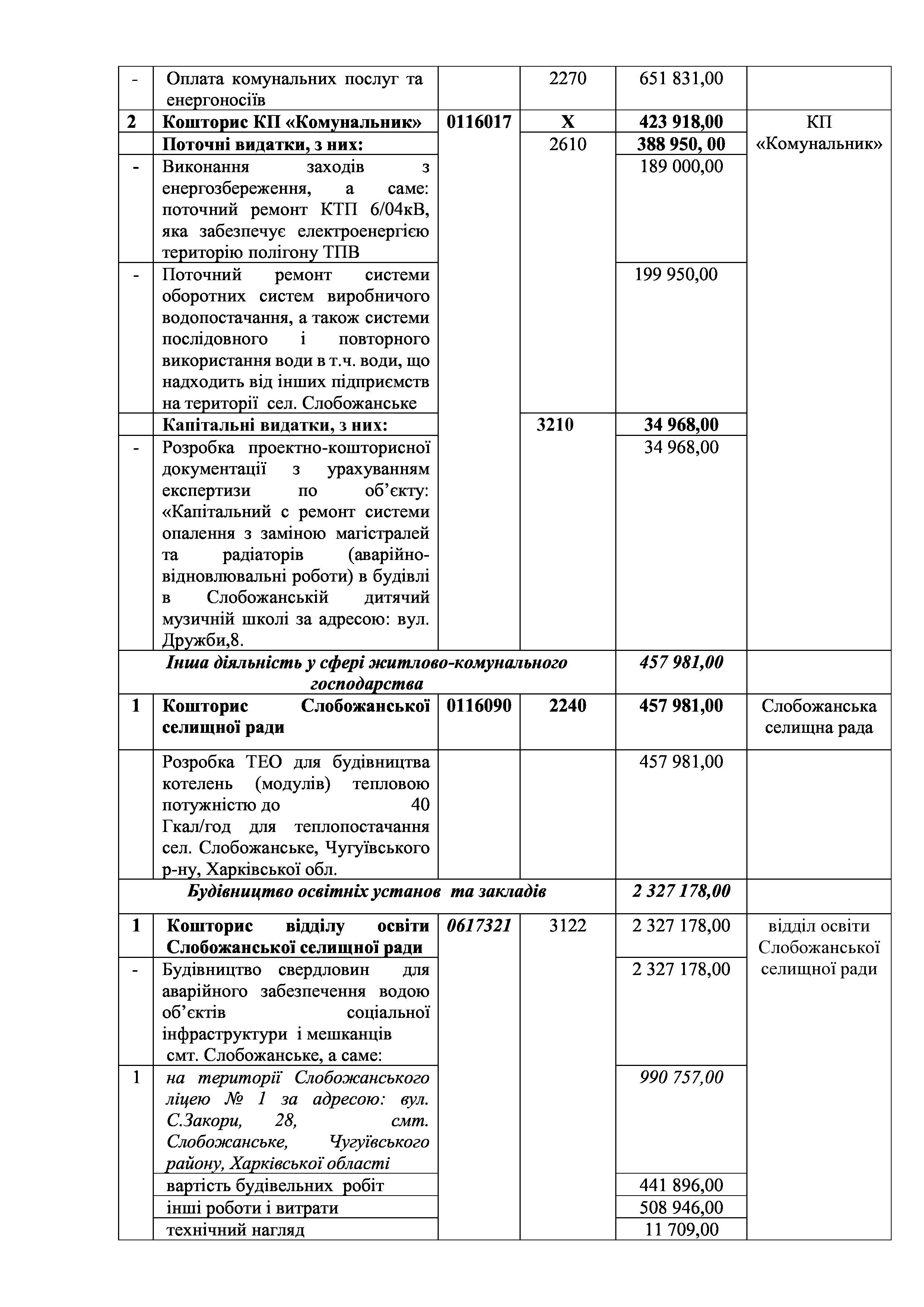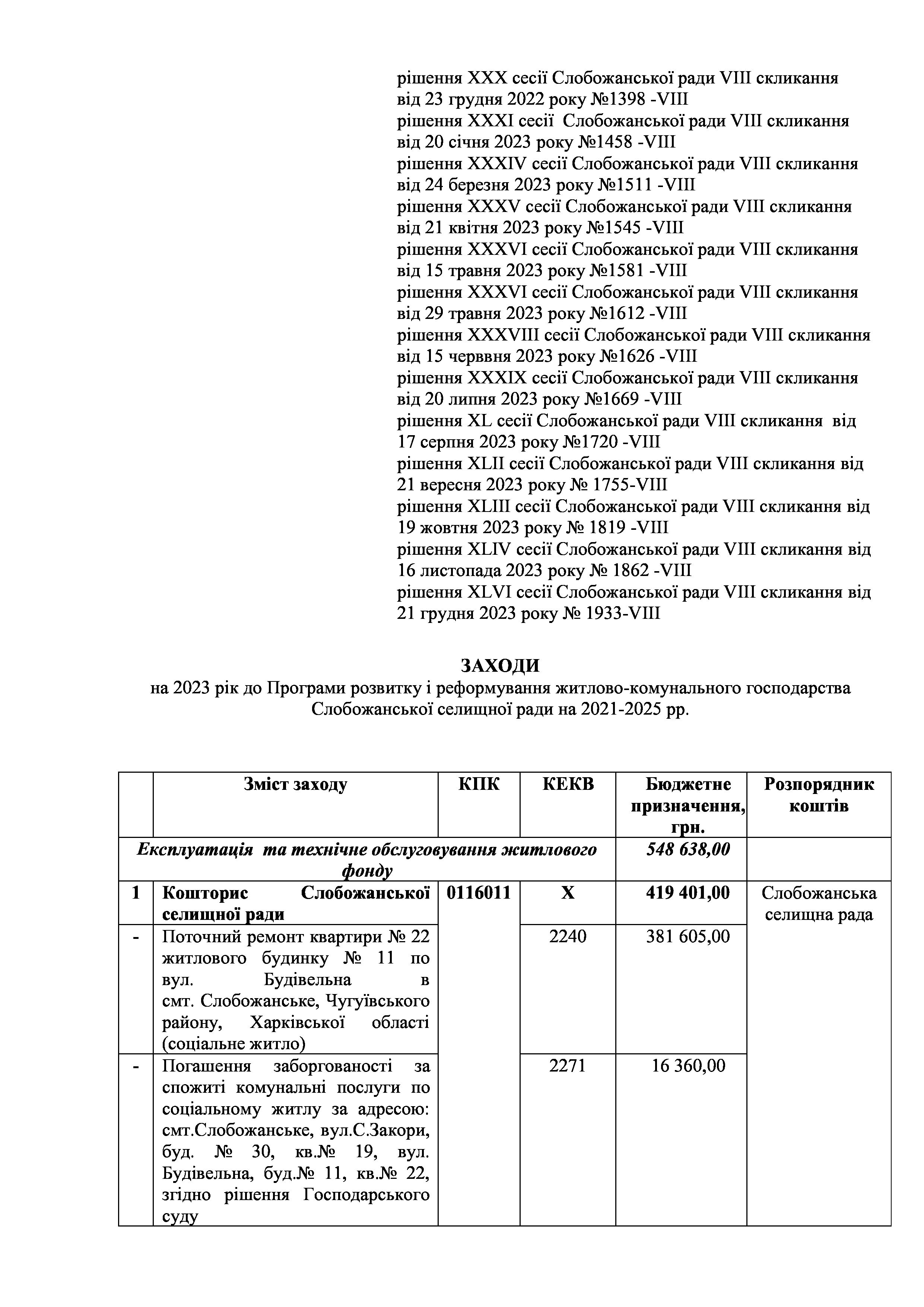 Рішенння сесії №1933-VIII Про внесення змін до Заходів на 2023 рік до Програми розвитку і реформування житлово-комунального господарства Слобожанської селищної ради на 2021-2025 роки.