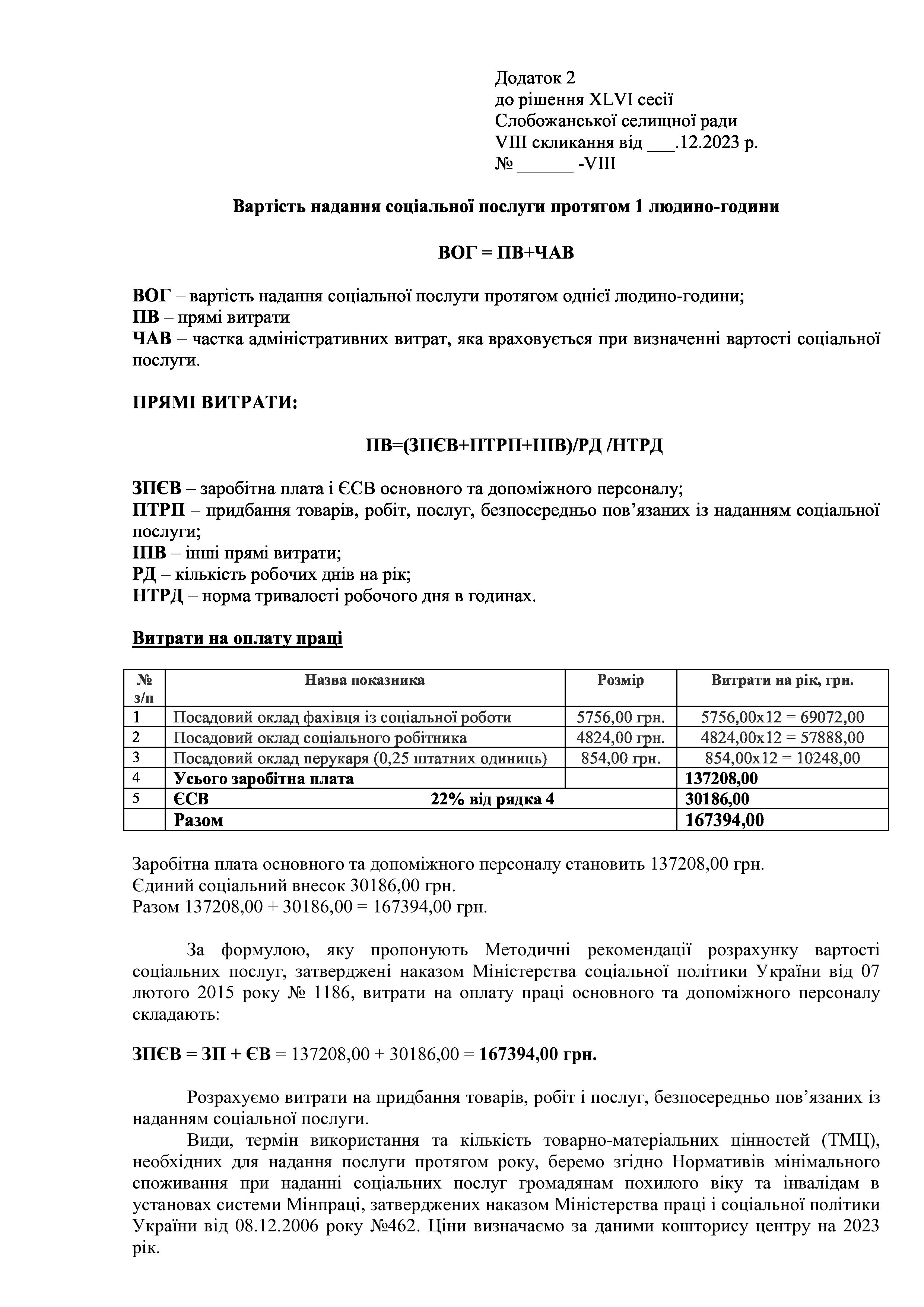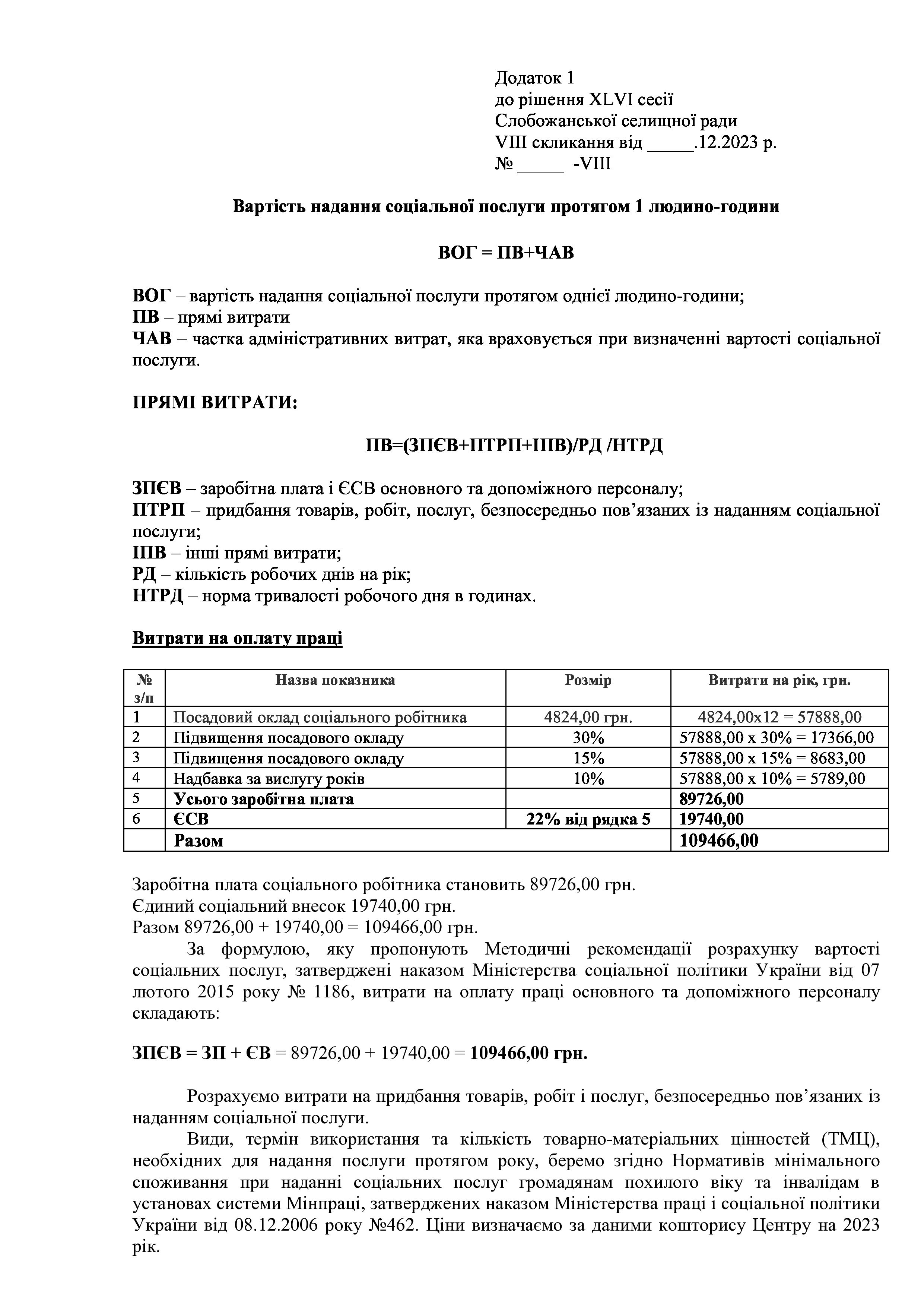 Рішенння сесії №1944-VIII Про затвердження тарифів на платні соціальні послуги, які надаються Комунальною установою «Центр надання соціальних послуг» Слобожанської селищної ради Чугуївського району Харківської області на 2024 рік.