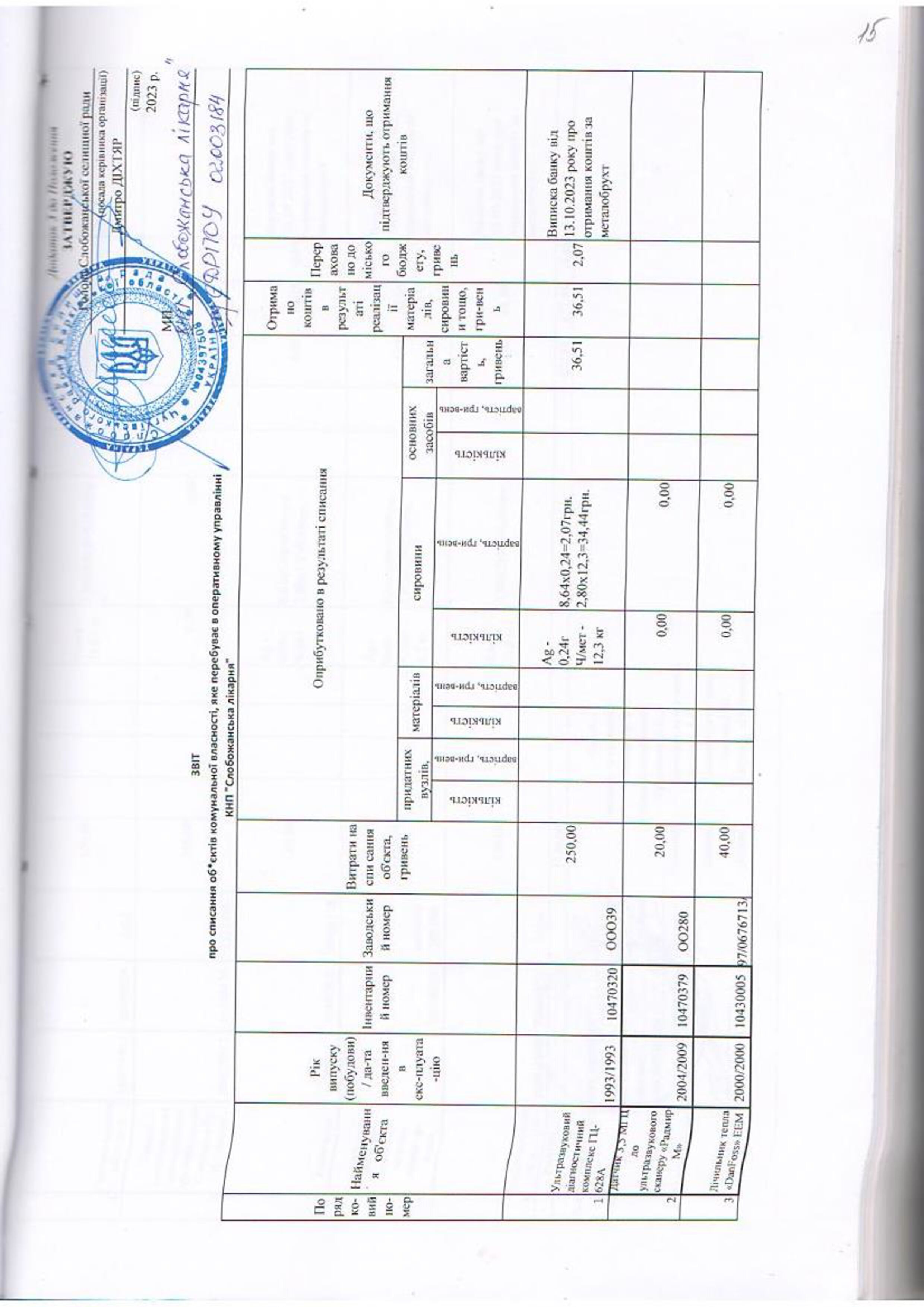 Рішенння сесії №1949-VIII Про затвердження звіту про списання майна комунальної власності Слобожанської селищної територіальної громади.