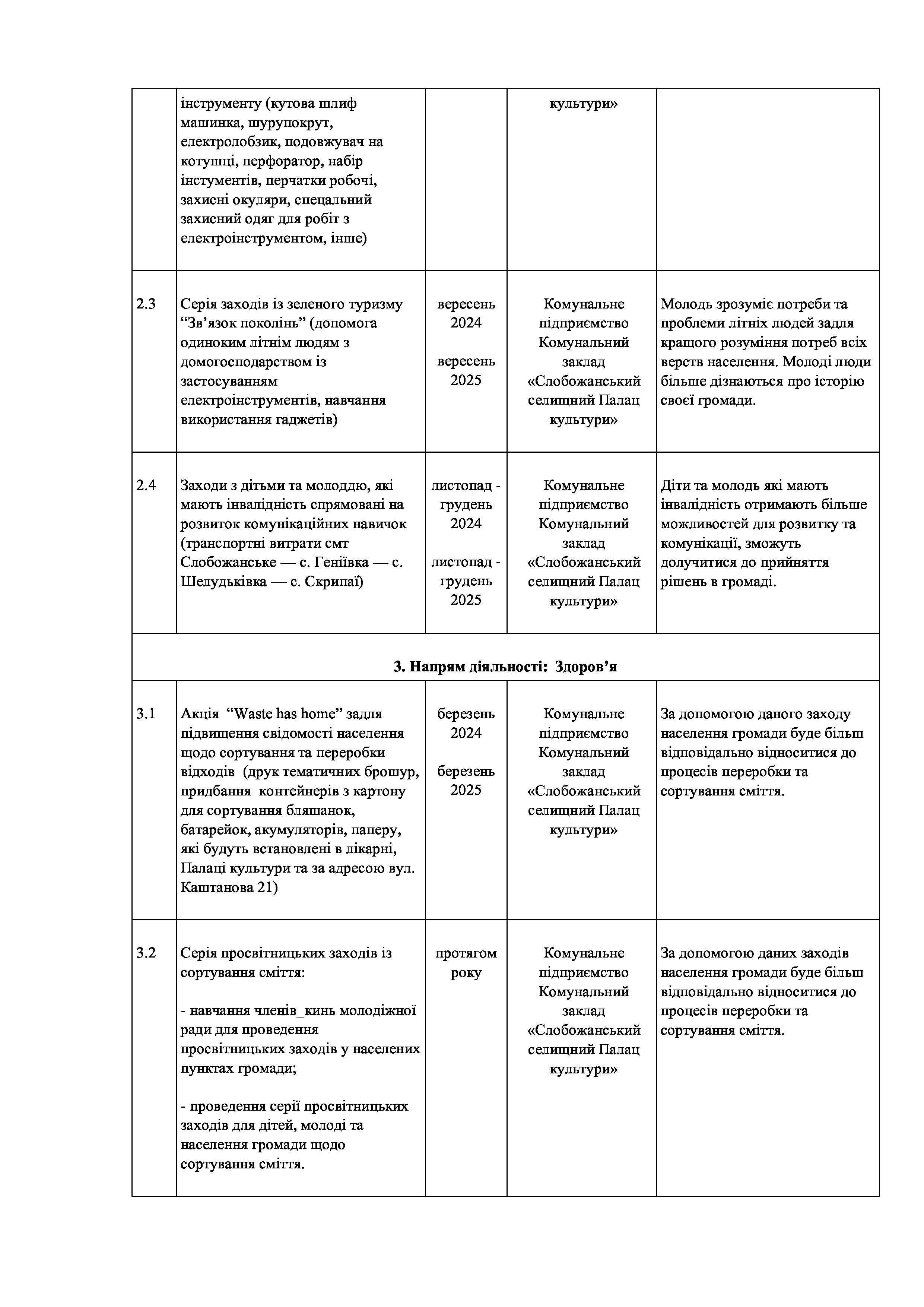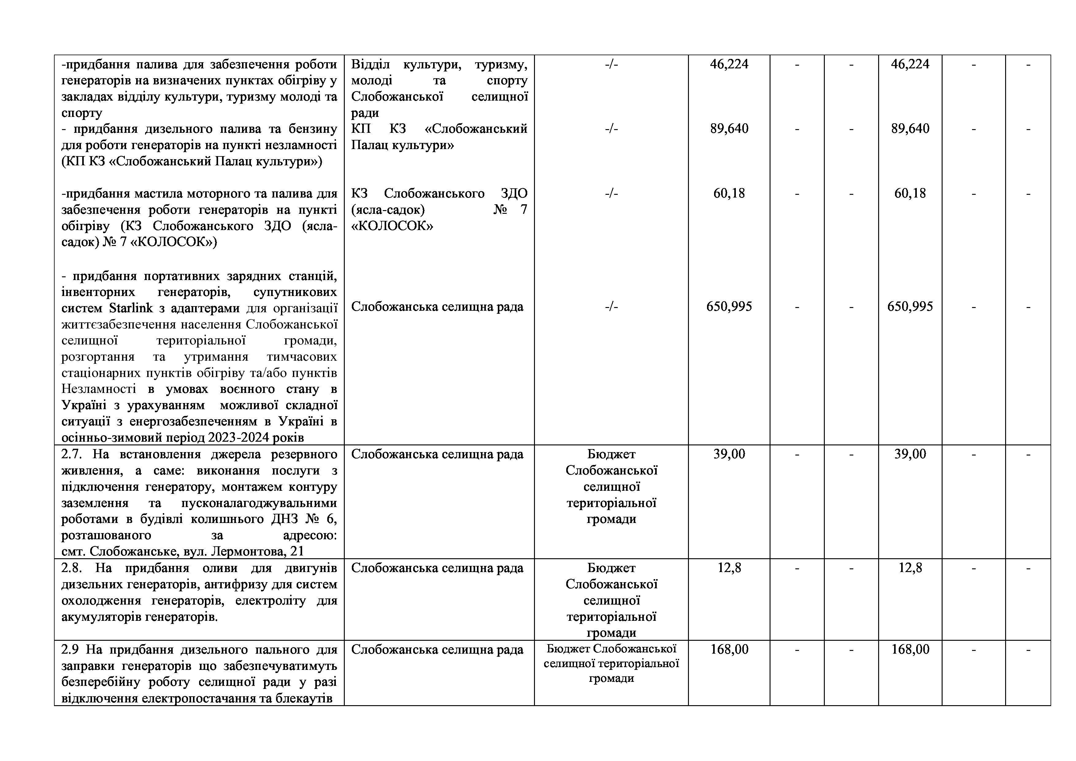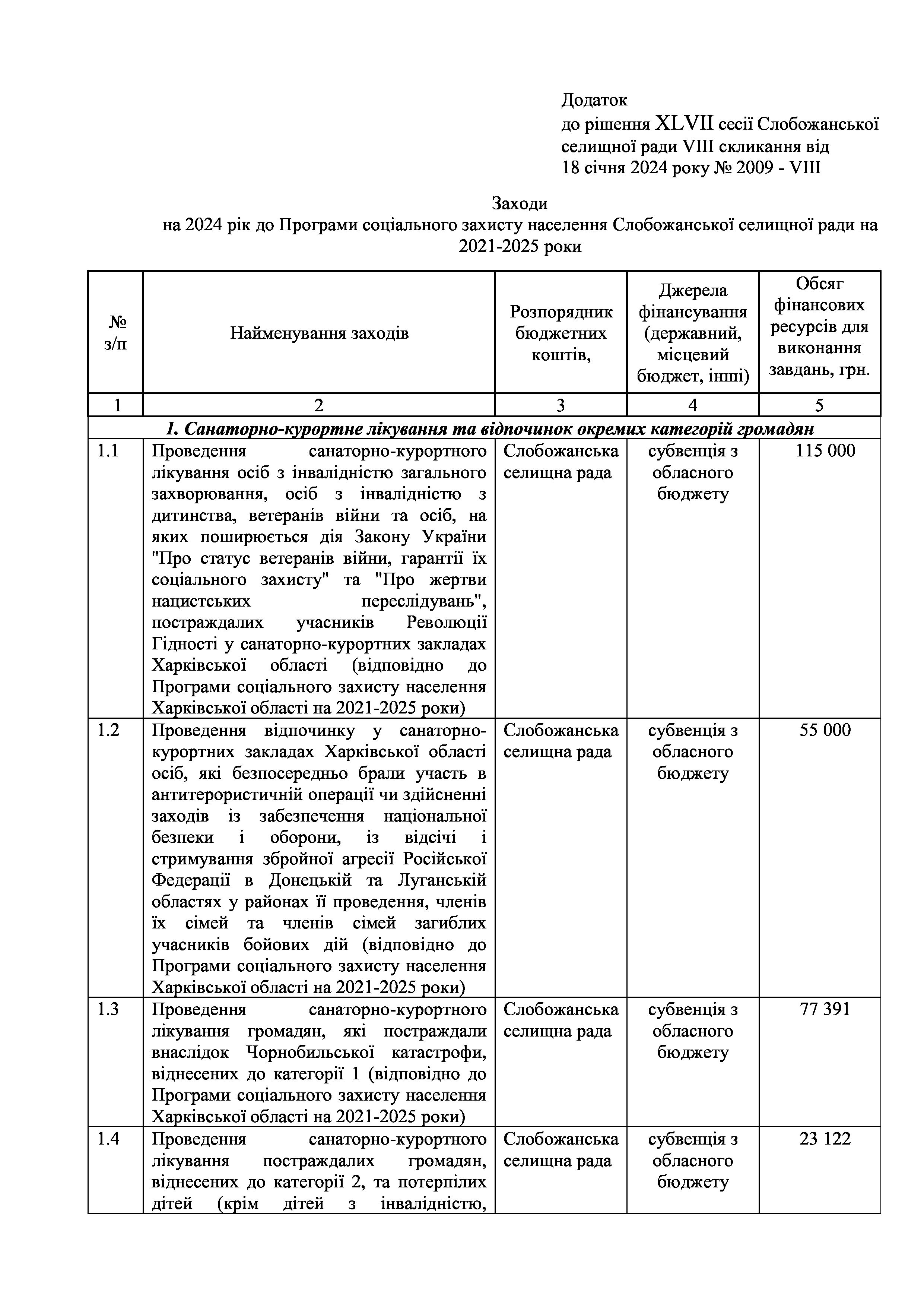 Рішення сесії №2009 Про внесення змін до Заходів на 2024 рік до Програми соціального захисту населення Слобожанської селищної ради на 2021-2025 роки.