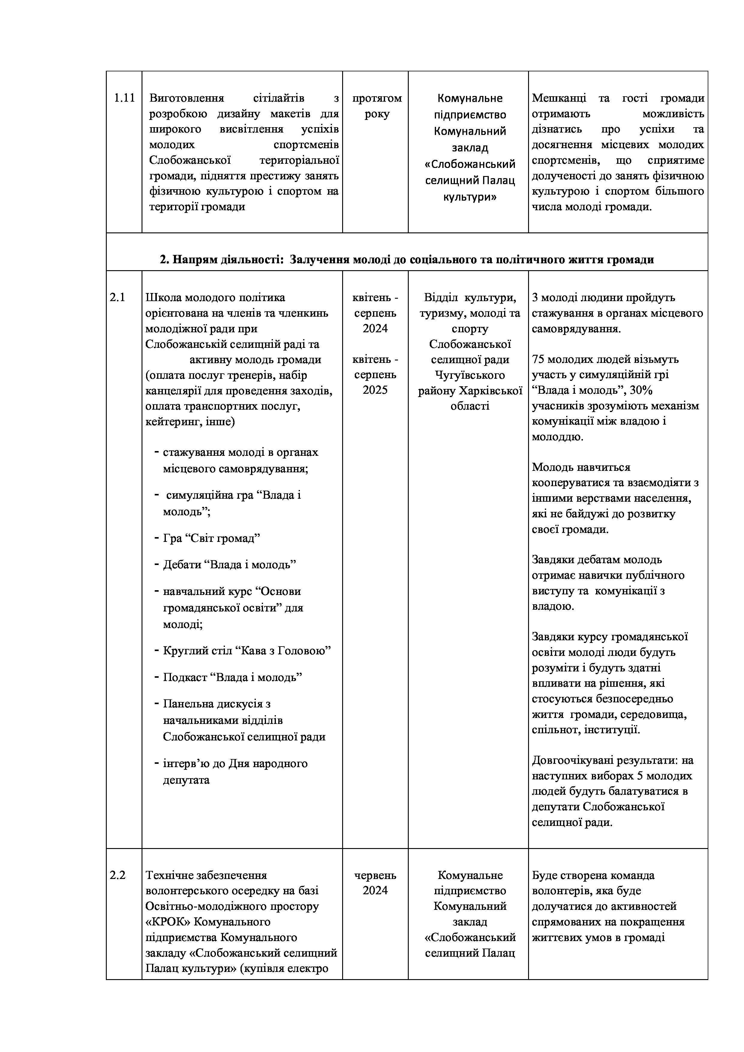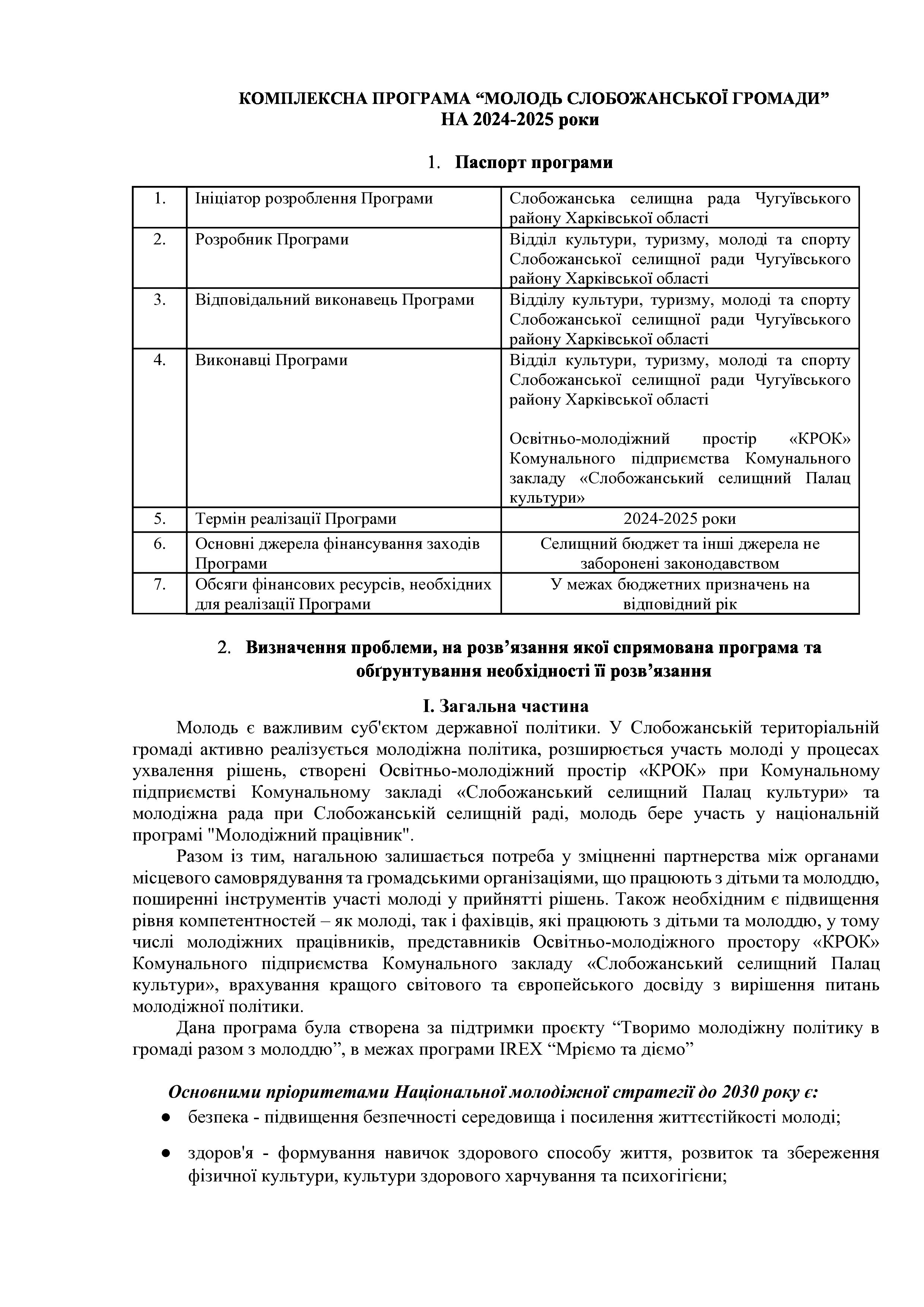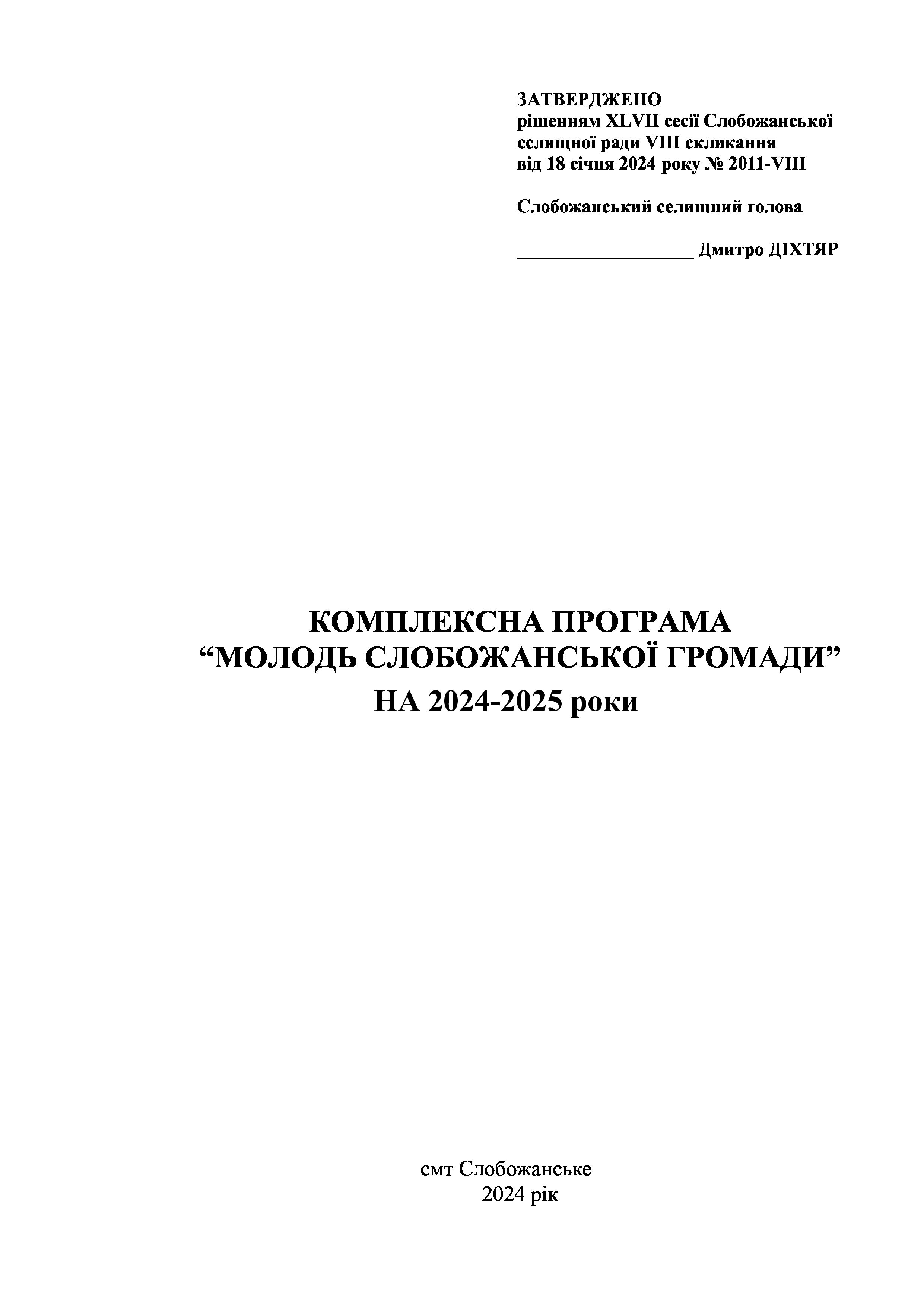 Рішення сесії №2011 Про внесення змін до комплексної Програми «Молодь Слобожанської громади» на 2024-2025 роки.