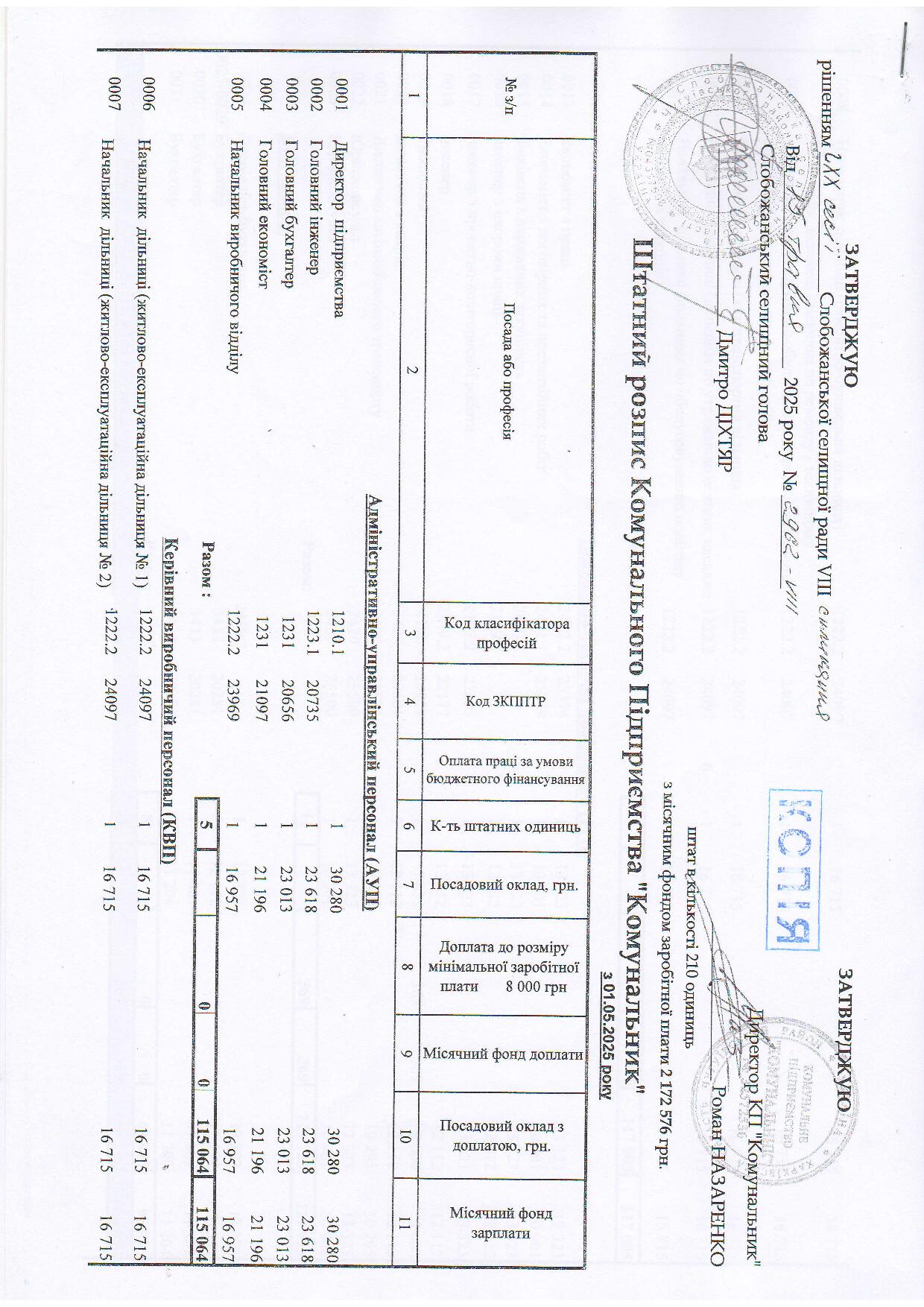 Текст рішення сесії №2962 Про затвердження штатного розпису комунального підприємства «Комунальник»