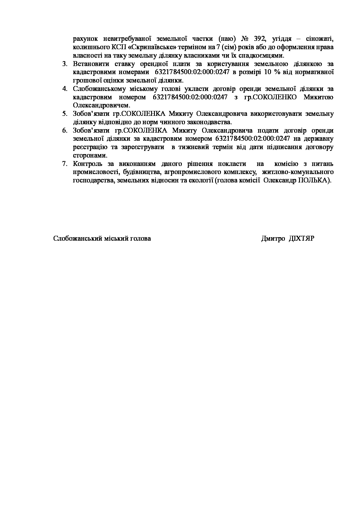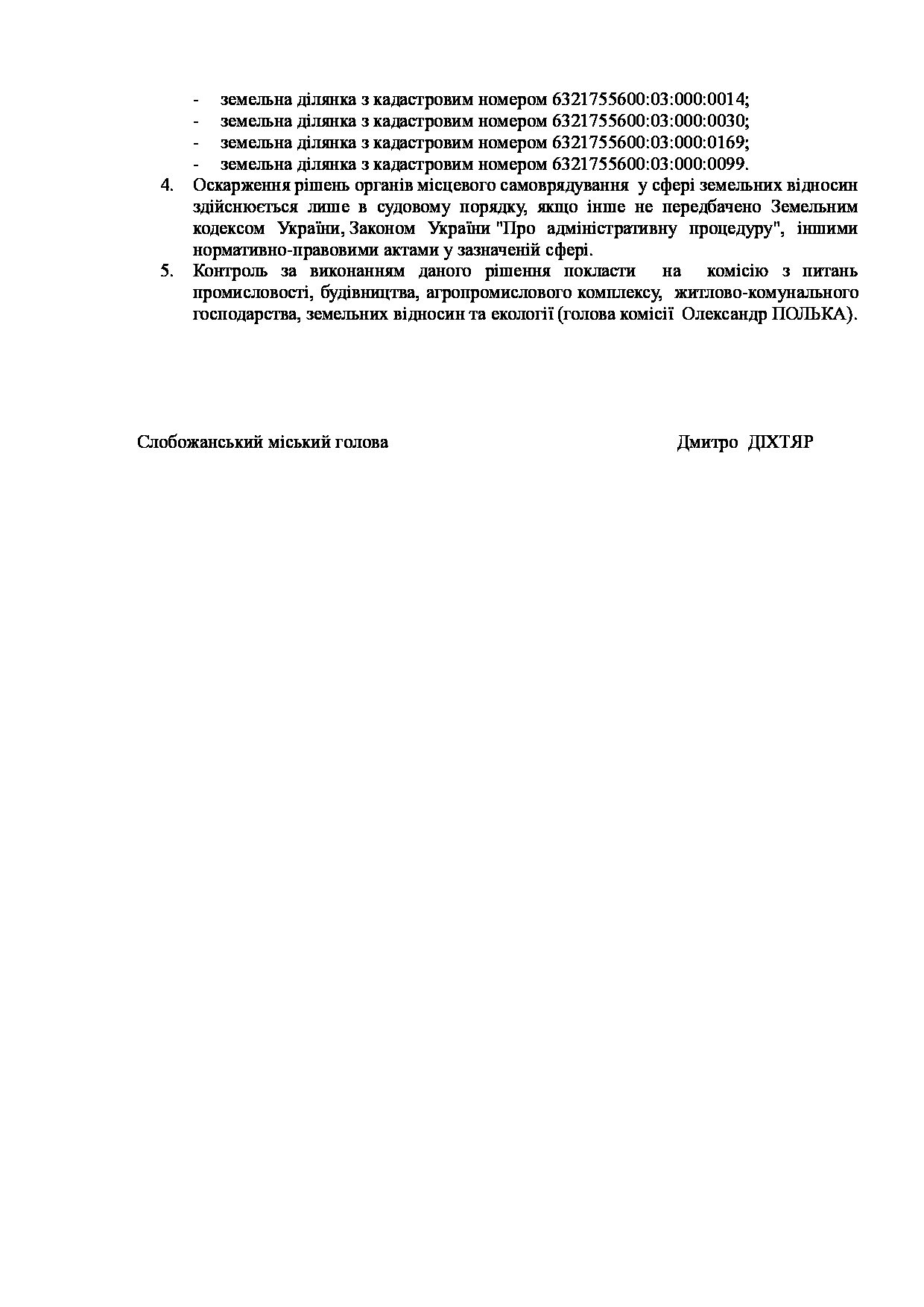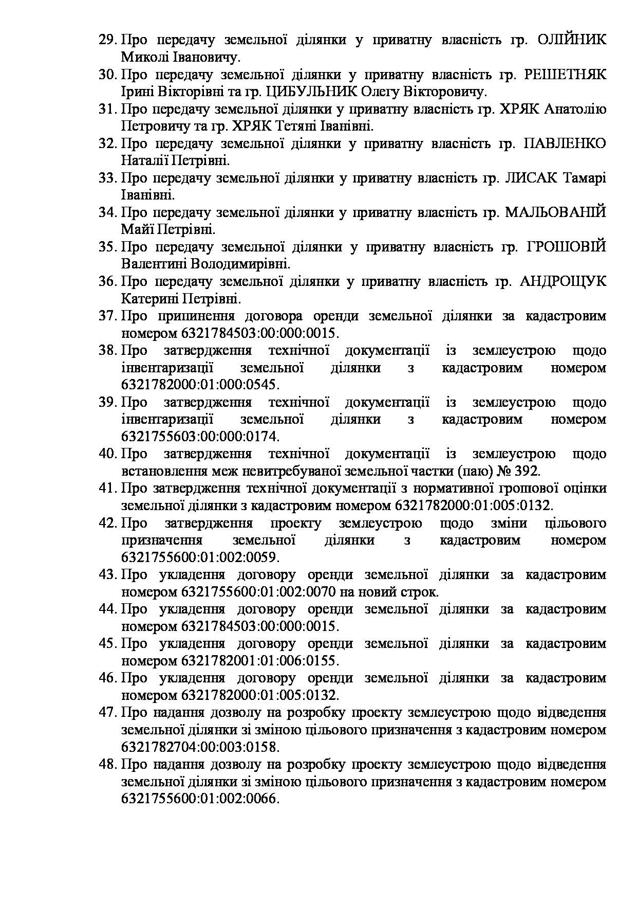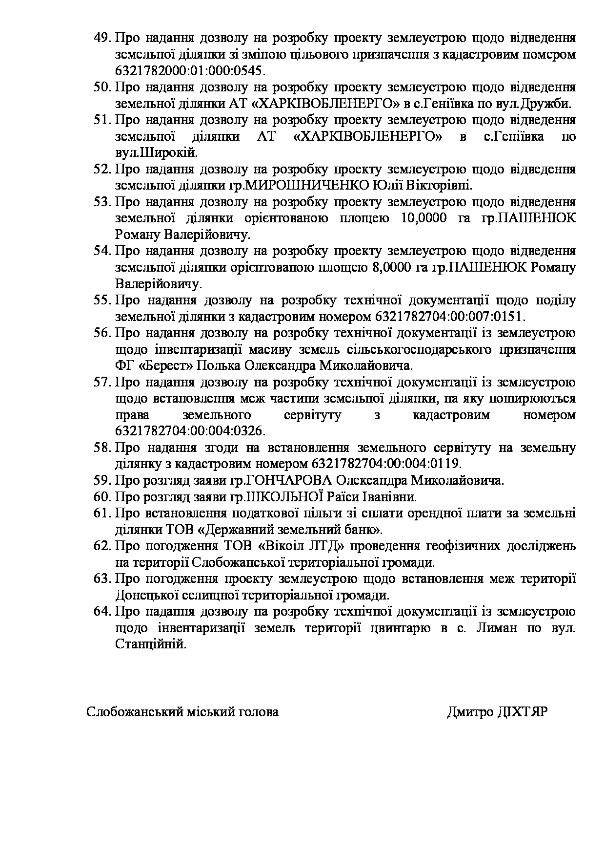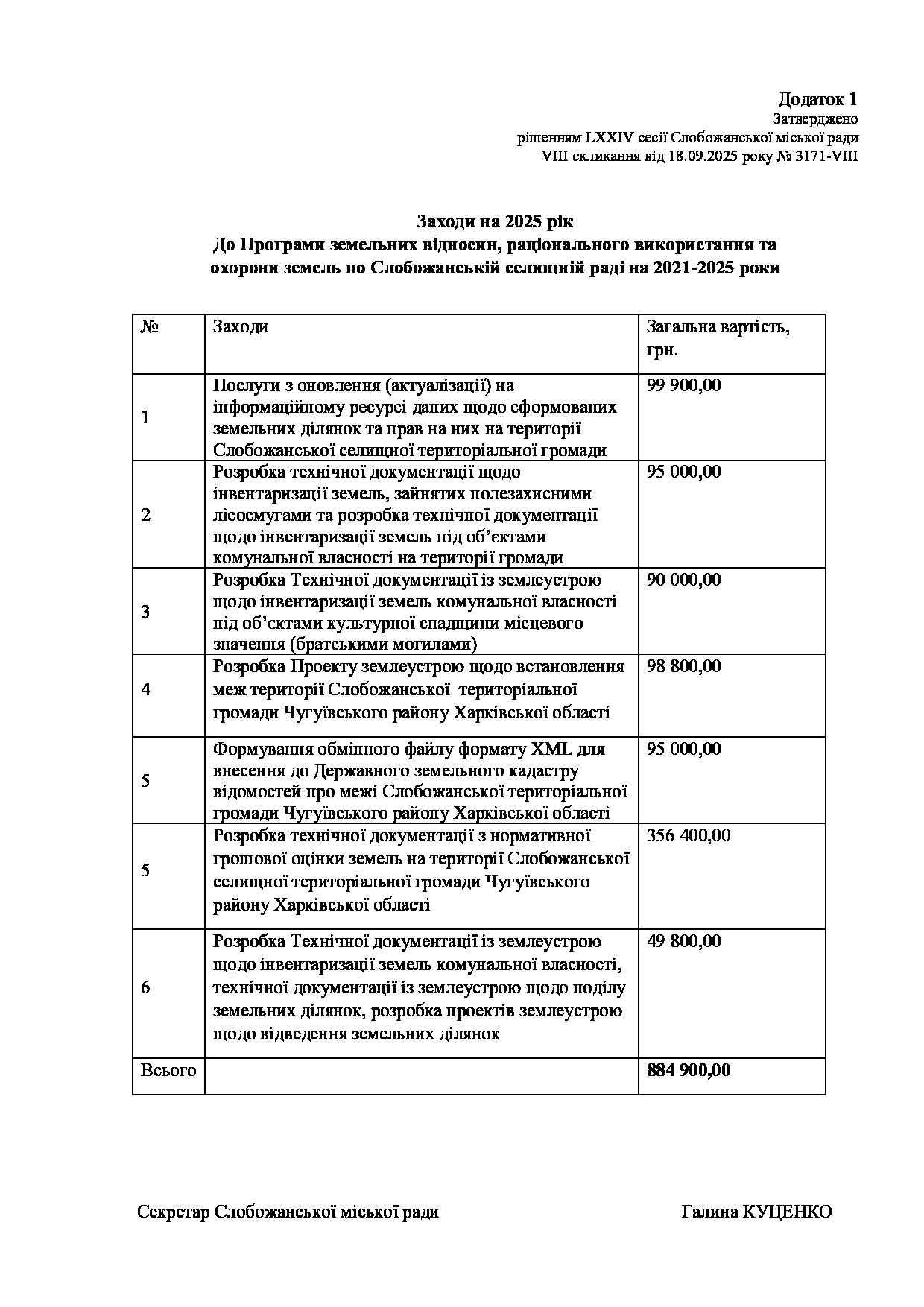 Текст рішення сесії №3171 Про внесення змін до Заходів на 2025 рік до Програми земельних відносин, раціонального використання та охорони земель по Слобожанській селищній раді на 2021-2025 роки.