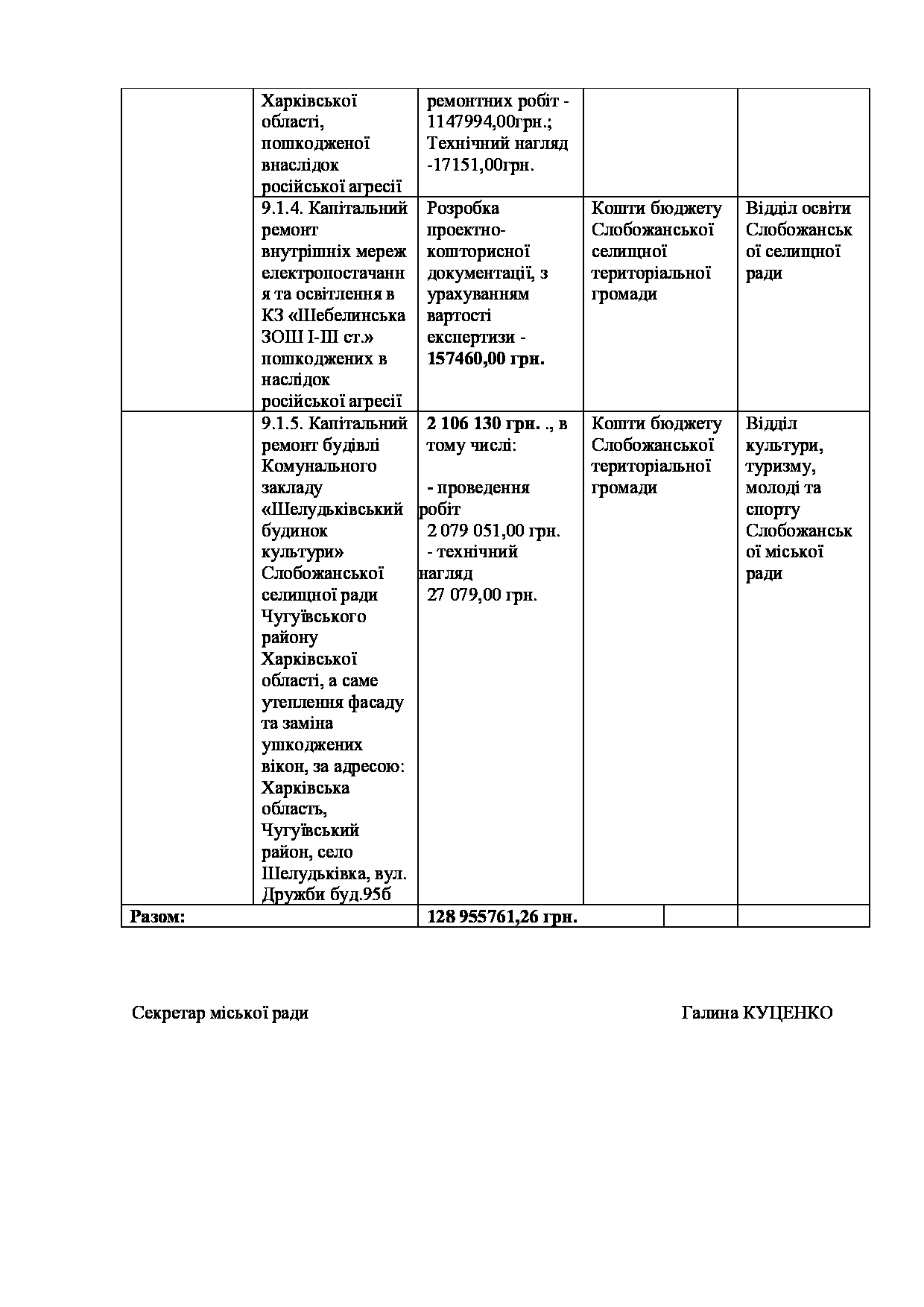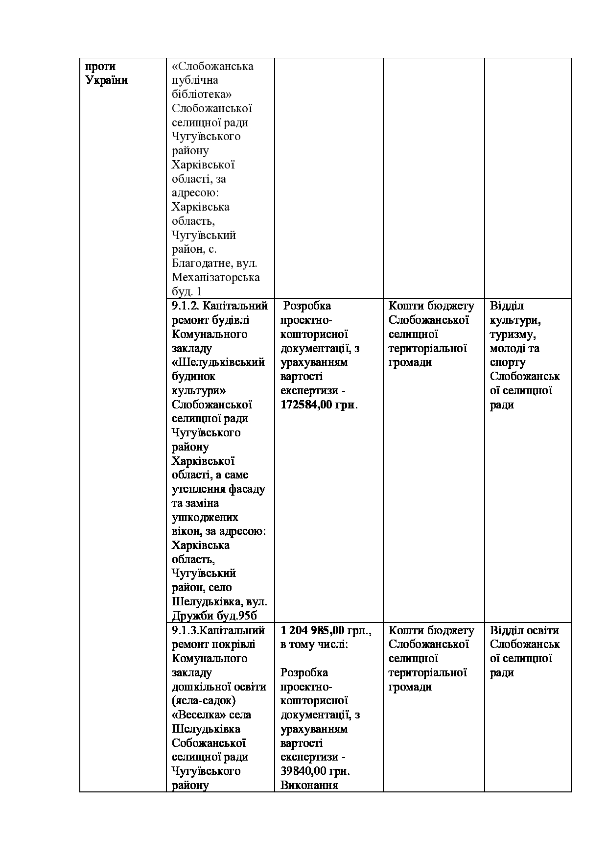 Текст рішення сесії №3168 Про внесення змін та доповнень до Заходів на 2025 рік до Програми розвитку та реформування житлово-комунального господарства Слобожанської селищної ради на 2021-2025 роки.