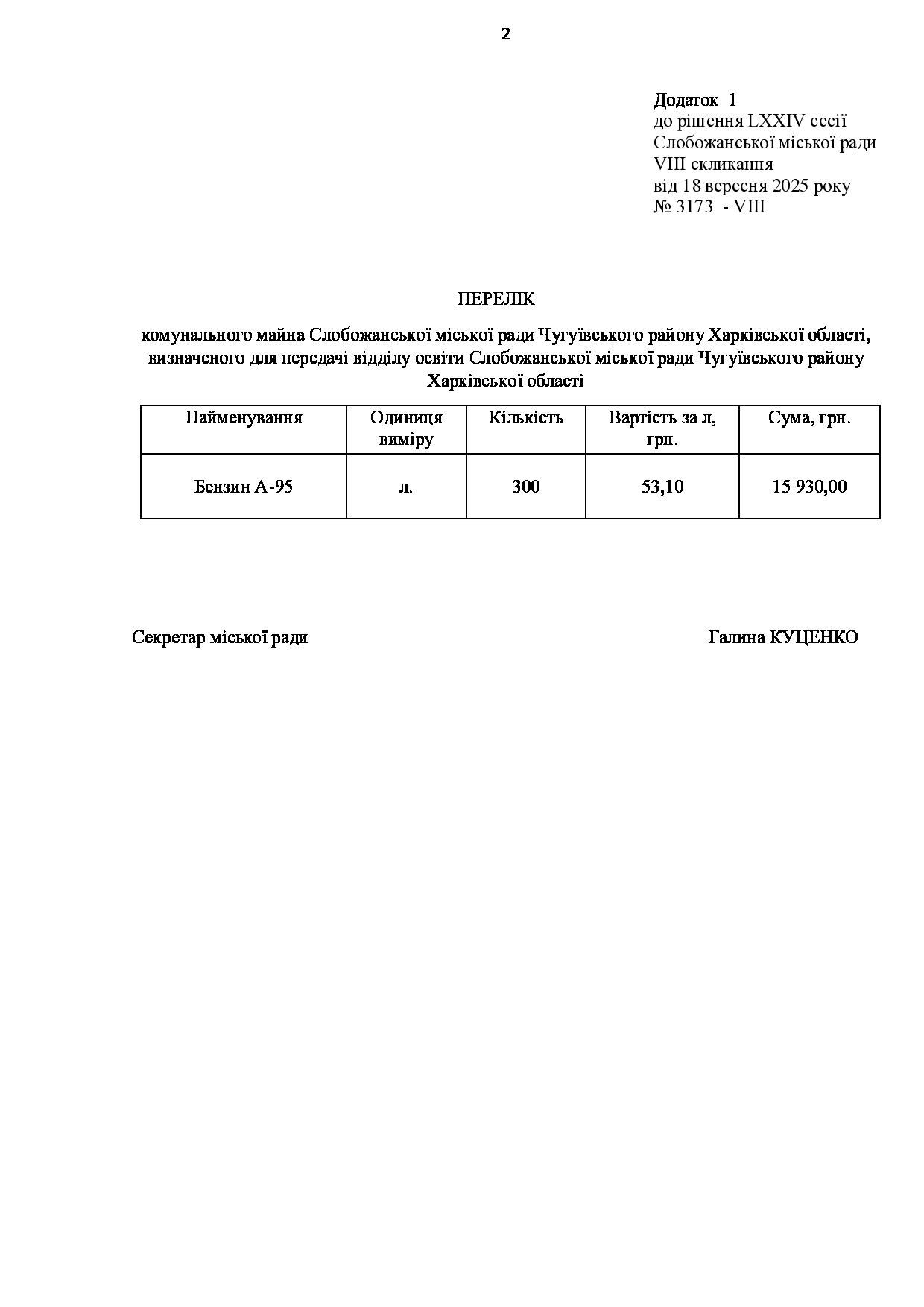 Текст рішення сесії №3175 Про надання згоди Відділу освіти Слобожанської міської ради на списання майна комунальної власності Слобожанської територіальної громади.