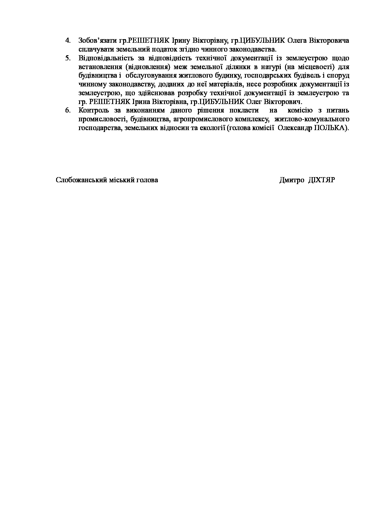 Текст рішення сесії №3191 Про передачу земельної ділянки у приватну власність гр. РЕШЕТНЯК Ірині Вікторівні та гр. ЦИБУЛЬНИК Олегу Вікторовичу.
