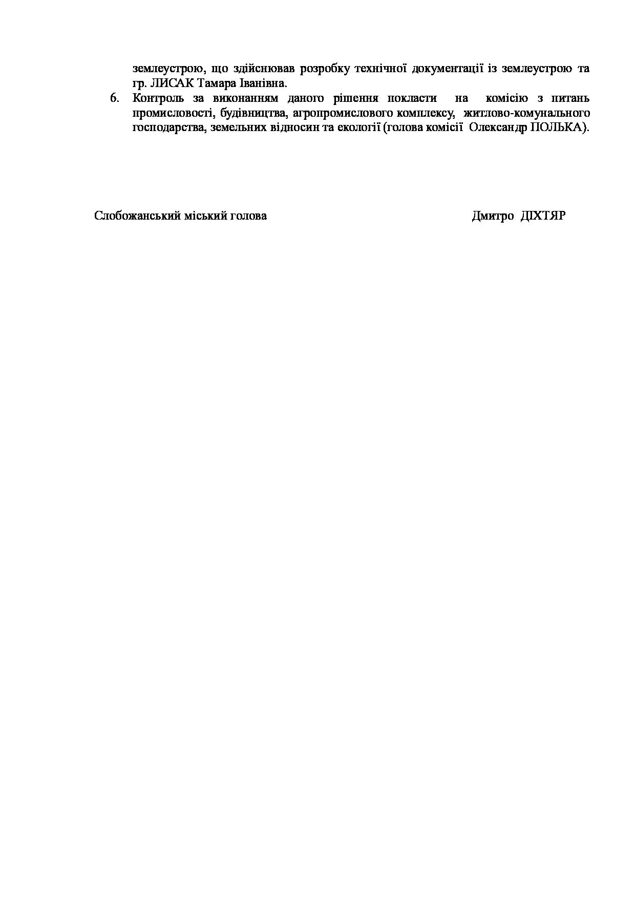 Текст рішення сесії №3194 Про передачу земельної ділянки у приватну власність гр. ЛИСАК Тамарі Іванівні.