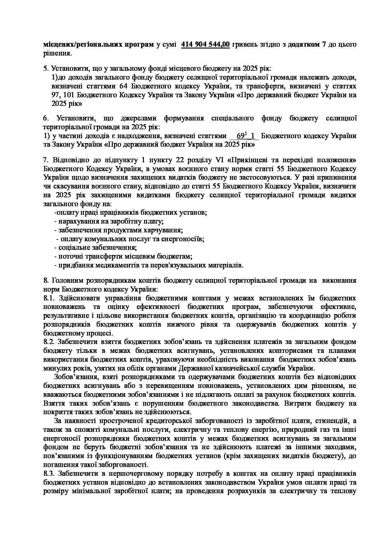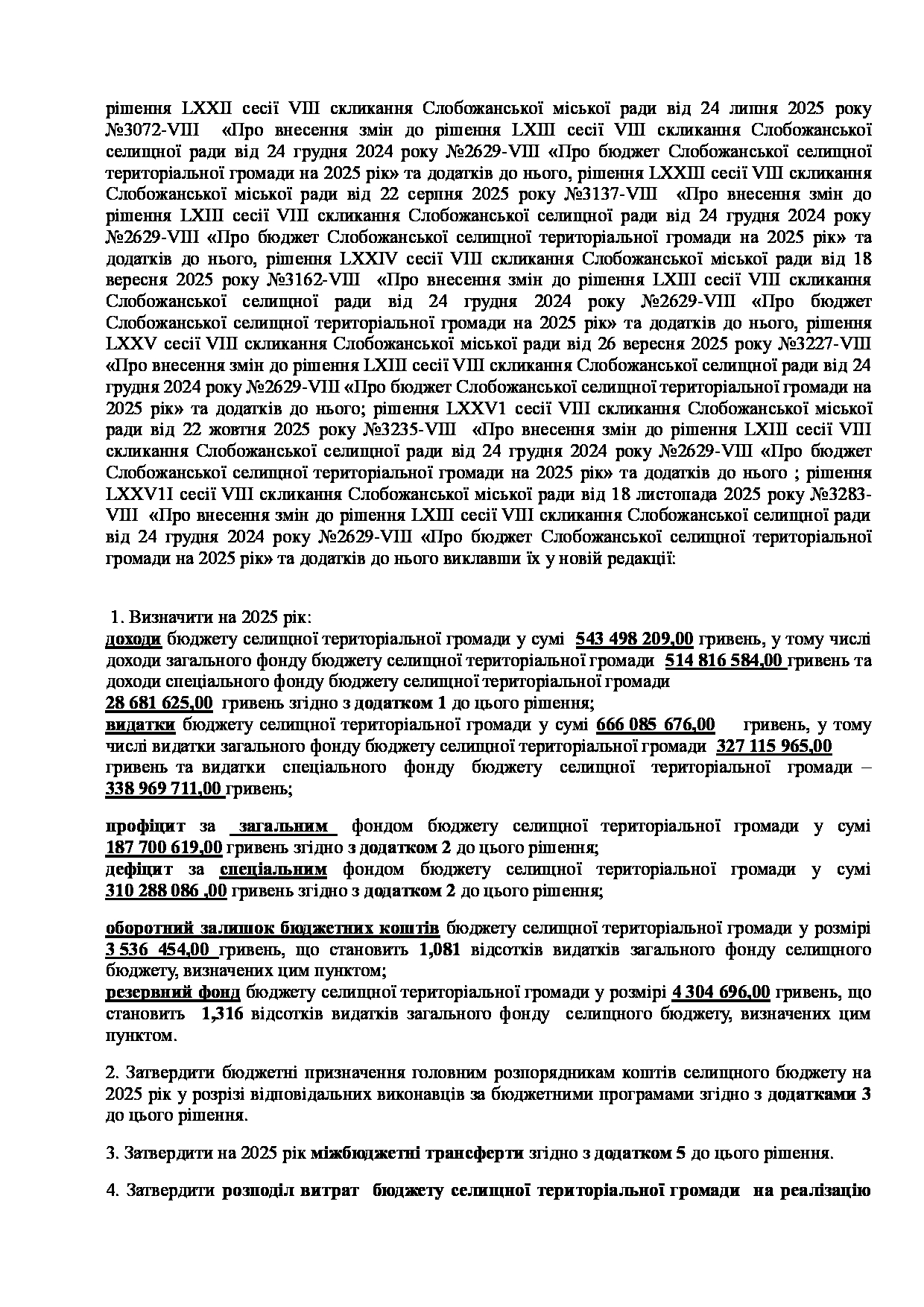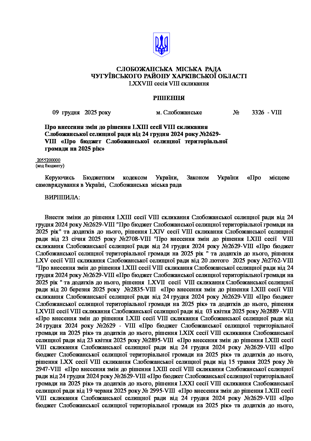 Текст рішення сесії №3326 Про внесення змін до рішення LXIII сесії VIII скликання Слобожанської селищної ради від 24 грудня 2024 року №2629-VIII «Про бюджет Слобожанської селищної територіальної громади на 2025 рік»