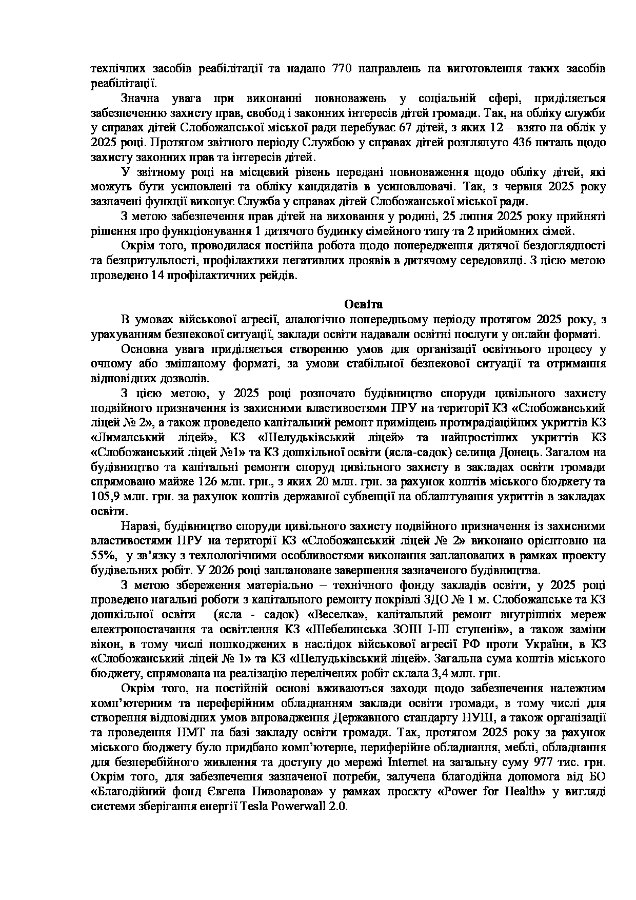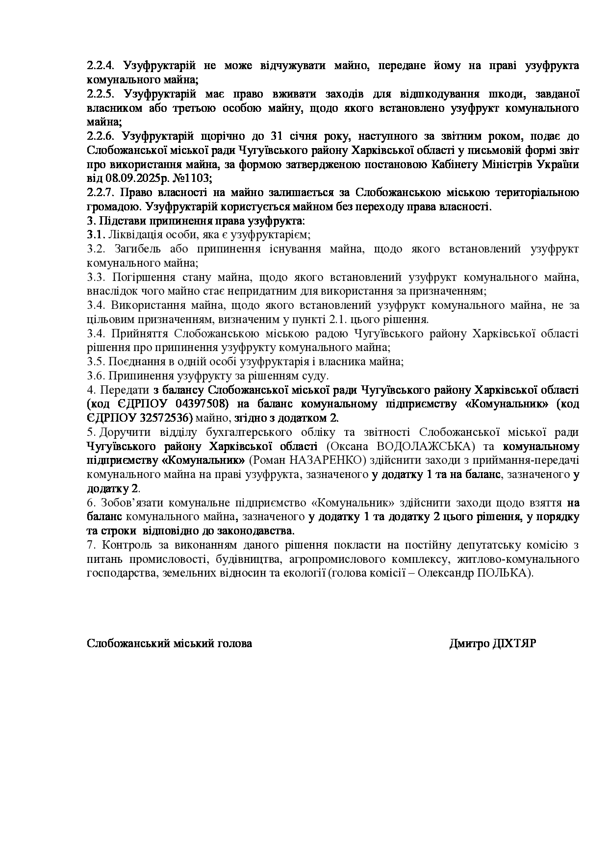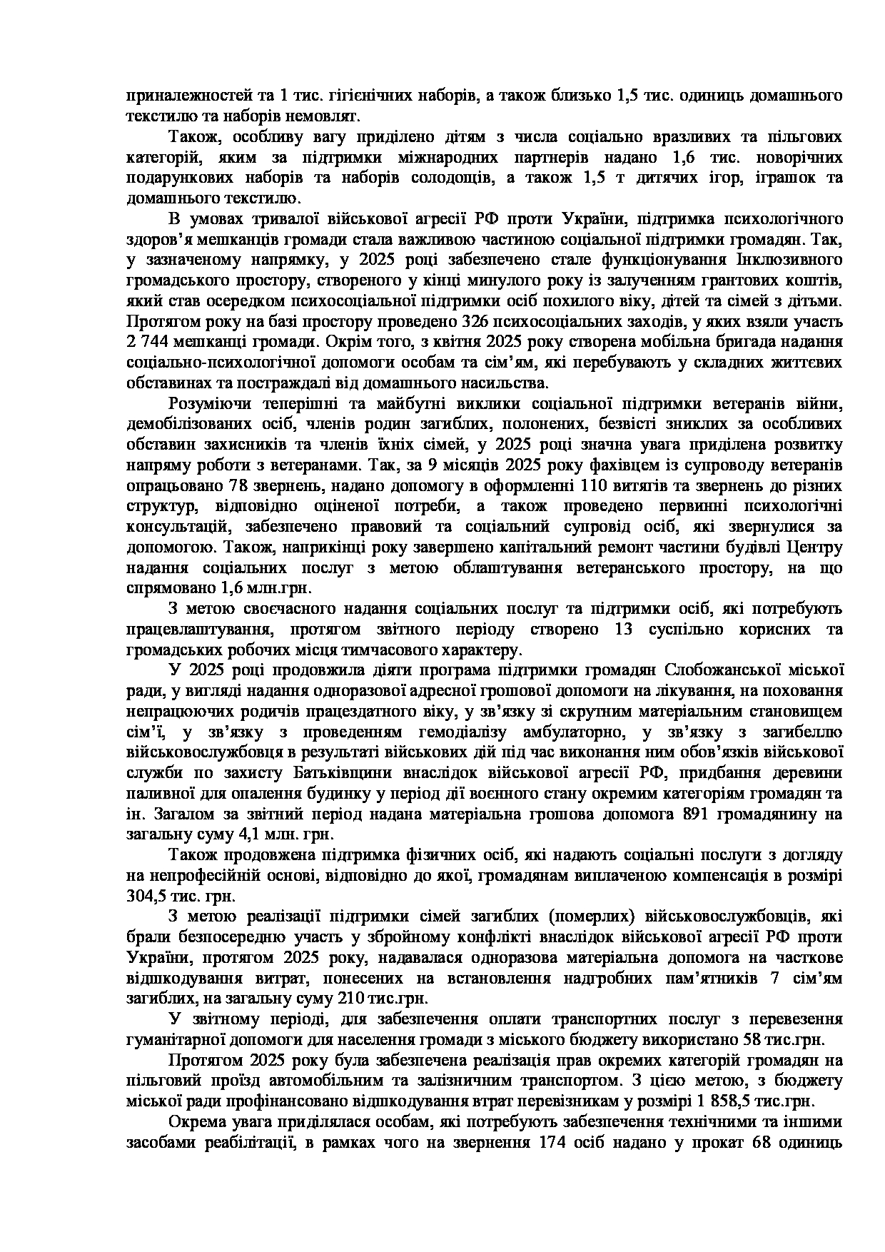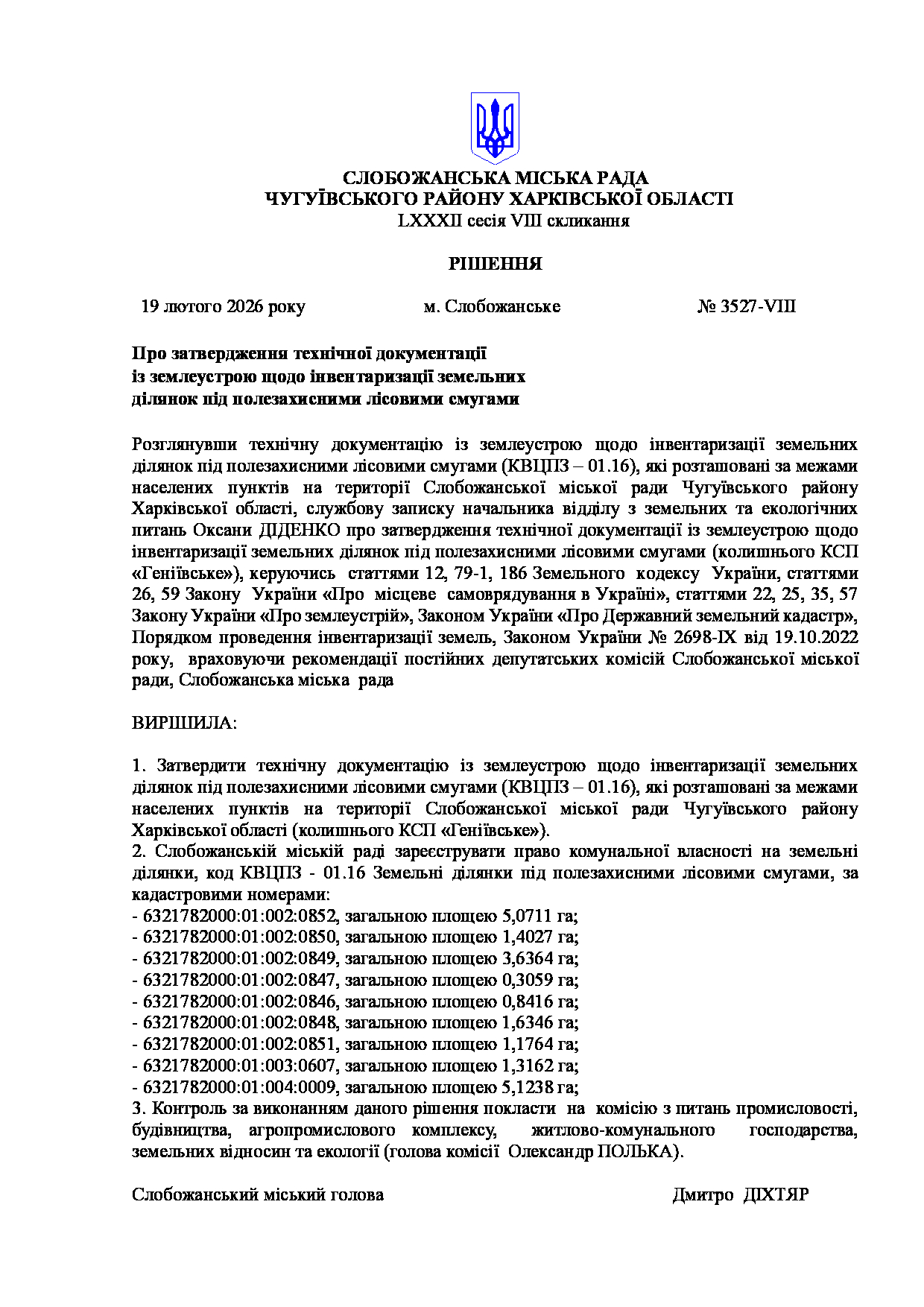 Текст рішення сесії №3539 Про Звіт Слобожанського міського голови Дмитра ДІХТЯРА за 2025 рік.