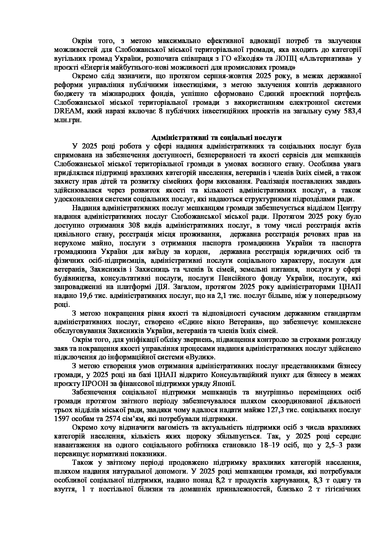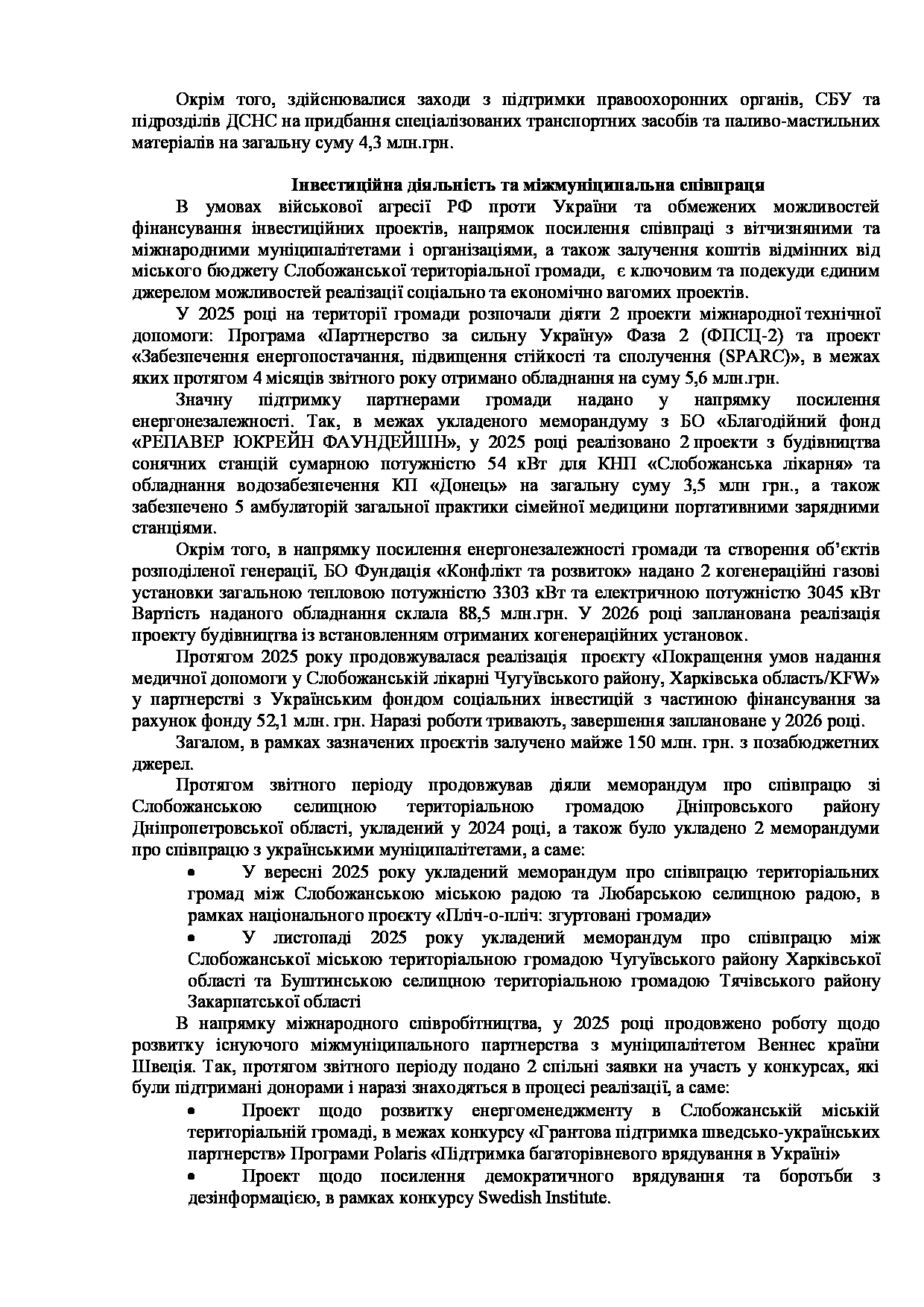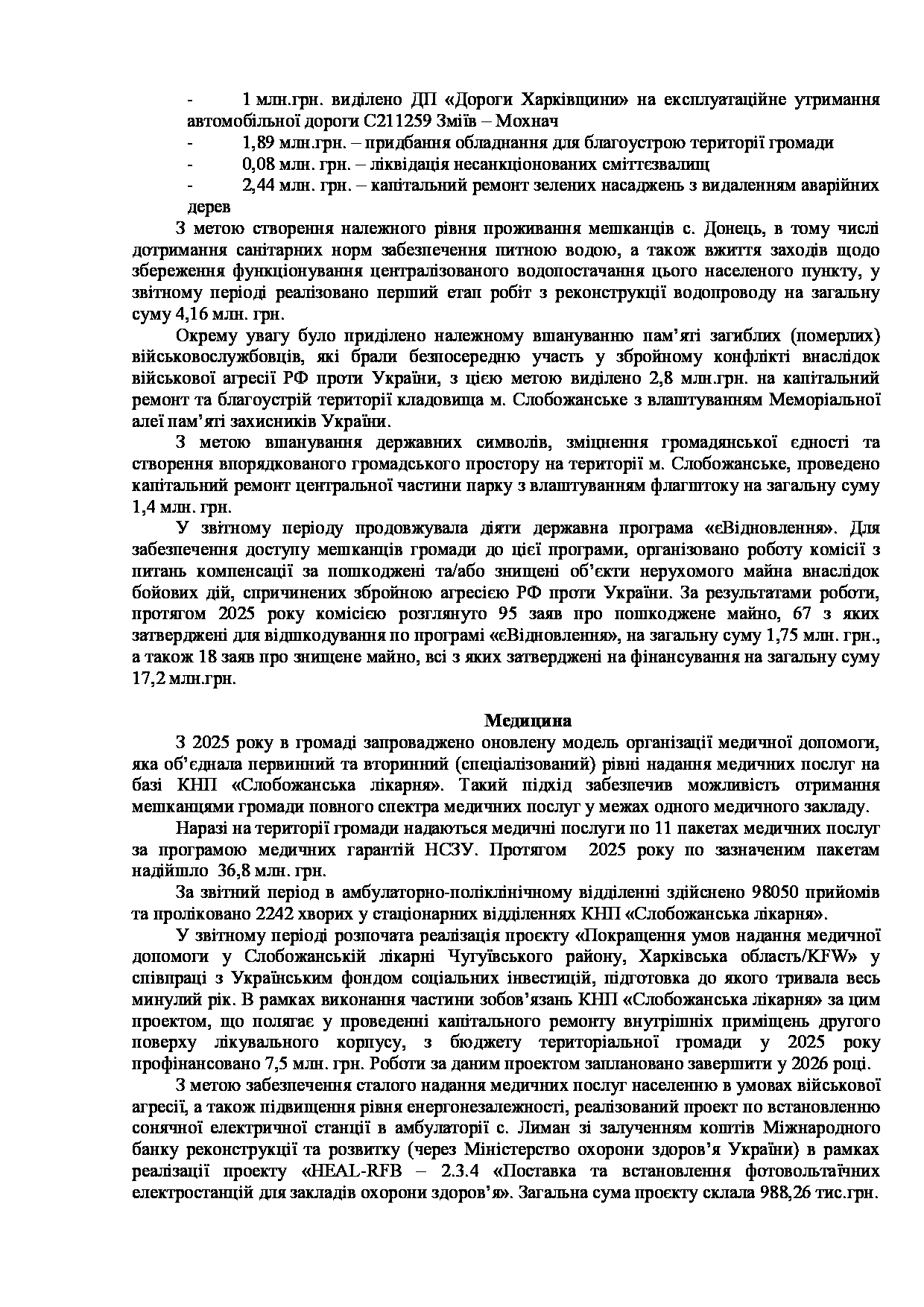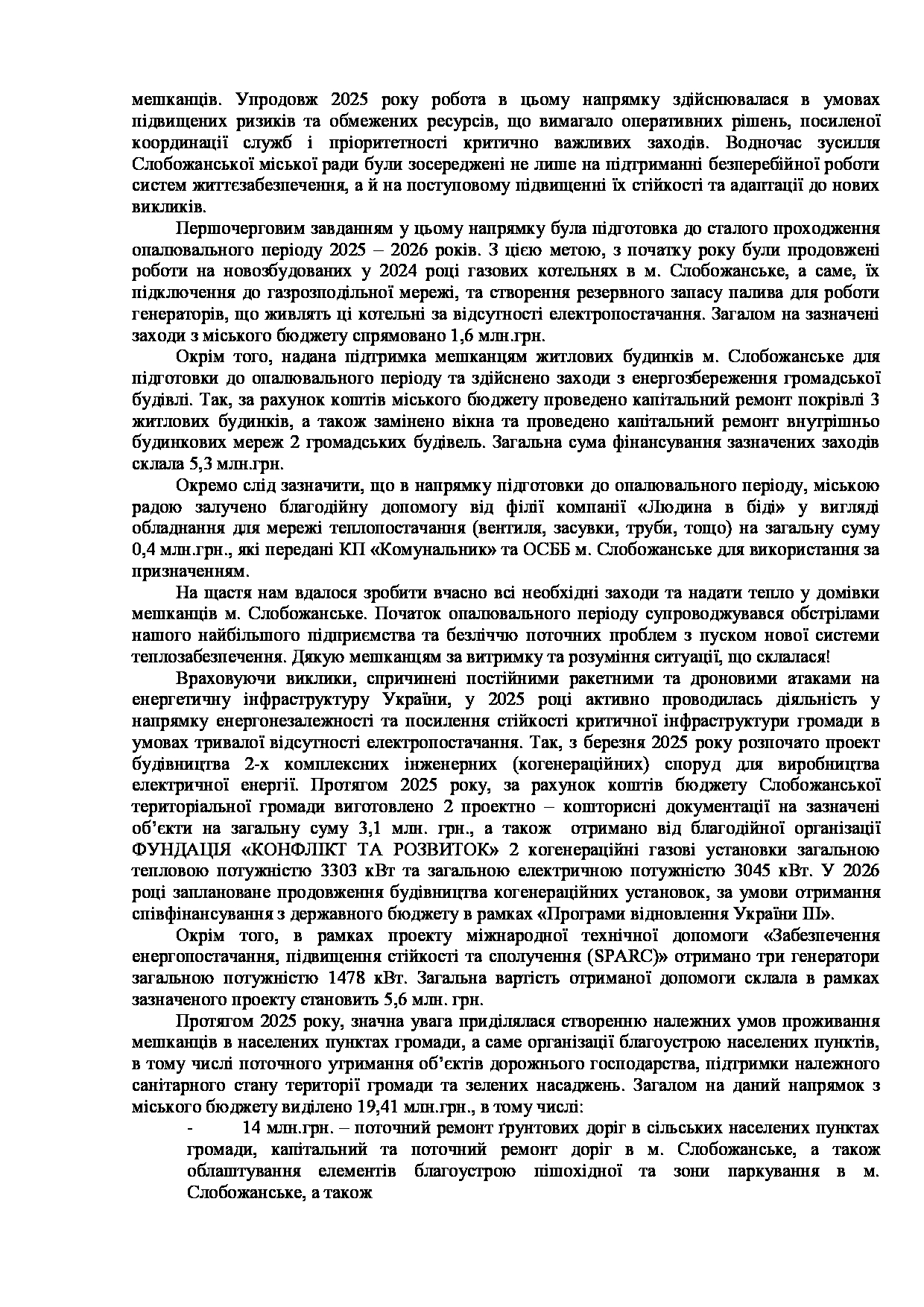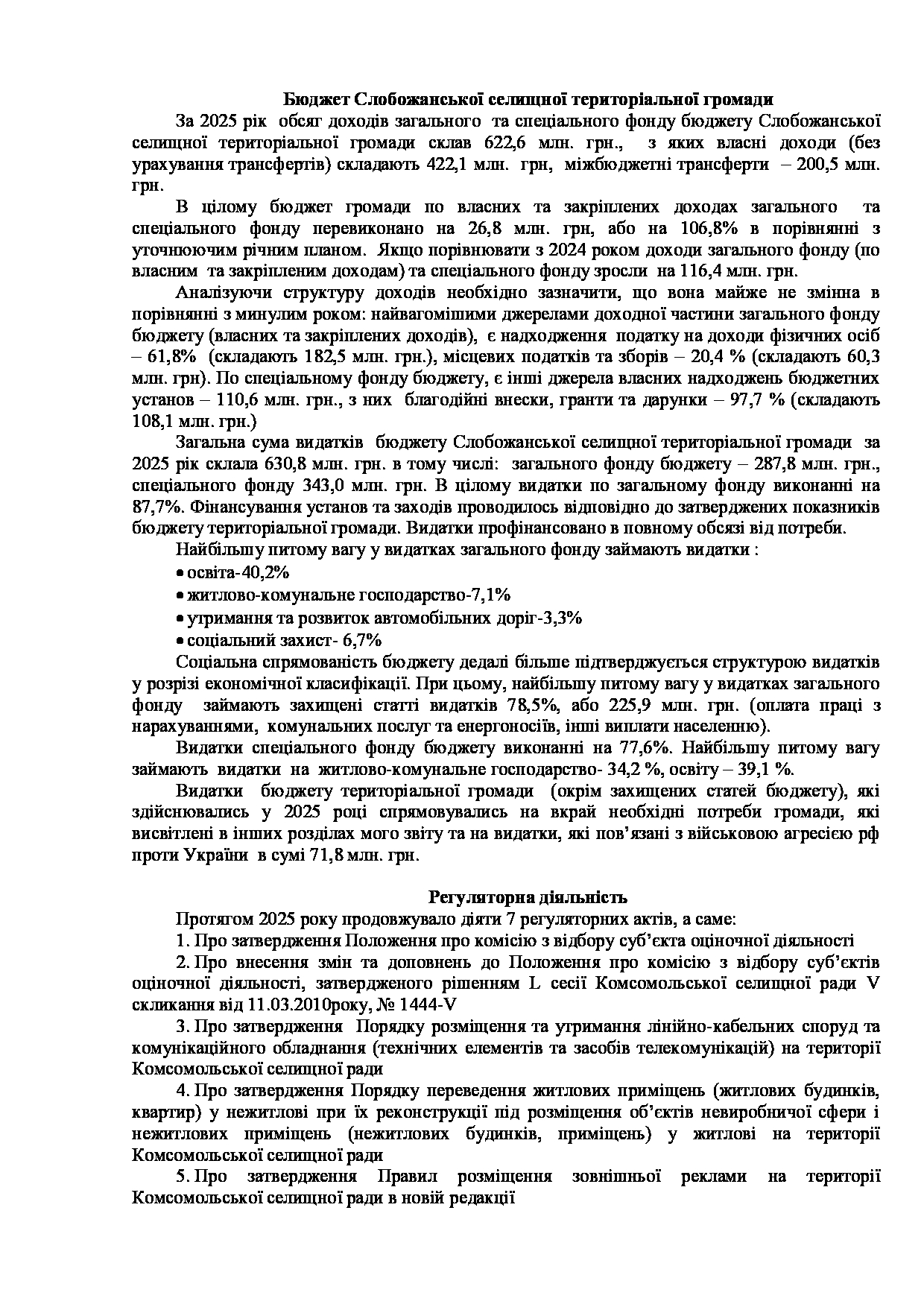 Текст рішення сесії №3539 Про Звіт Слобожанського міського голови Дмитра ДІХТЯРА за 2025 рік.