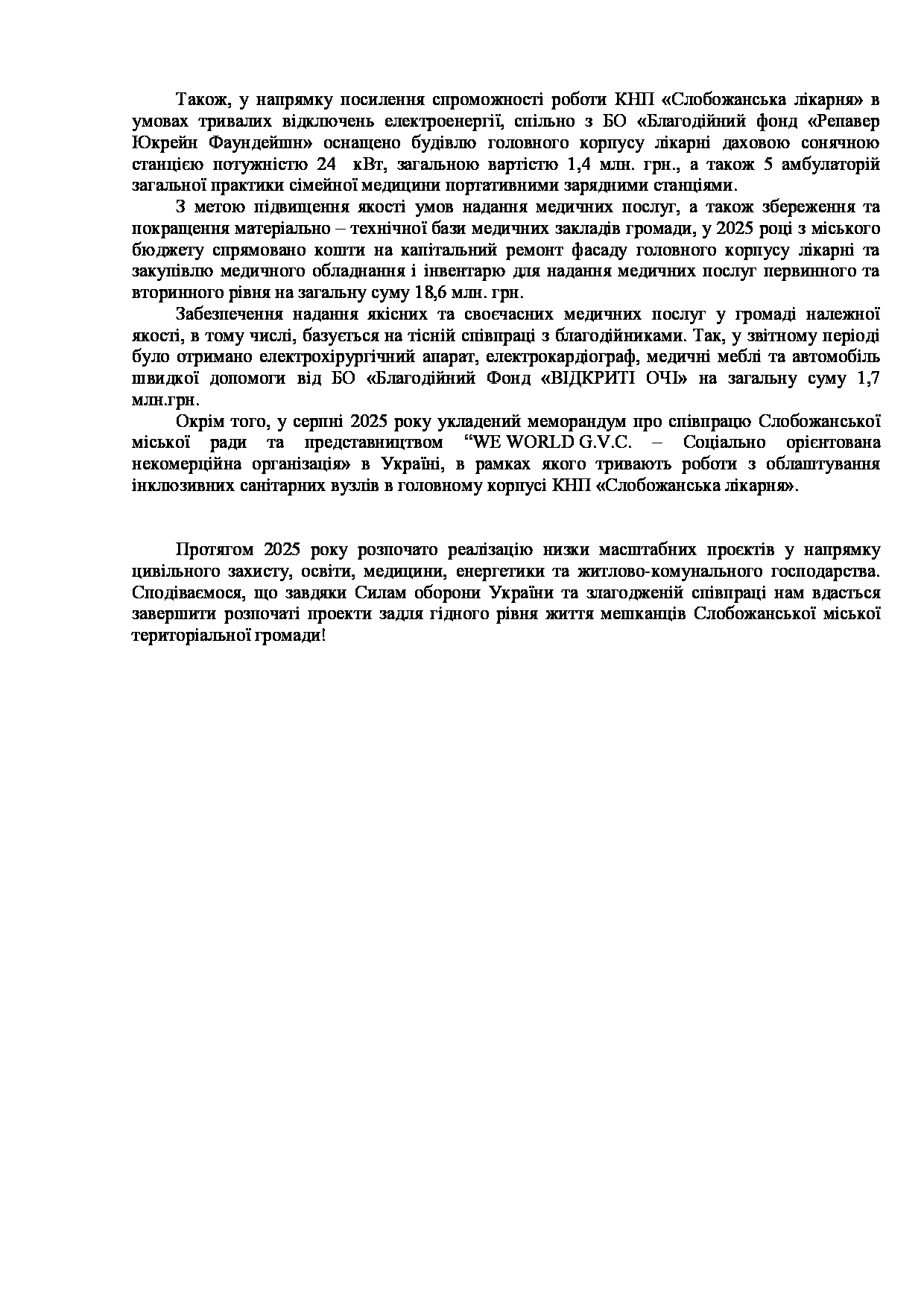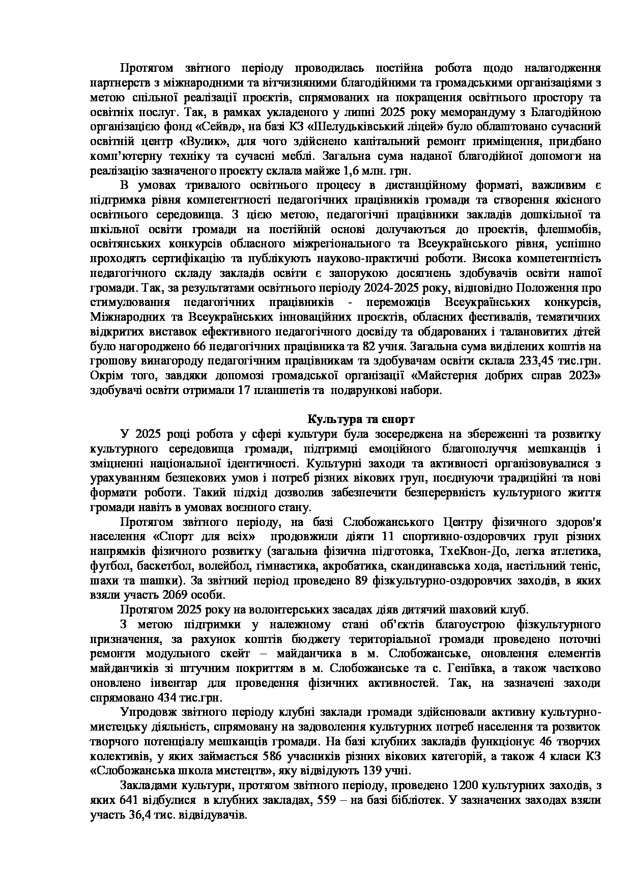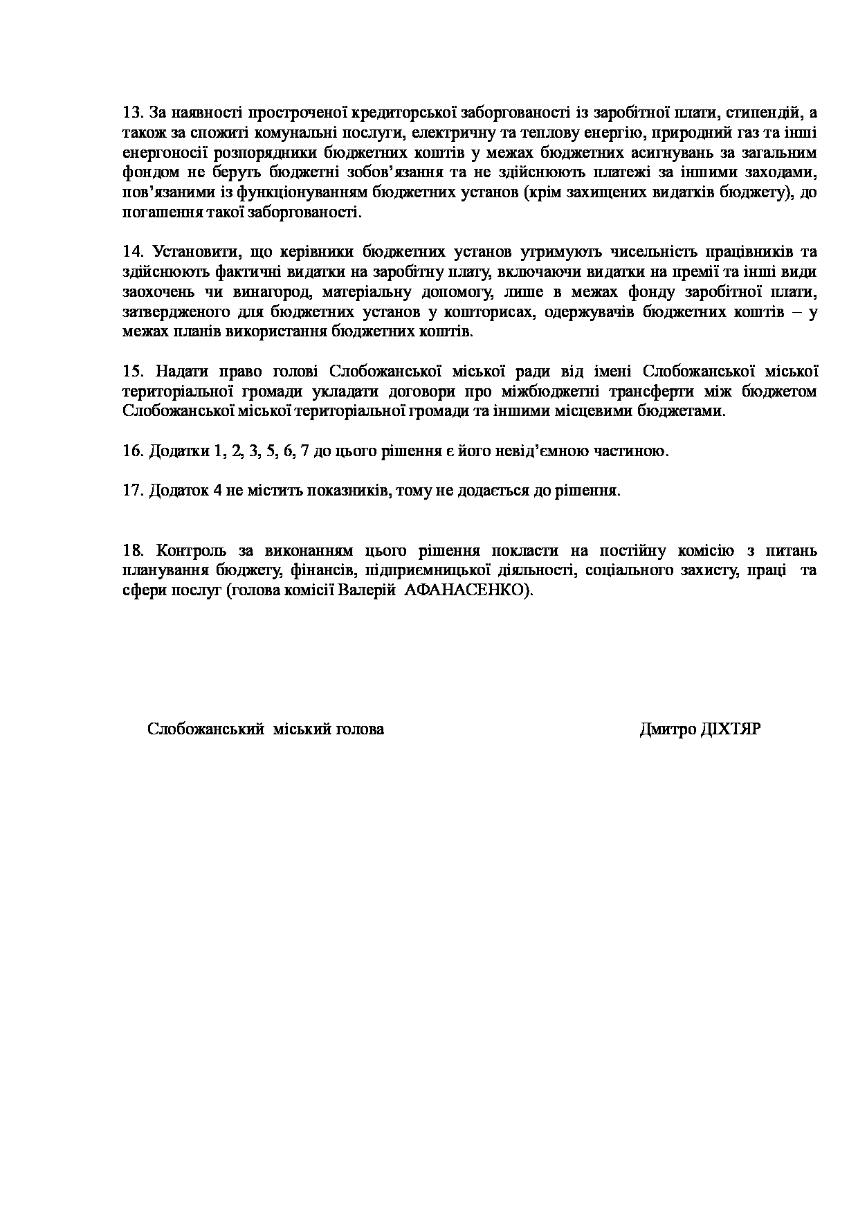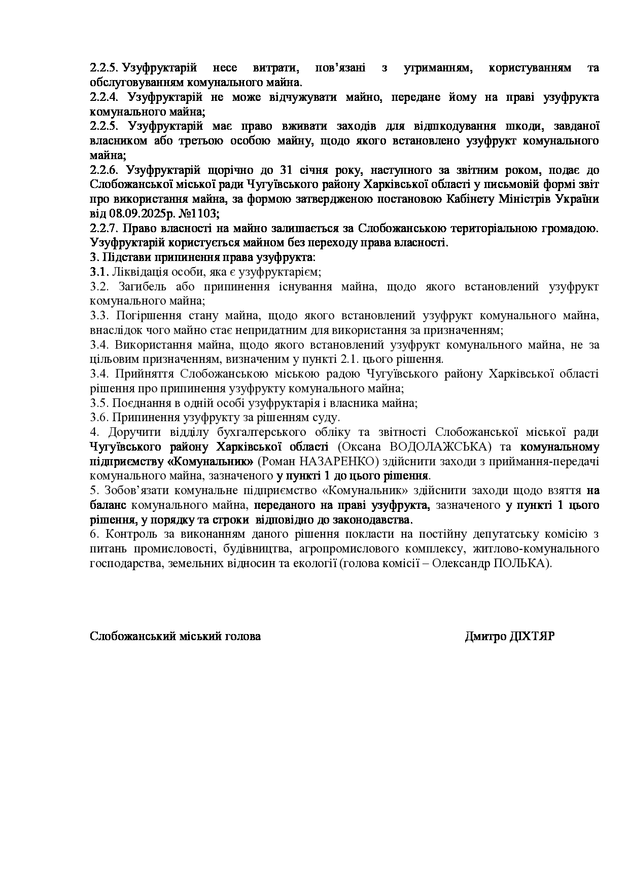 Текст рішення сесії №3539 Про Звіт Слобожанського міського голови Дмитра ДІХТЯРА за 2025 рік.