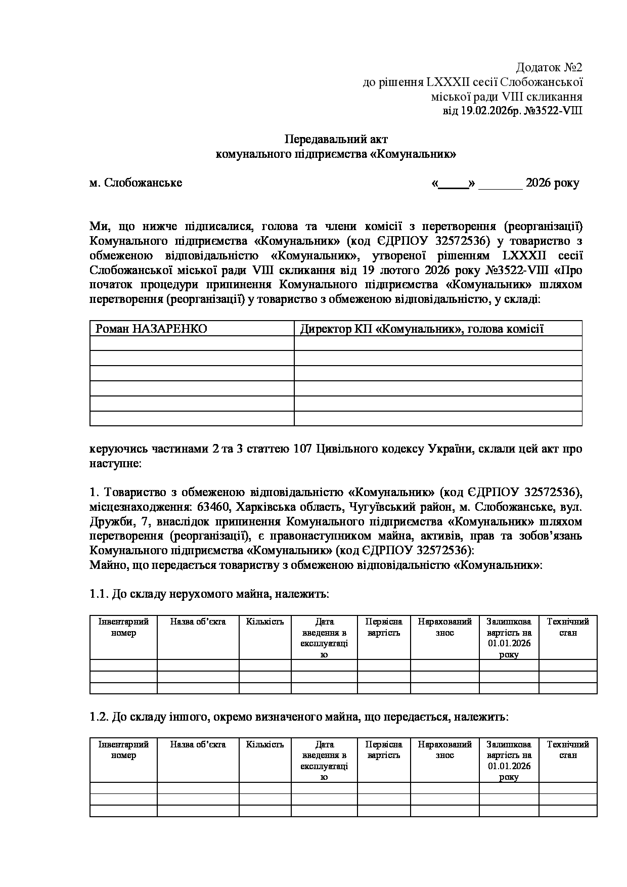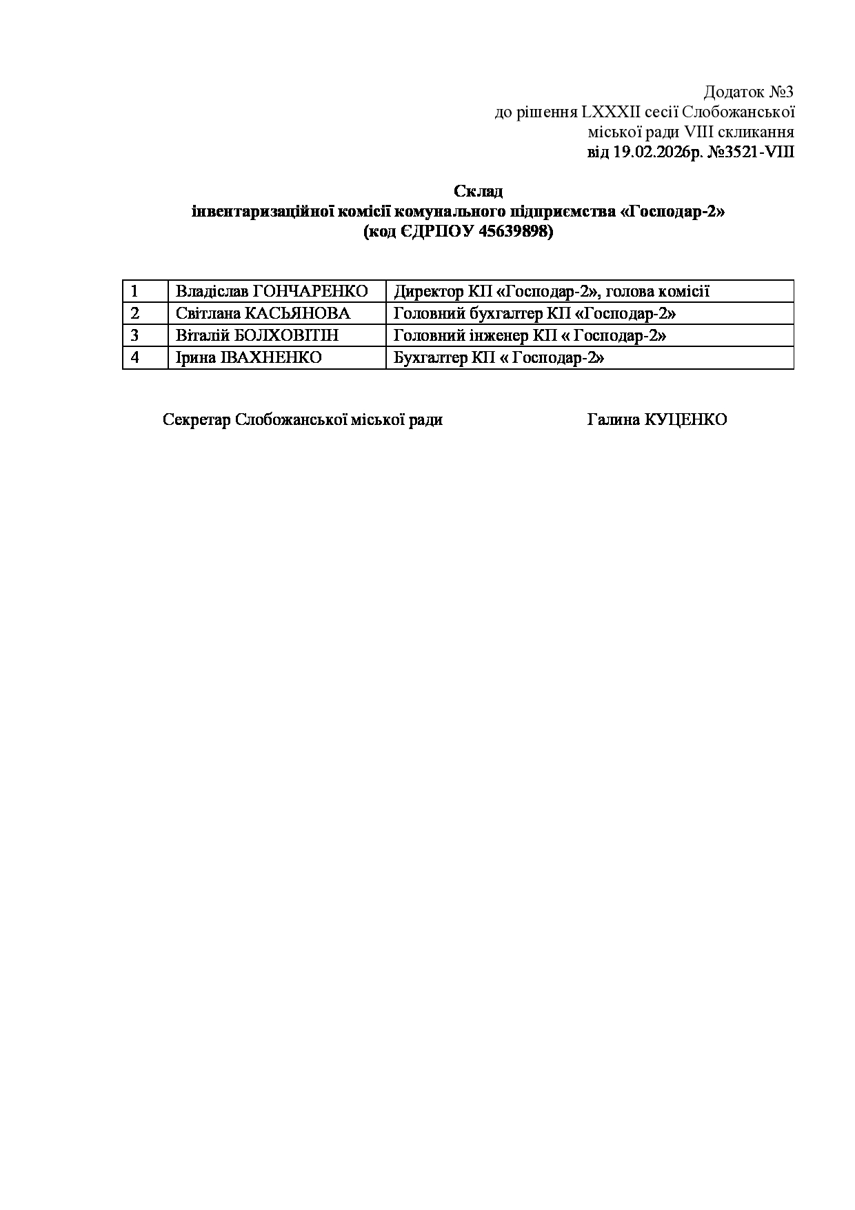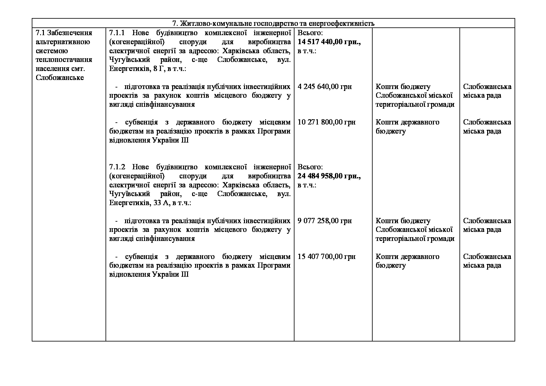 Текст рішення сесії №3504 Про внесення змін та доповнень до Заходів на 2026 рік до Програми розвитку та реформування житлово-комунального господарства Слобожанської міської територіальної громади Чугуївського району Харківської області на 2026-2030 роки.