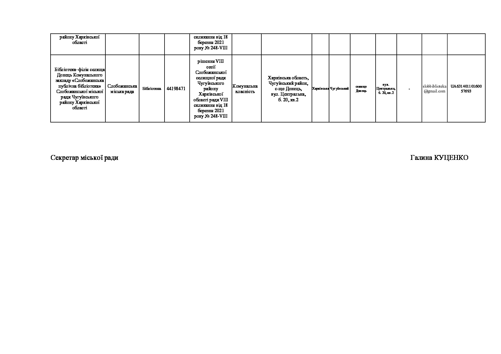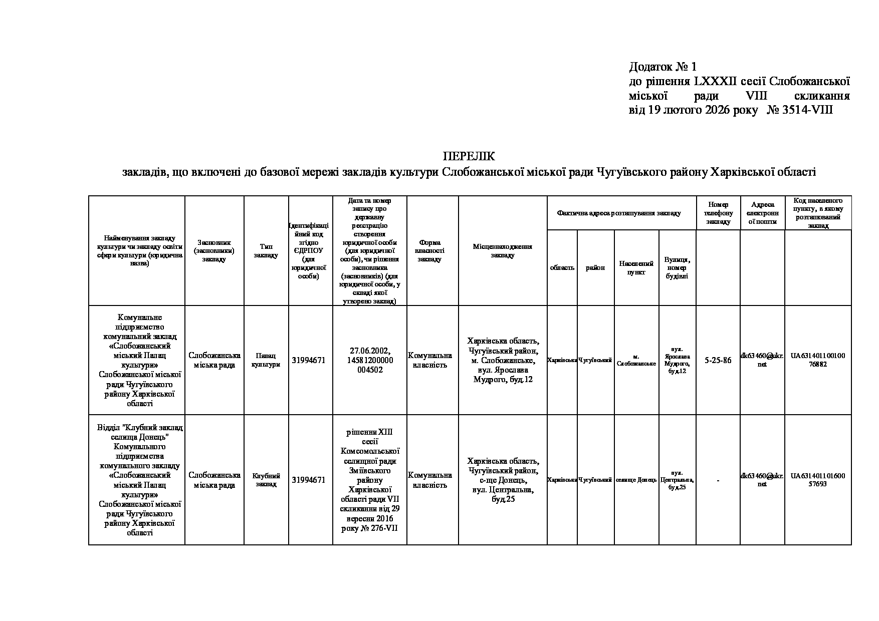 Текст рішення сесії №3514 Про затвердження Переліку закладів, що включені до базової мережі закладів культури Слобожанської міської ради.