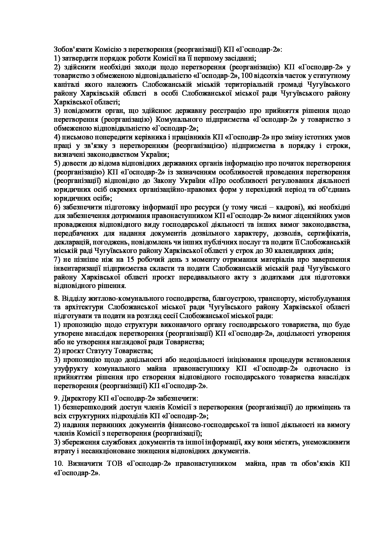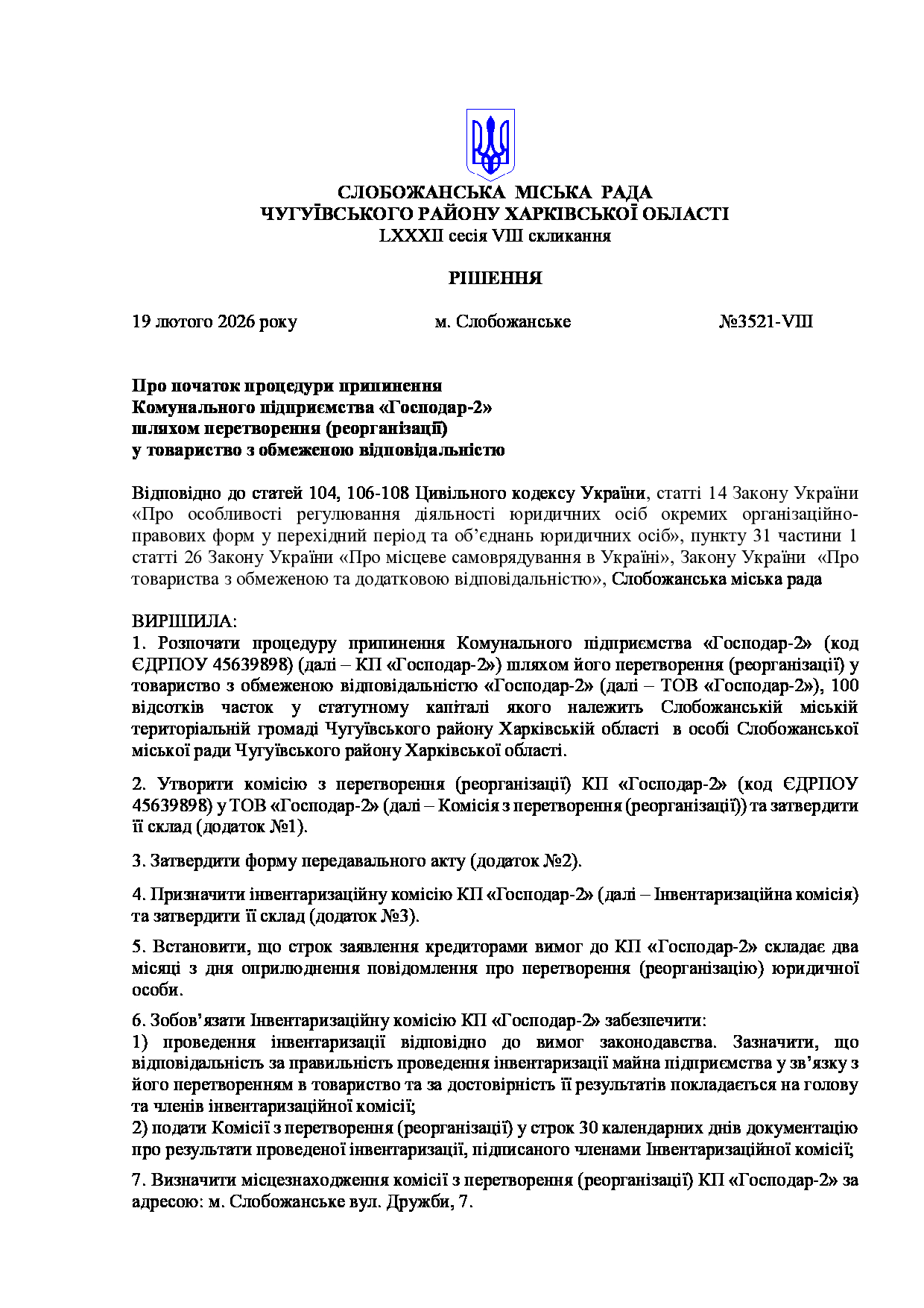 Текст рішення сесії №3521 Про початок процедури припинення Комунального підприємства «Господар-2» шляхом перетворення (реорганізації) у товариство з обмеженою відповідальністю.
